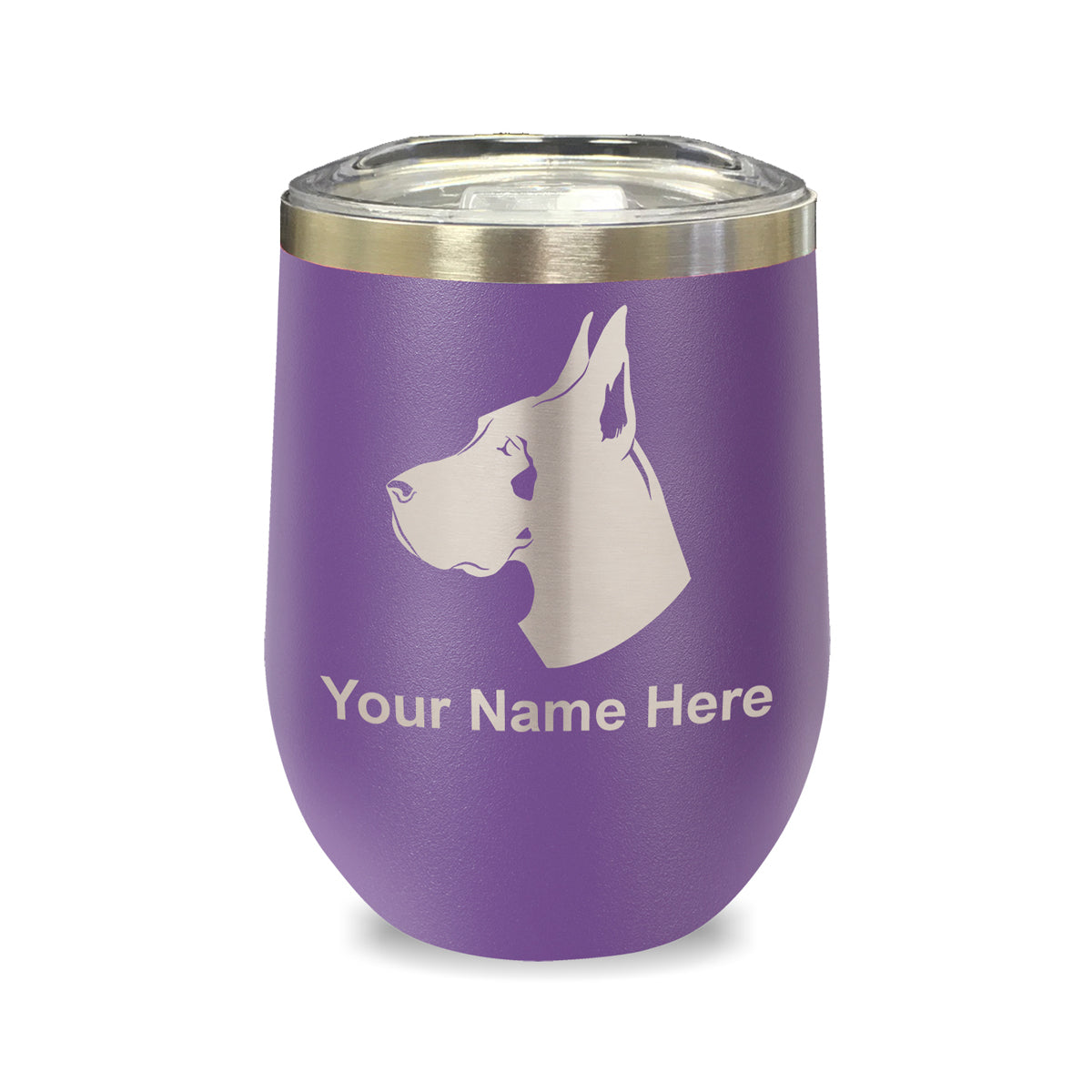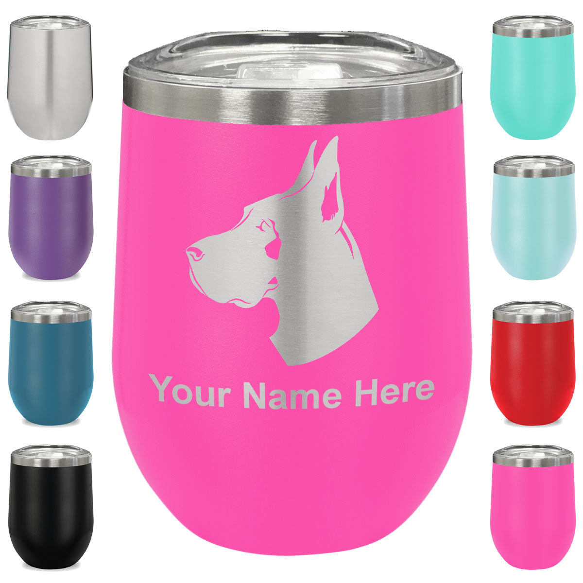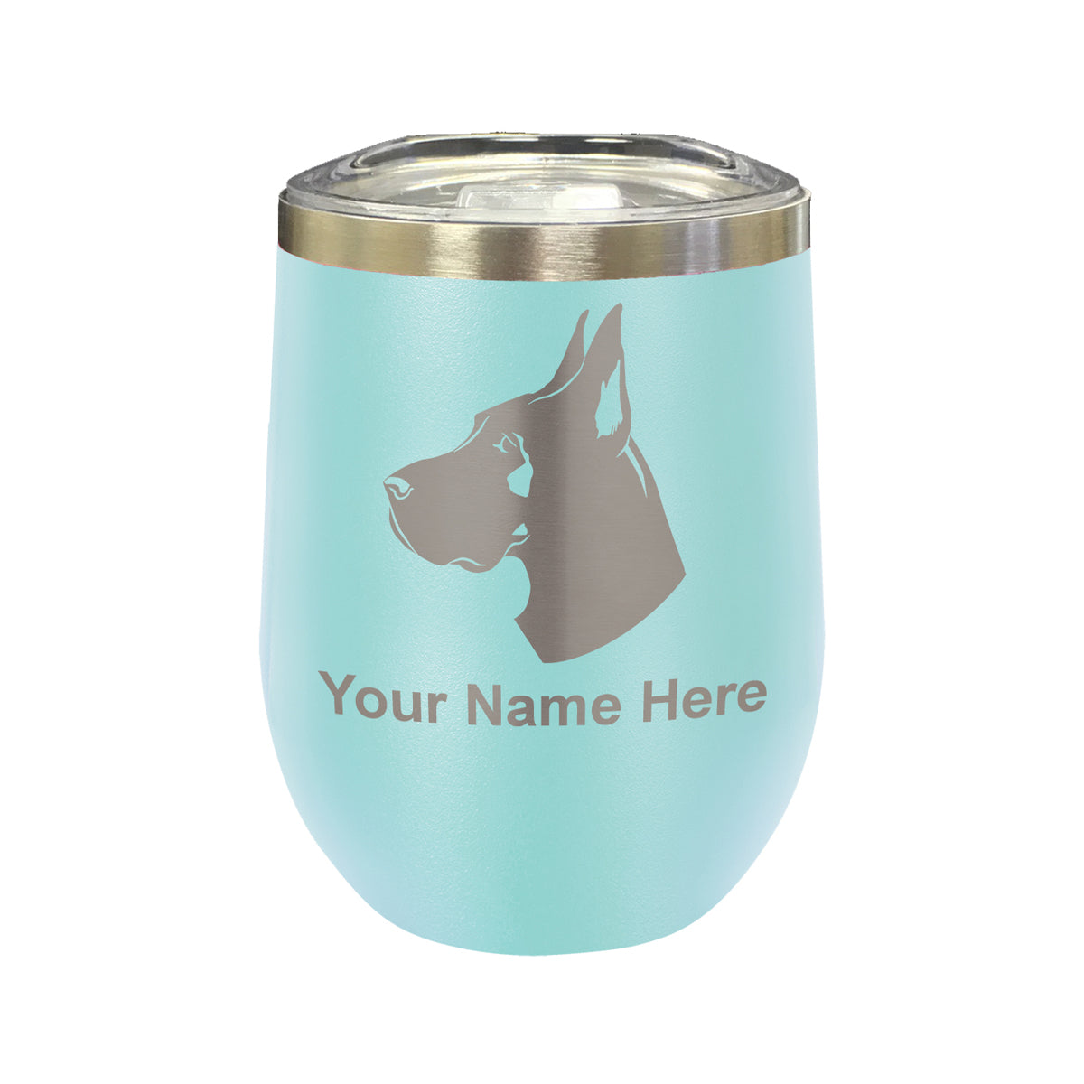LaserGram Double Wall Stainless Steel Wine Glass, Great Dane Dog, Personalized Engraving Included