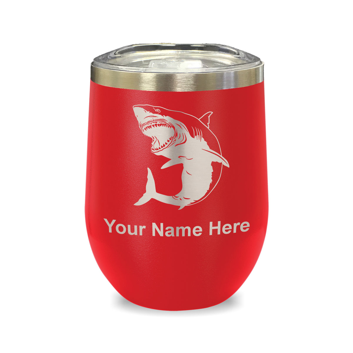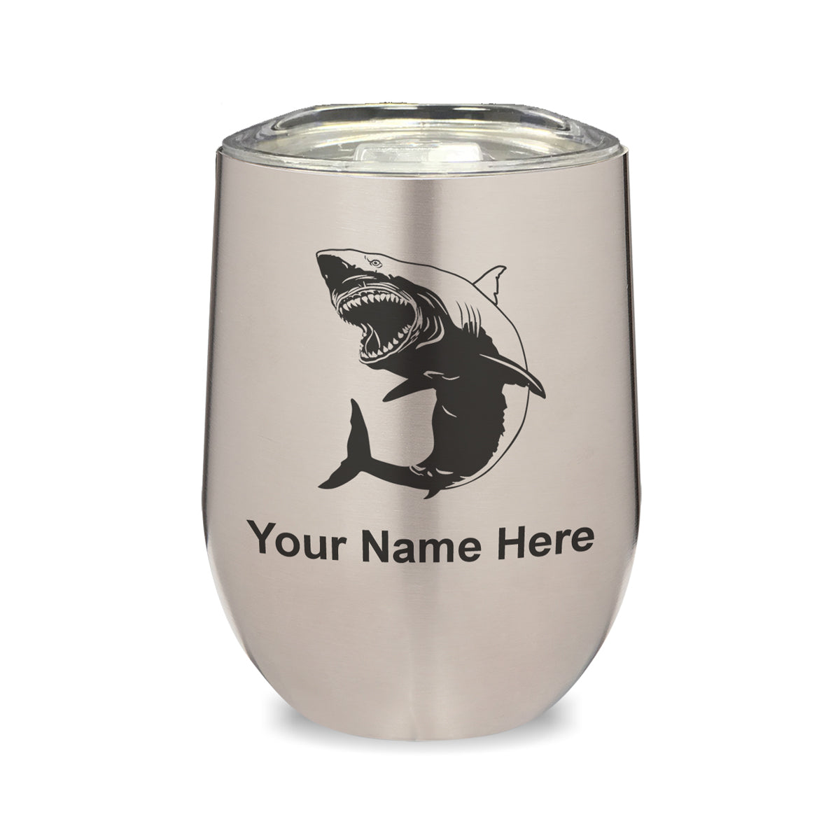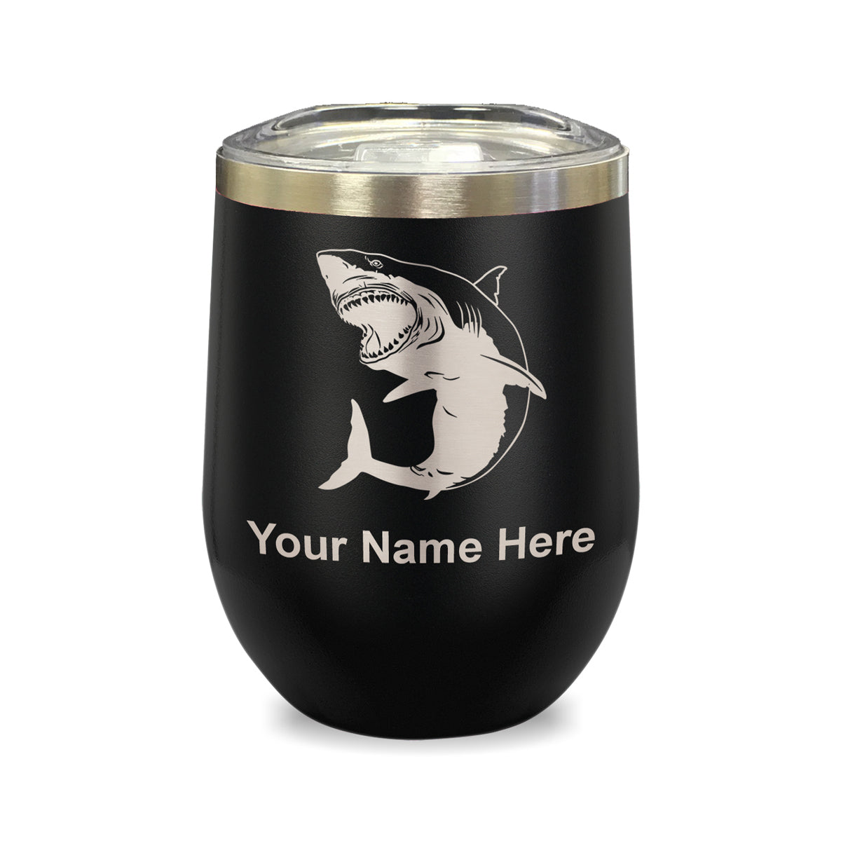 LaserGram Double Wall Stainless Steel Wine Glass, Great White Shark, Personalized Engraving Included