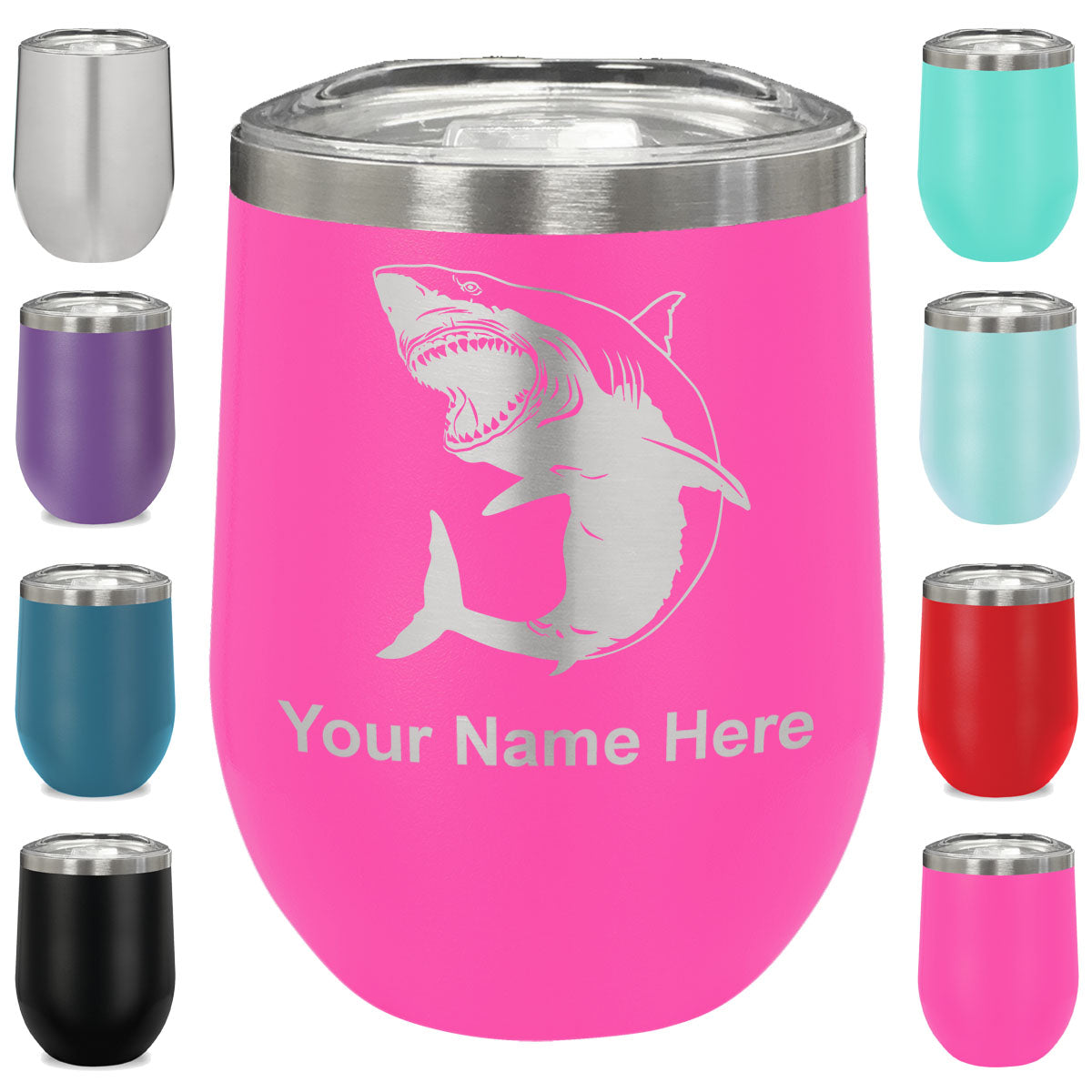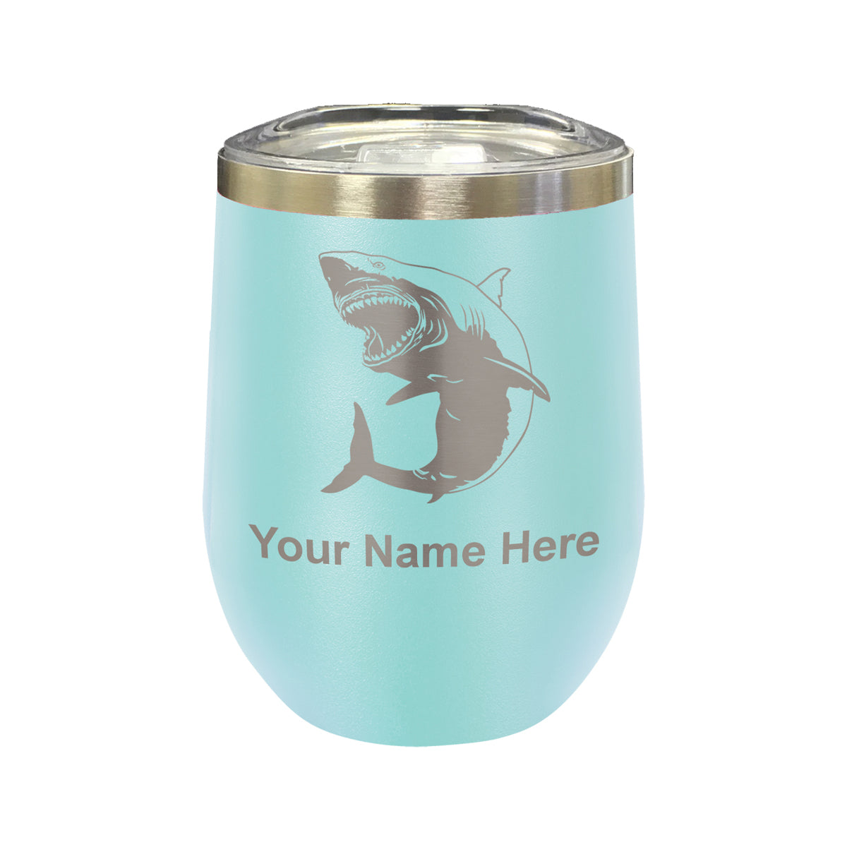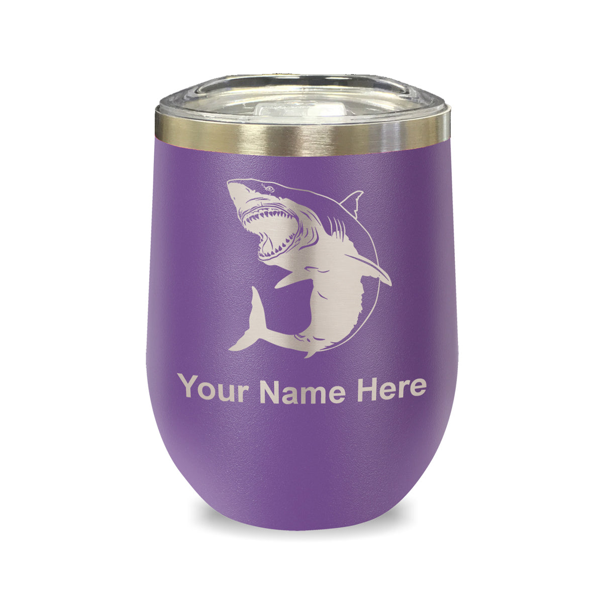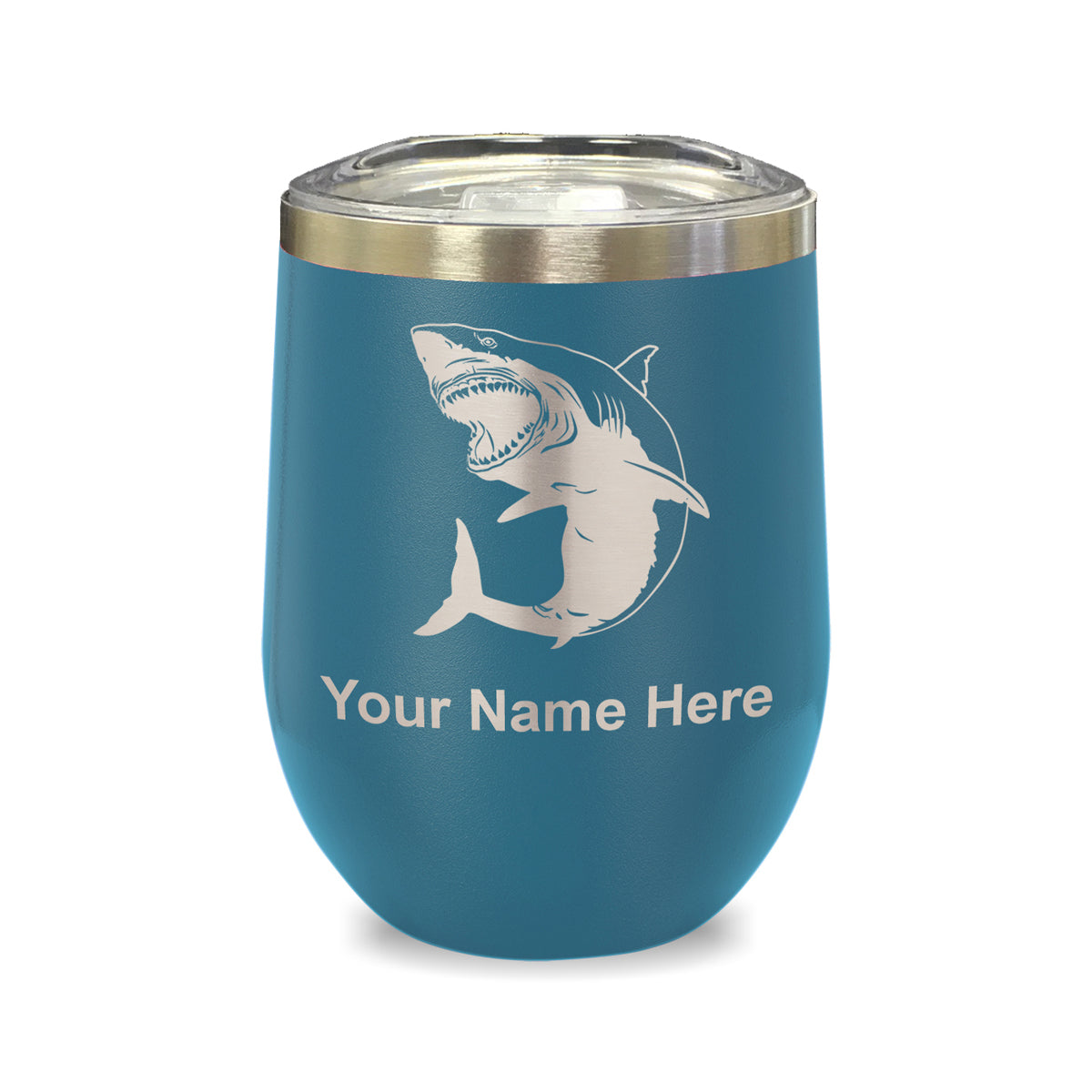 LaserGram Double Wall Stainless Steel Wine Glass, Great White Shark, Personalized Engraving Included