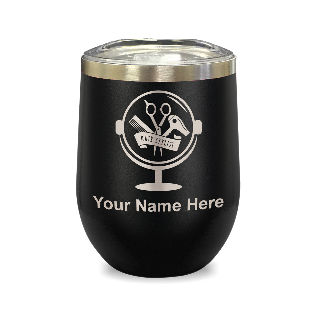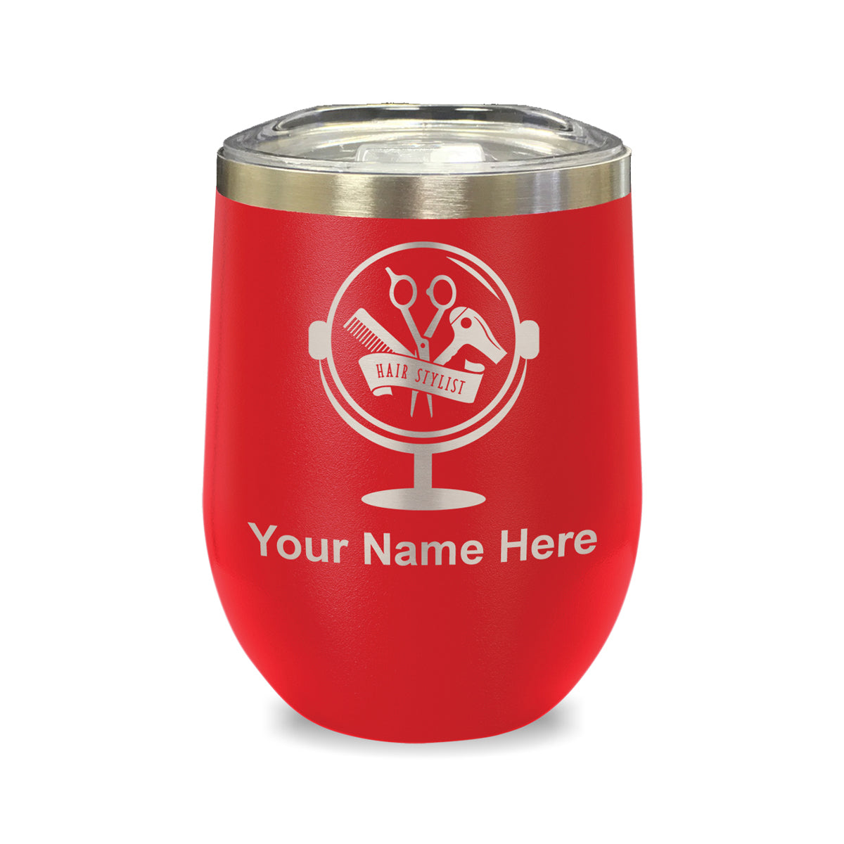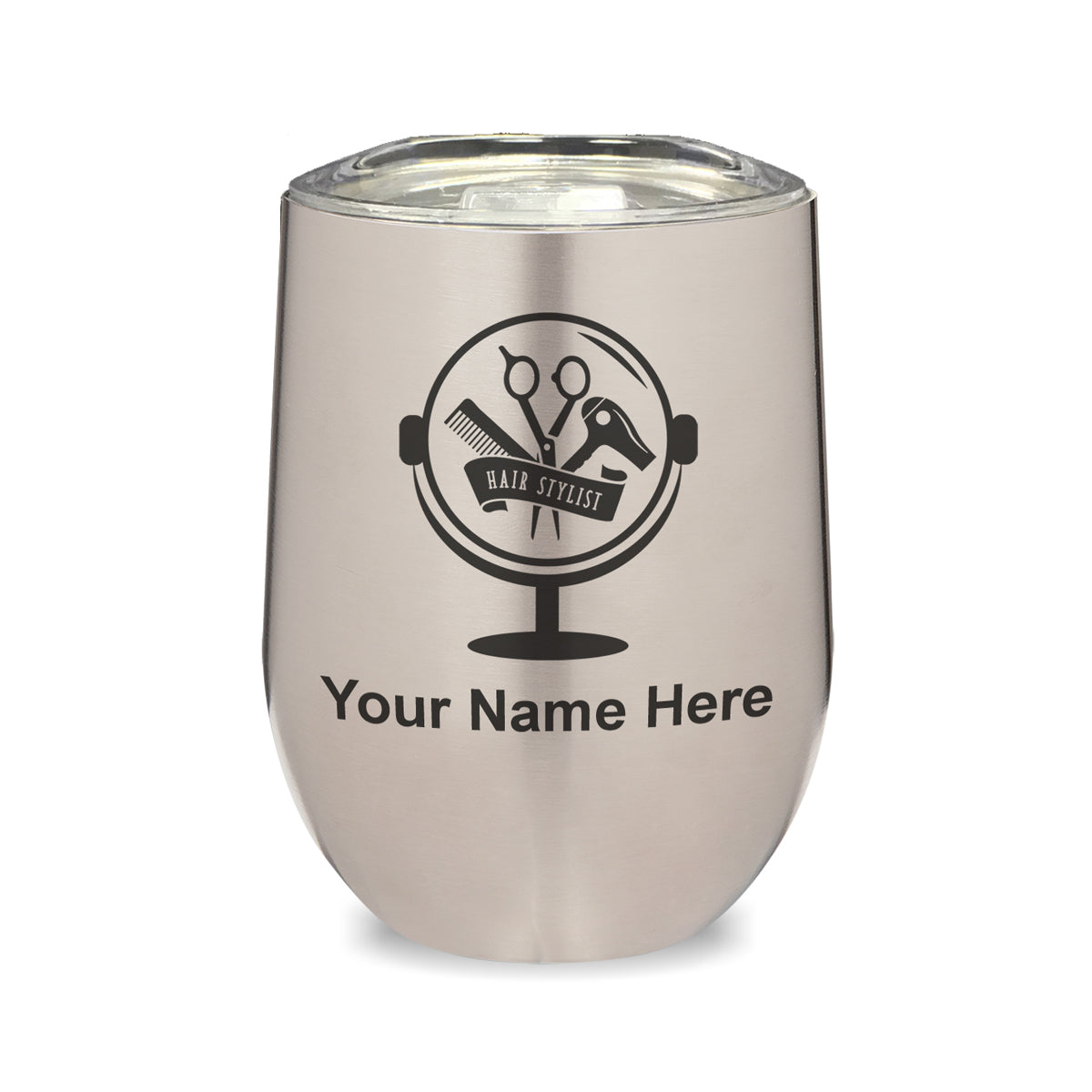 LaserGram Double Wall Stainless Steel Wine Glass, Hair Stylist, Personalized Engraving Included
