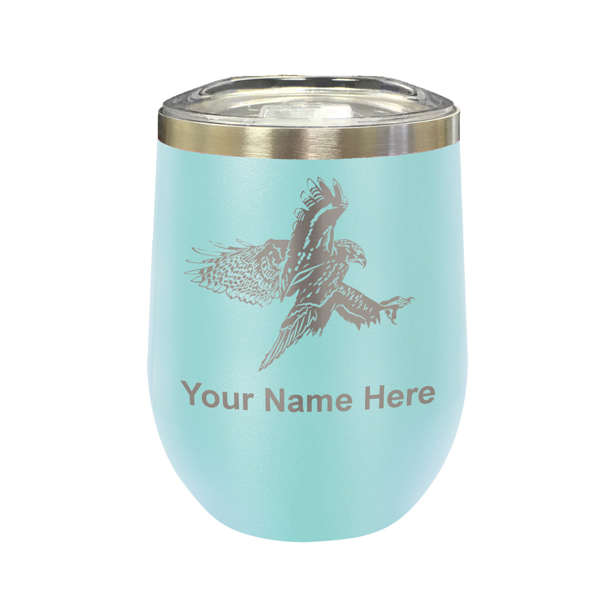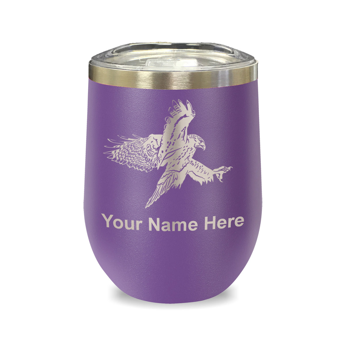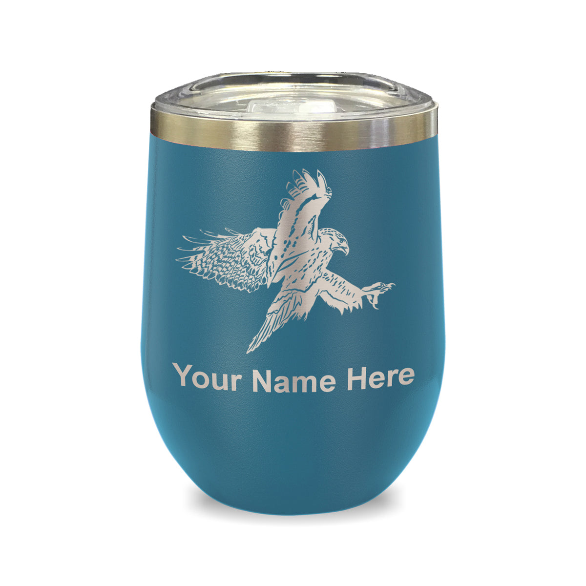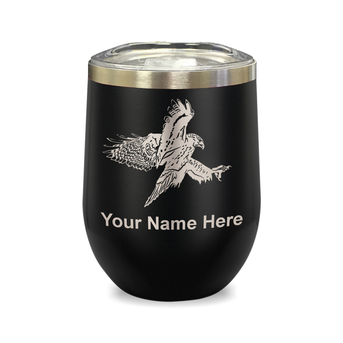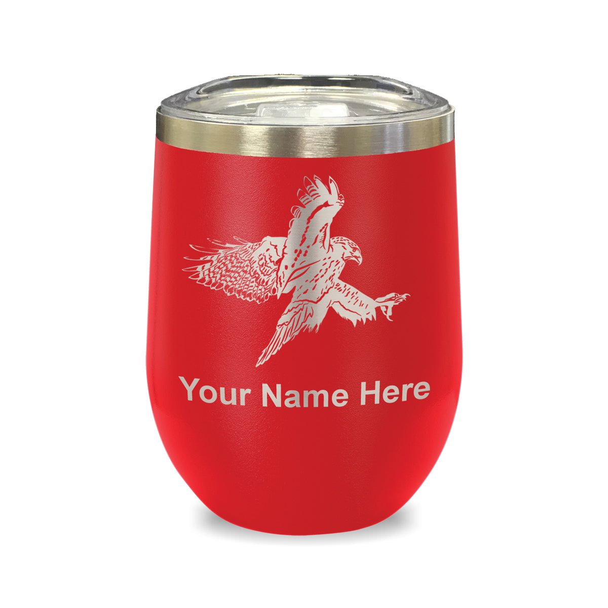 LaserGram Double Wall Stainless Steel Wine Glass, Hawk, Personalized Engraving Included