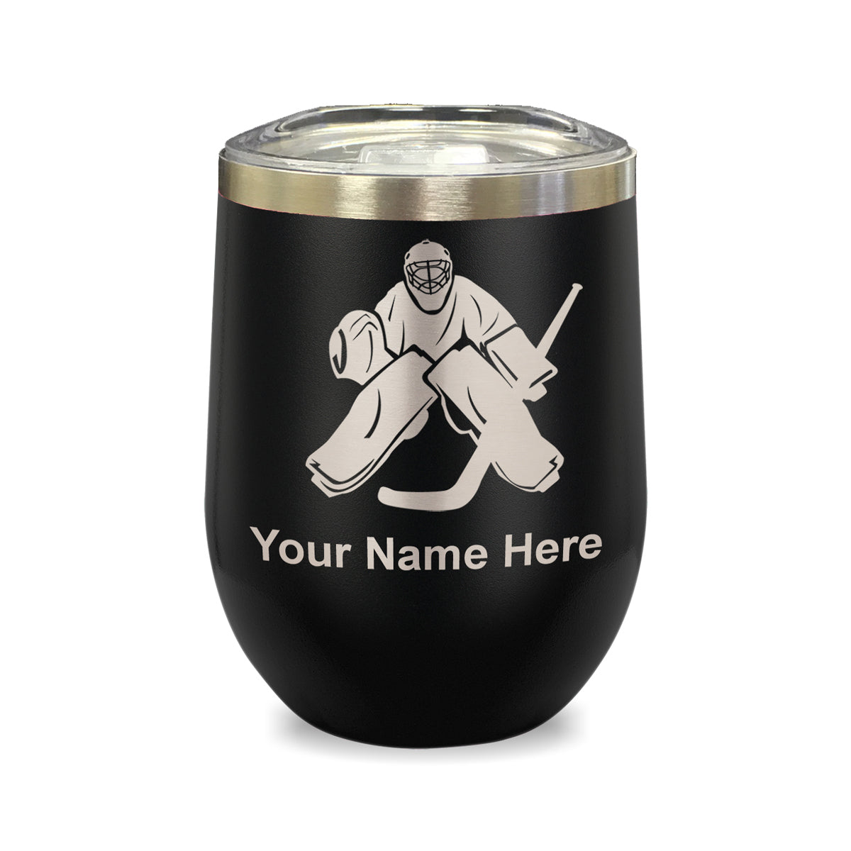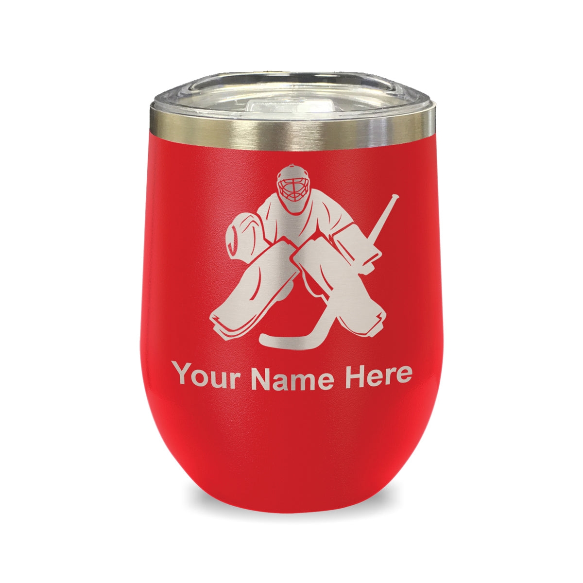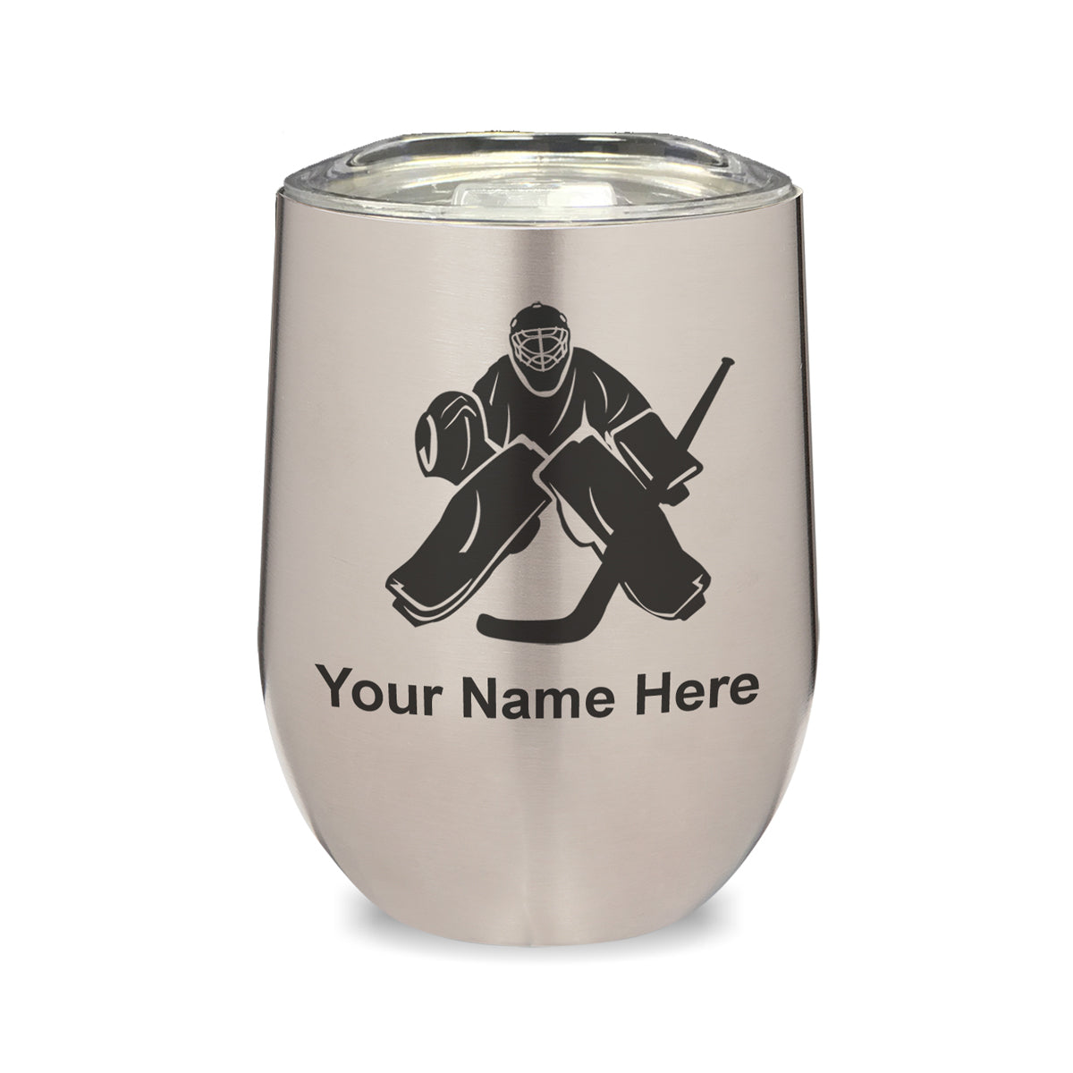 LaserGram Double Wall Stainless Steel Wine Glass, Hockey Goalie, Personalized Engraving Included
