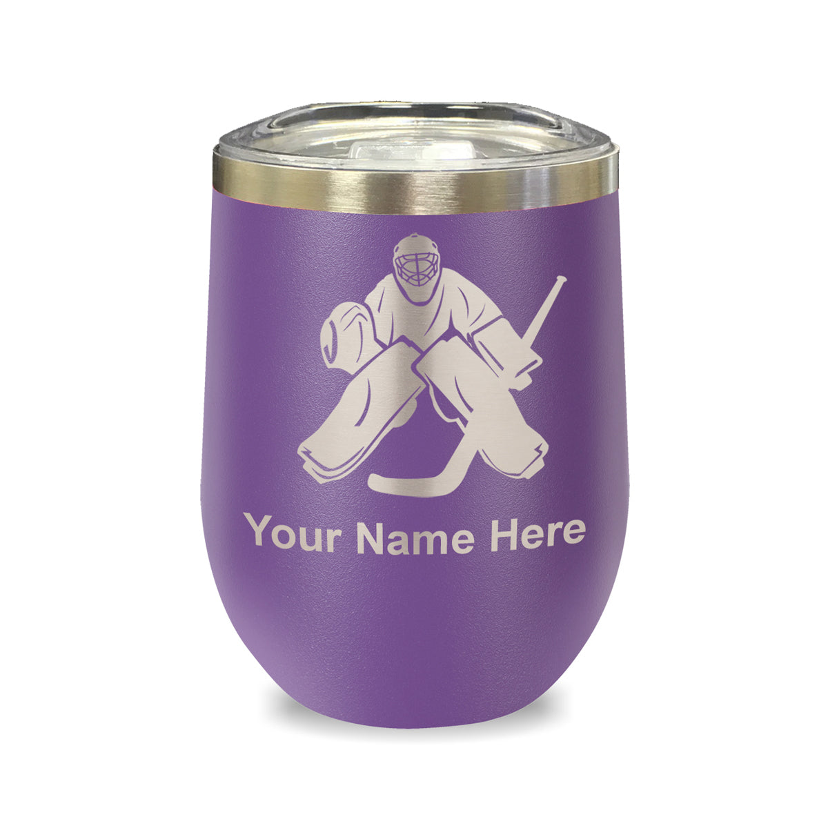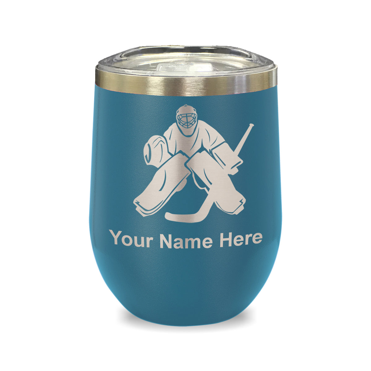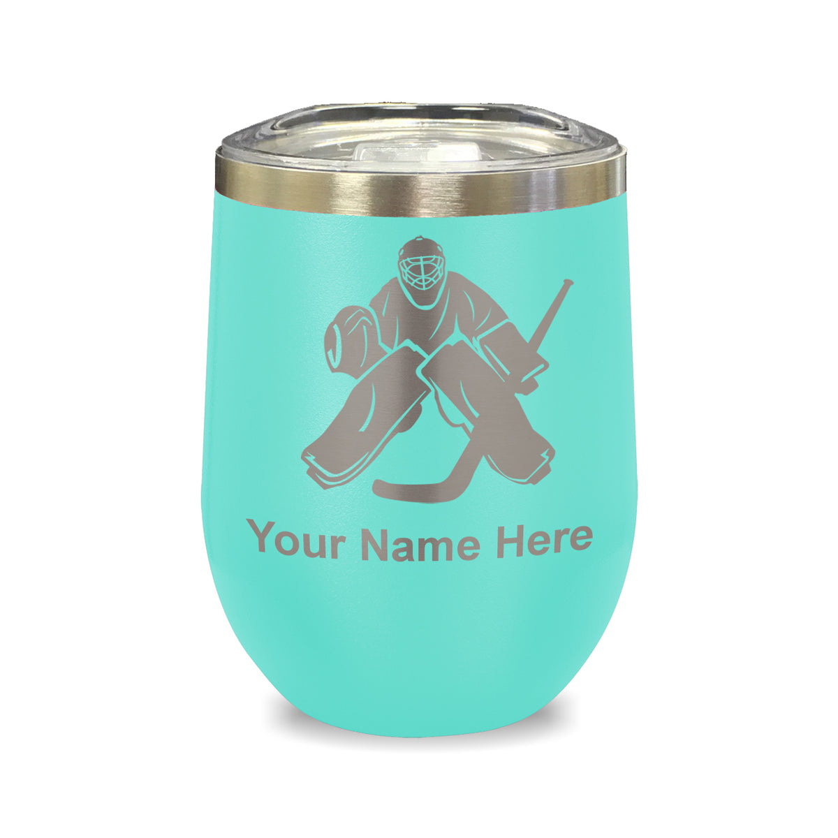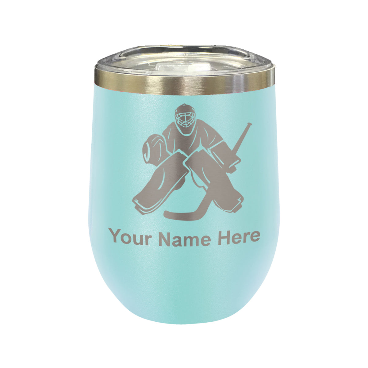 LaserGram Double Wall Stainless Steel Wine Glass, Hockey Goalie, Personalized Engraving Included
