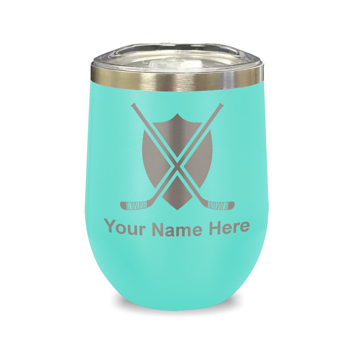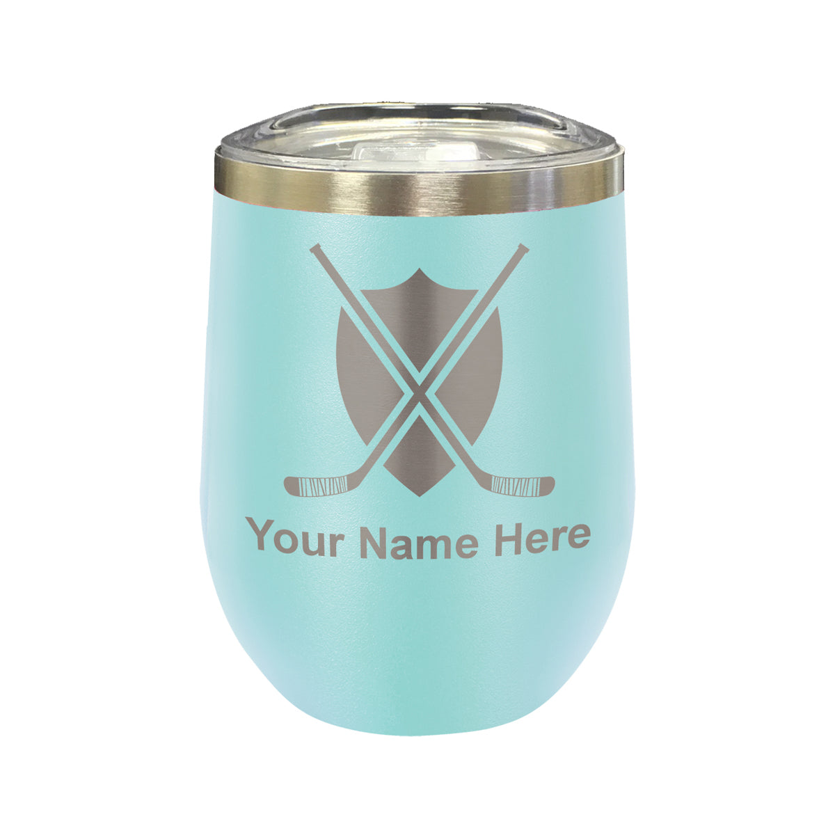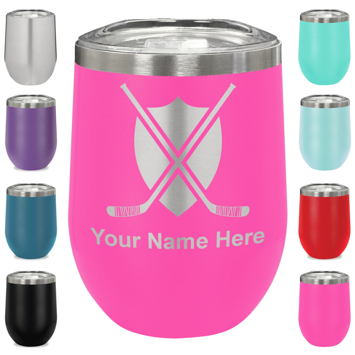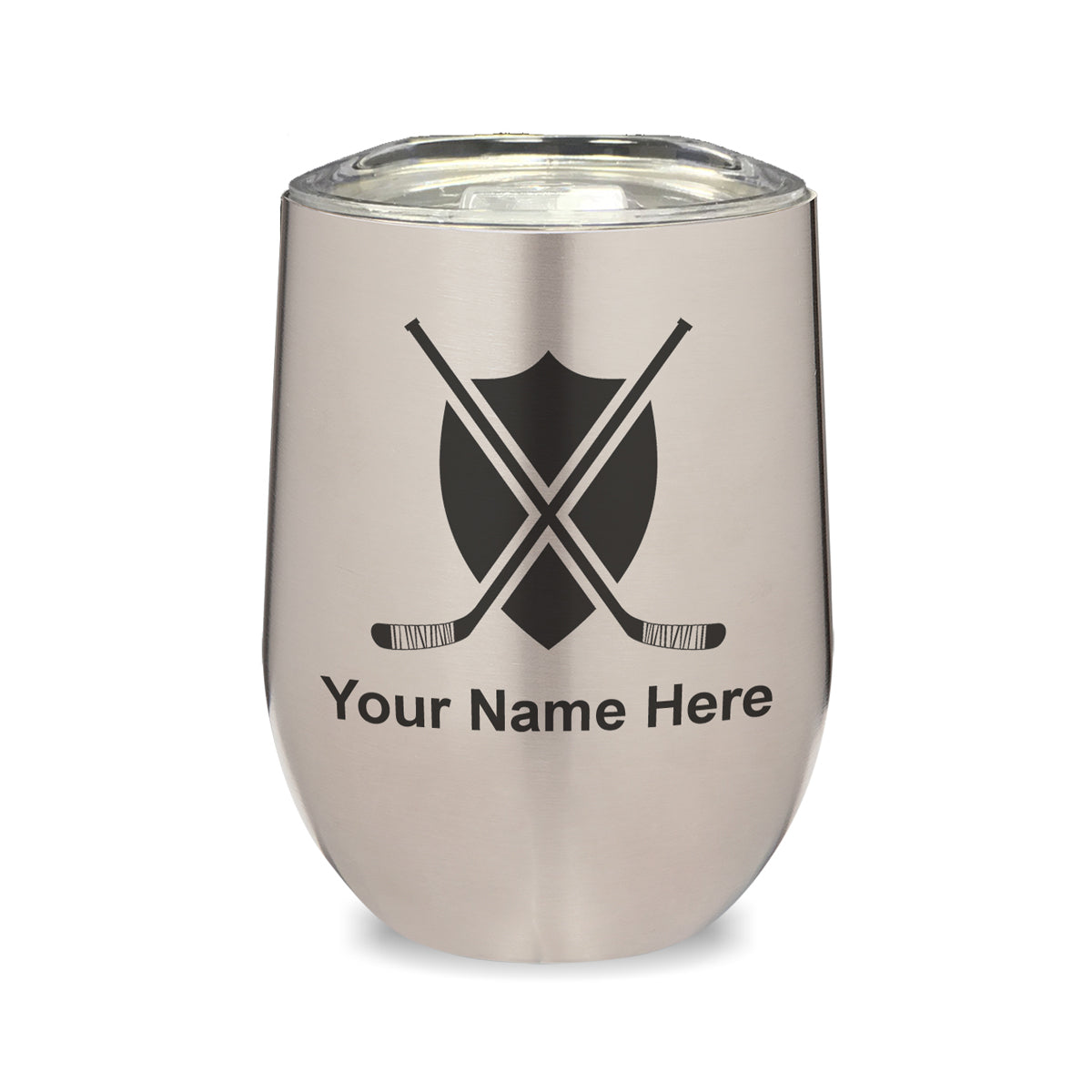LaserGram Double Wall Stainless Steel Wine Glass, Hockey Sticks, Personalized Engraving Included