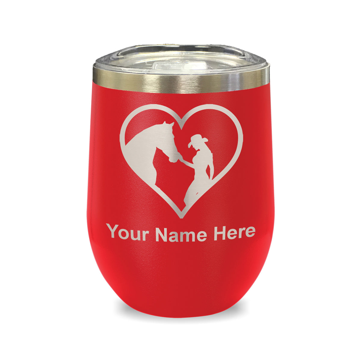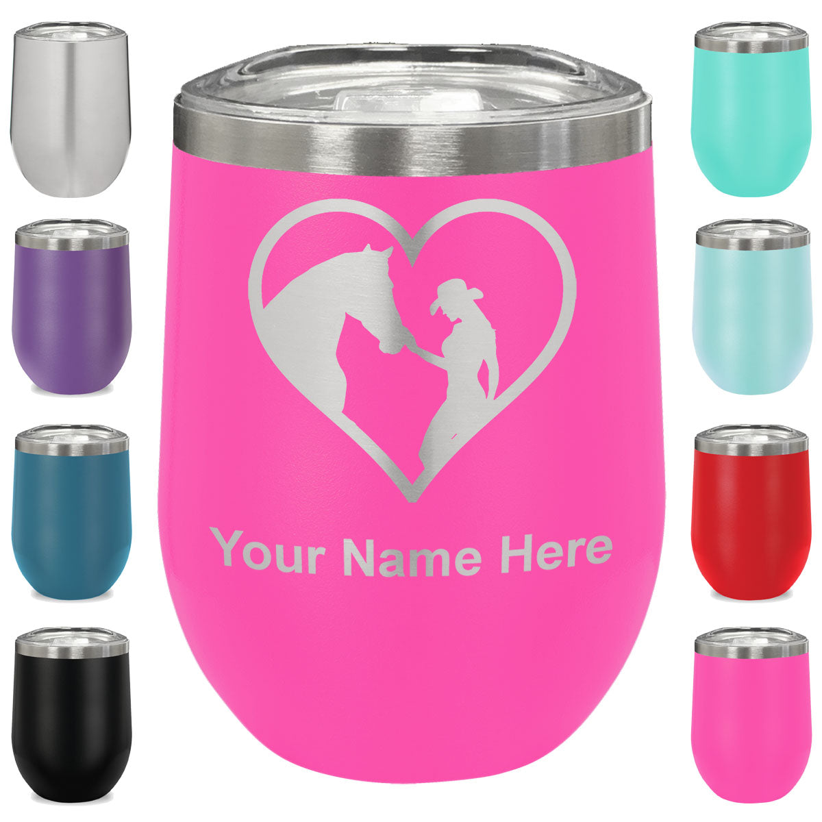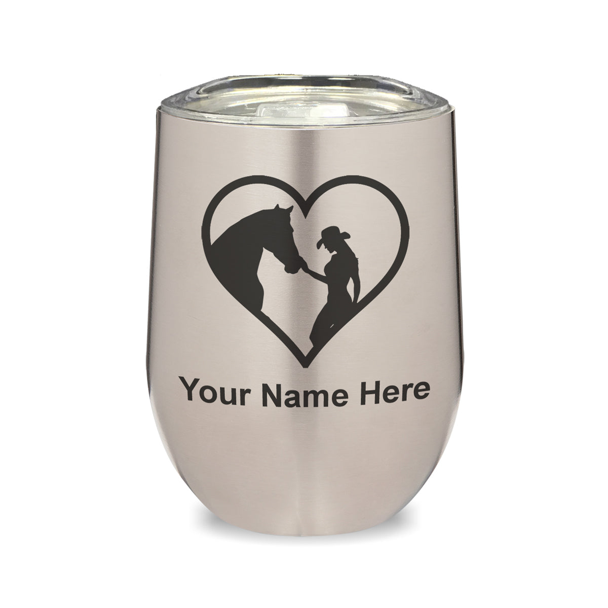 LaserGram Double Wall Stainless Steel Wine Glass, Horse Cowgirl Heart, Personalized Engraving Included