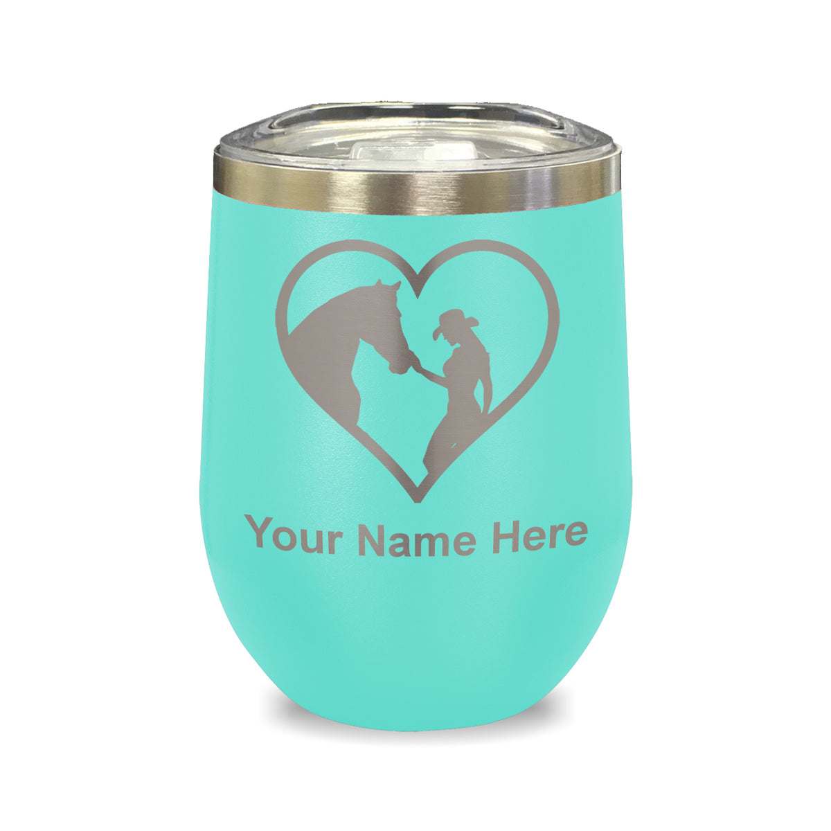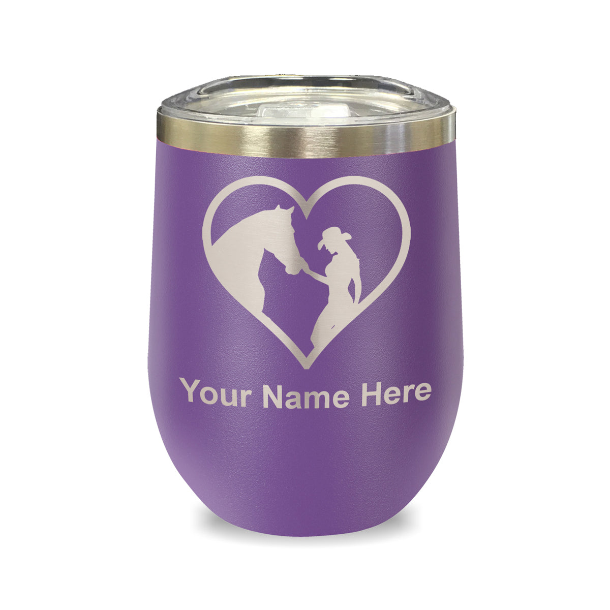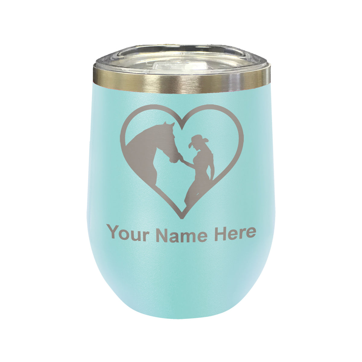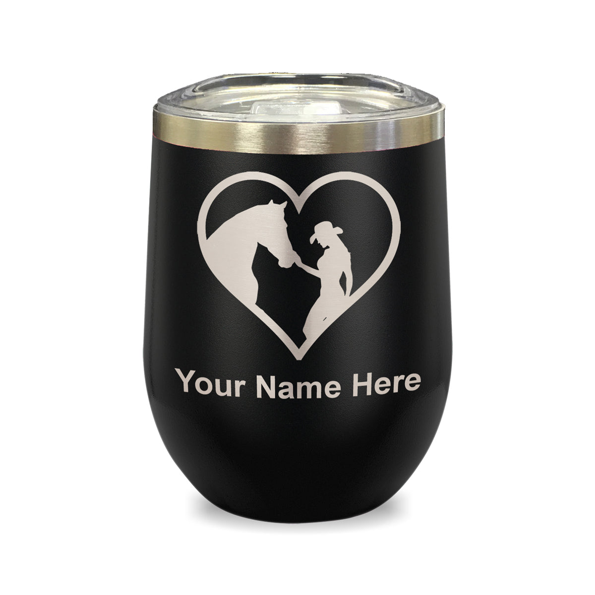 LaserGram Double Wall Stainless Steel Wine Glass, Horse Cowgirl Heart, Personalized Engraving Included