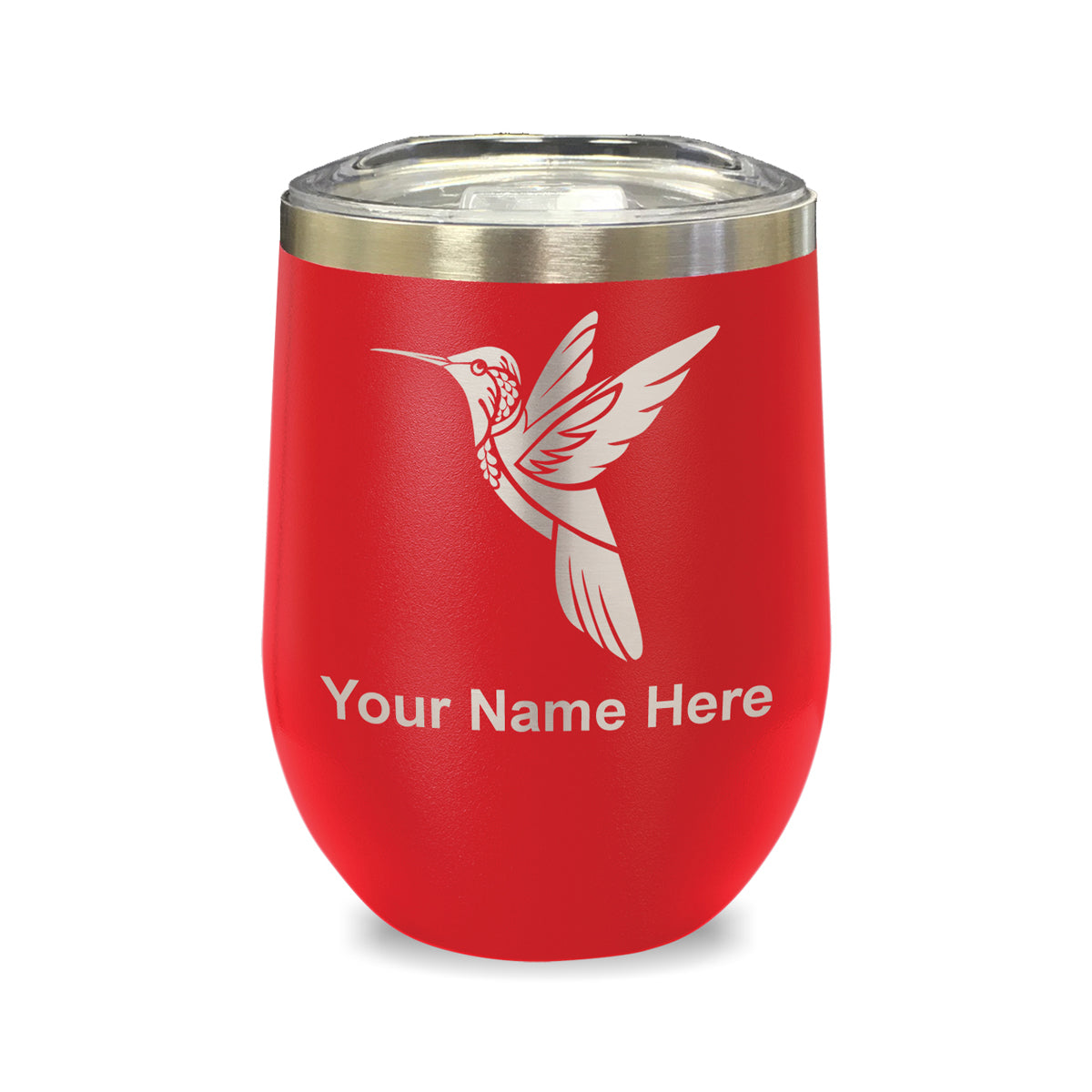 LaserGram Double Wall Stainless Steel Wine Glass, Hummingbird, Personalized Engraving Included