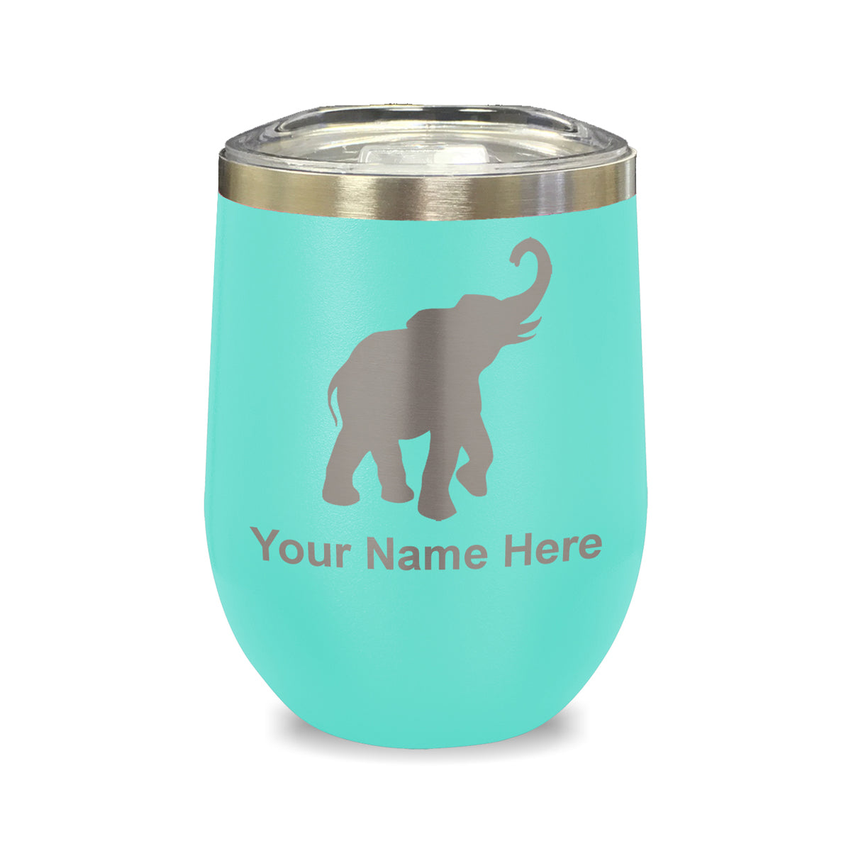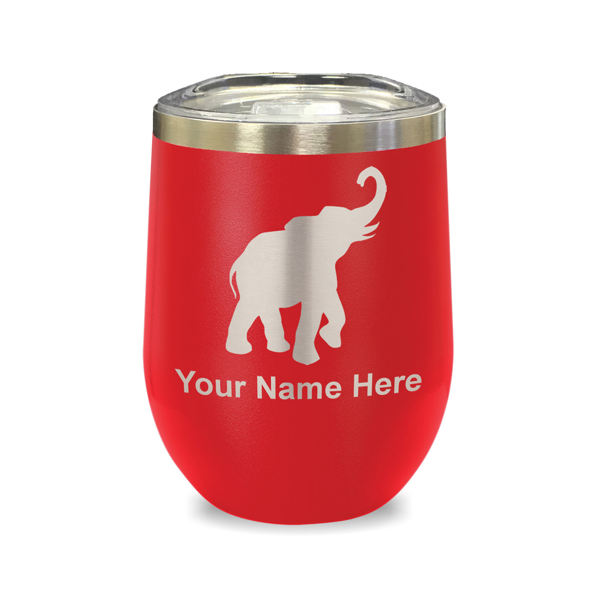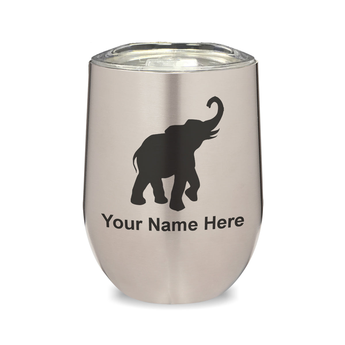 LaserGram Double Wall Stainless Steel Wine Glass, Indian Elephant, Personalized Engraving Included