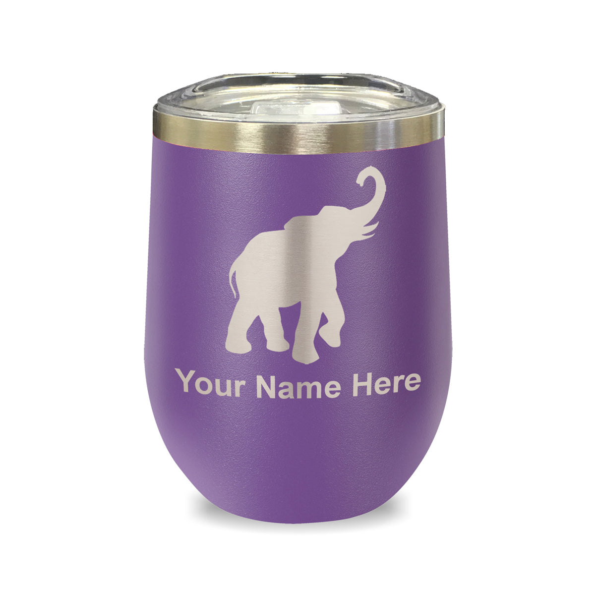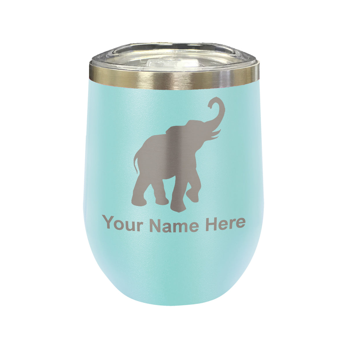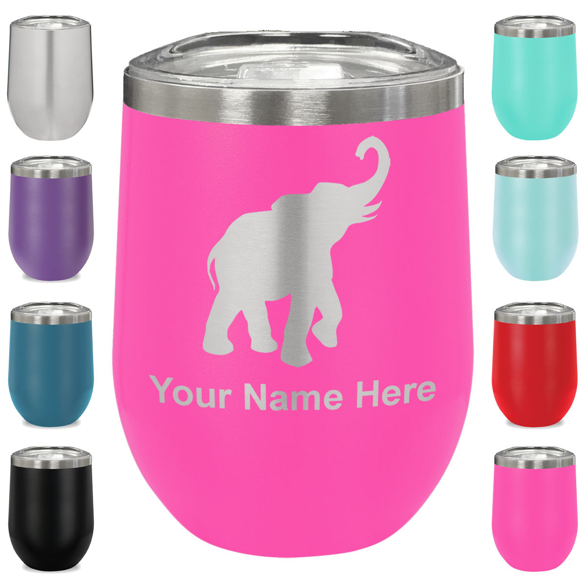 LaserGram Double Wall Stainless Steel Wine Glass, Indian Elephant, Personalized Engraving Included