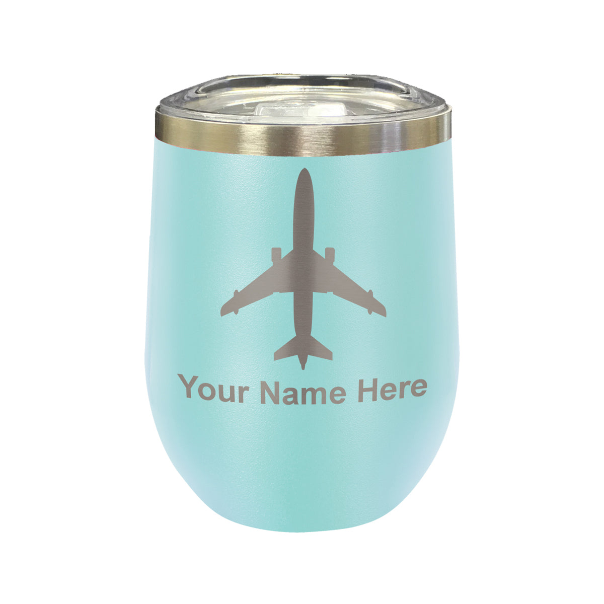 LaserGram Double Wall Stainless Steel Wine Glass, Jet Airplane, Personalized Engraving Included