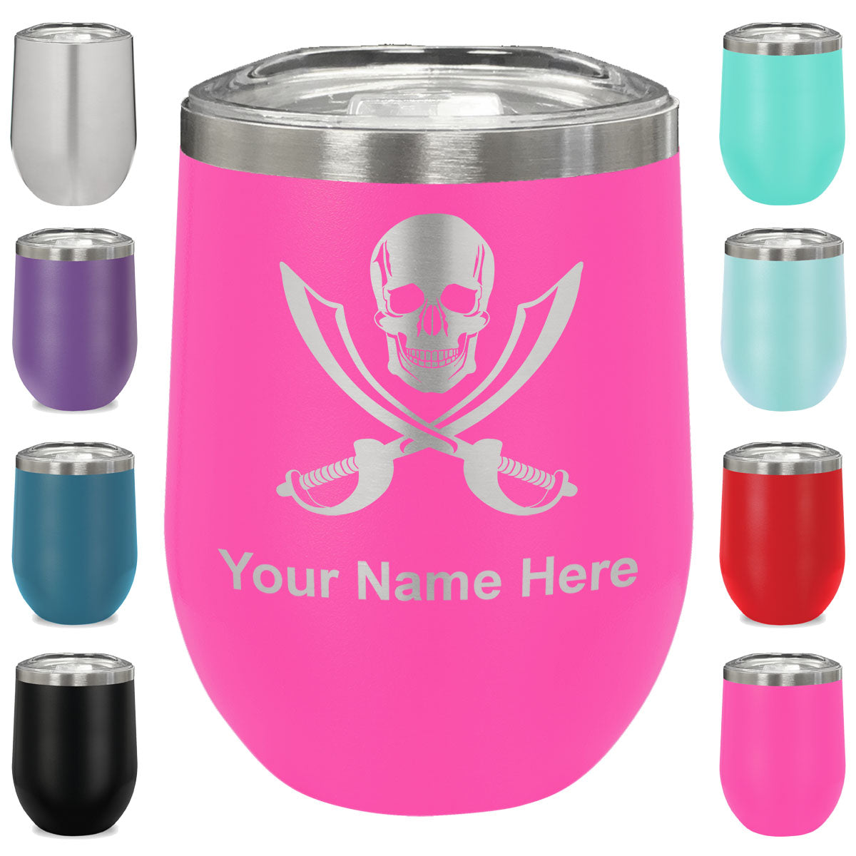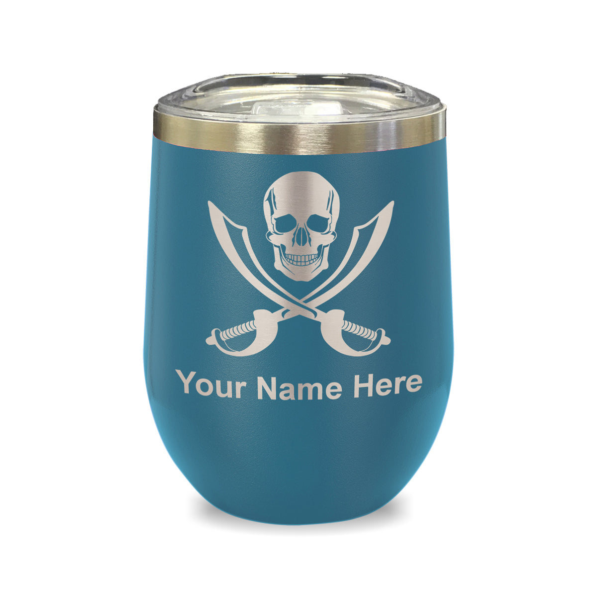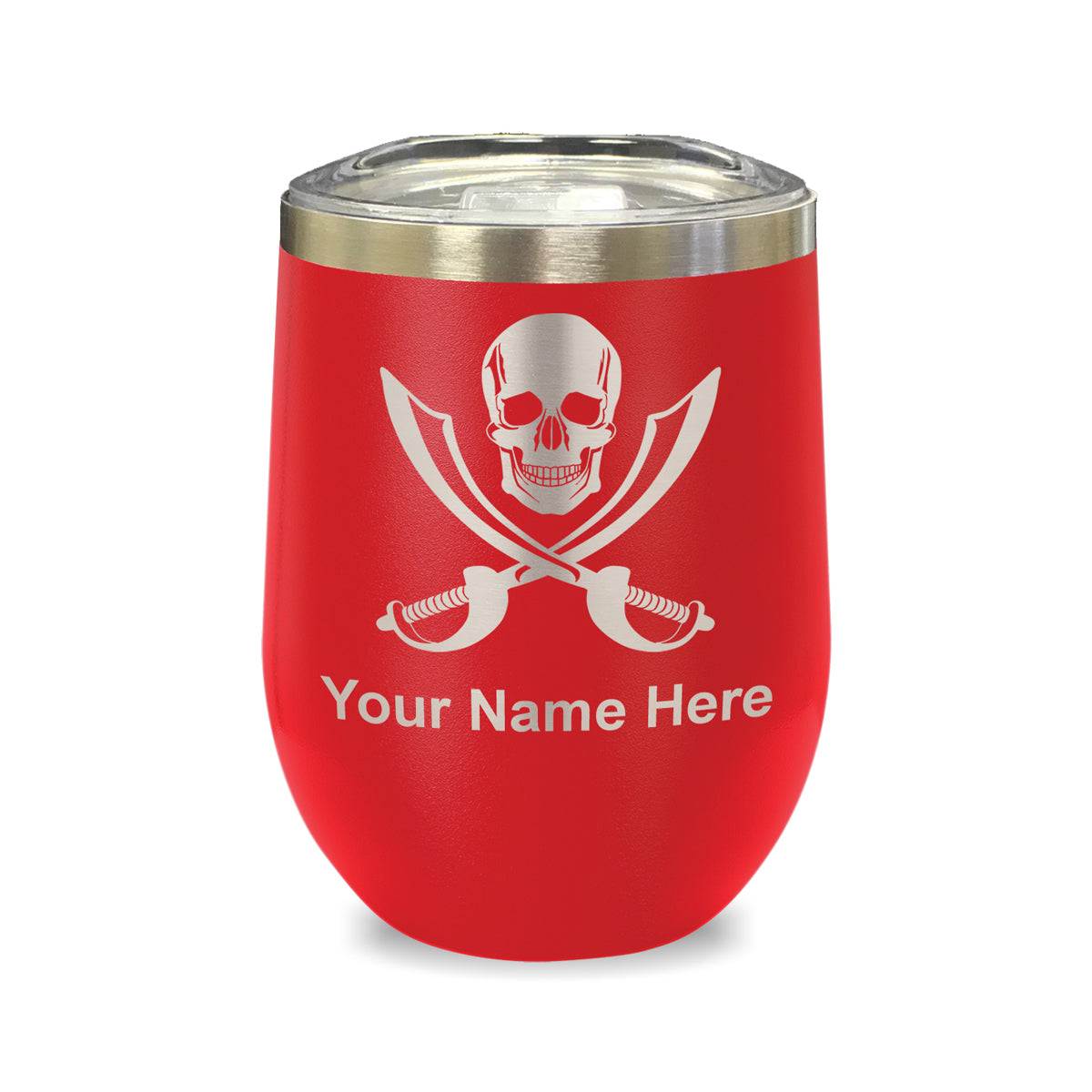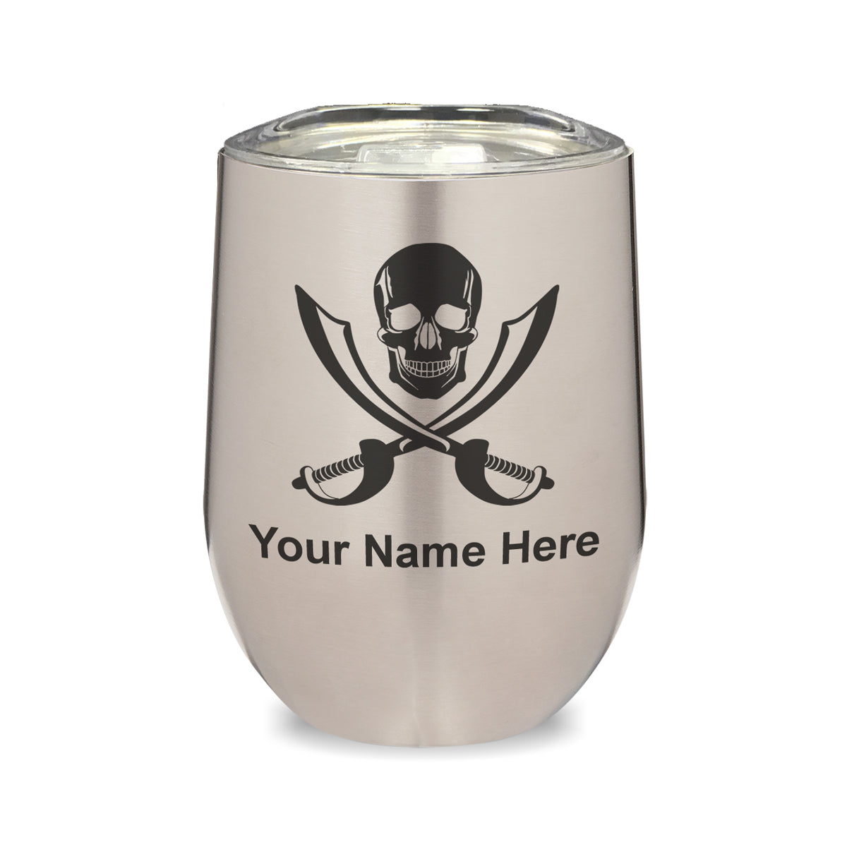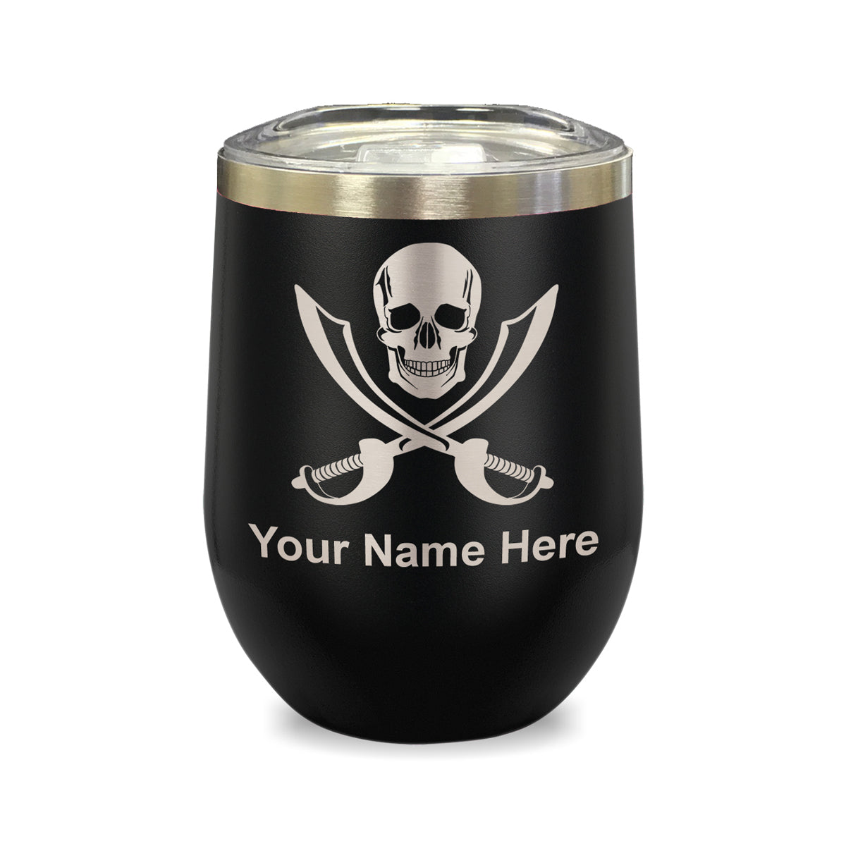 LaserGram Double Wall Stainless Steel Wine Glass, Jolly Roger, Personalized Engraving Included