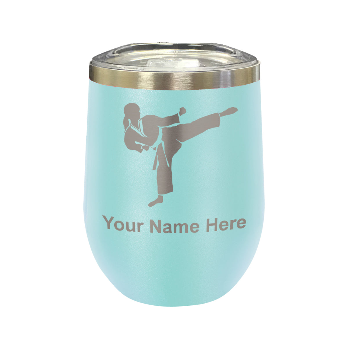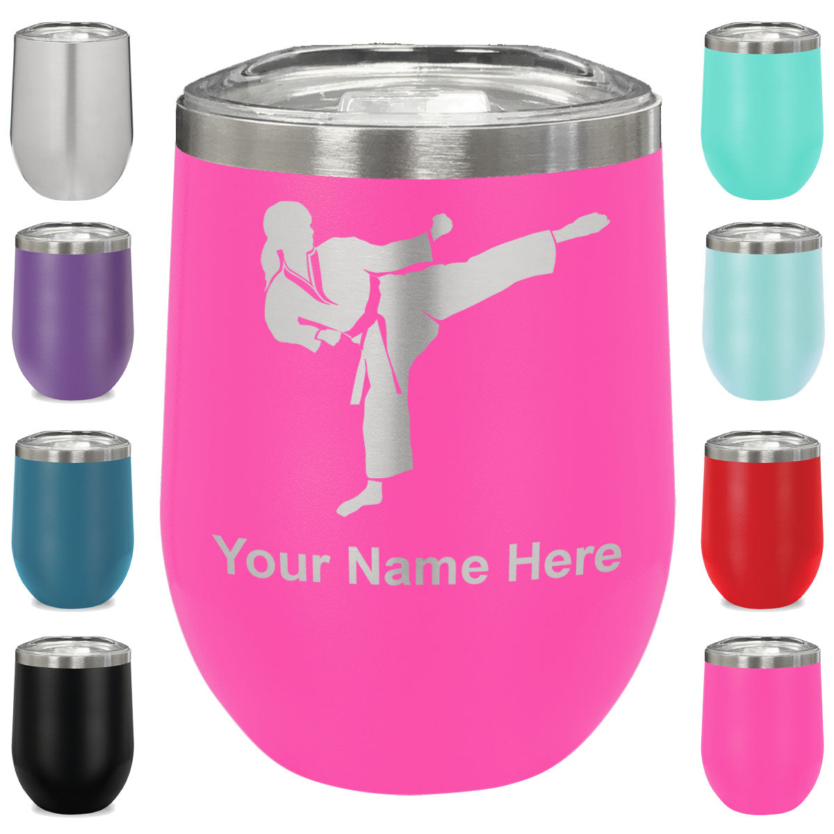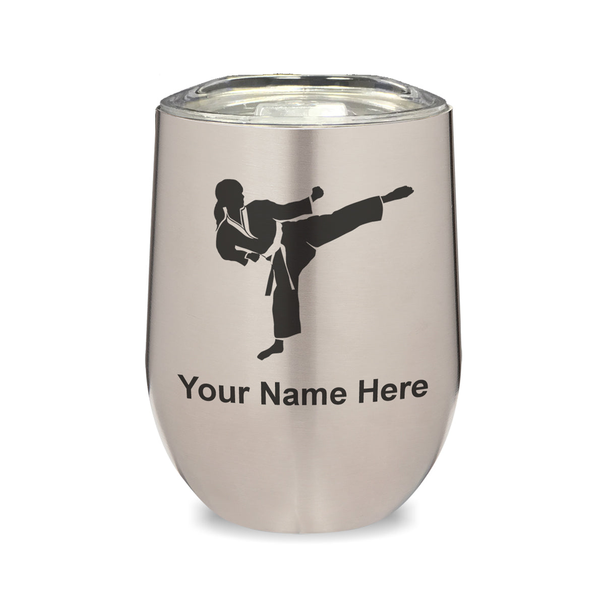 LaserGram Double Wall Stainless Steel Wine Glass, Karate Woman, Personalized Engraving Included