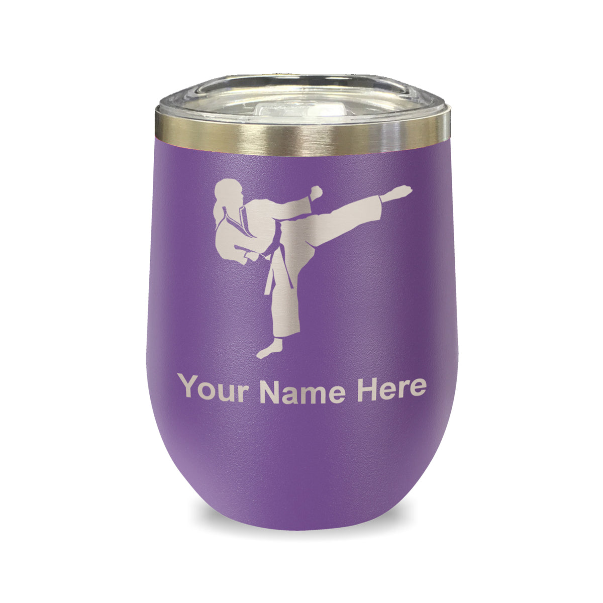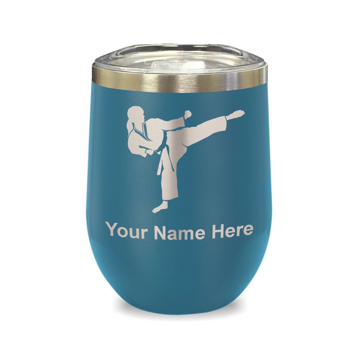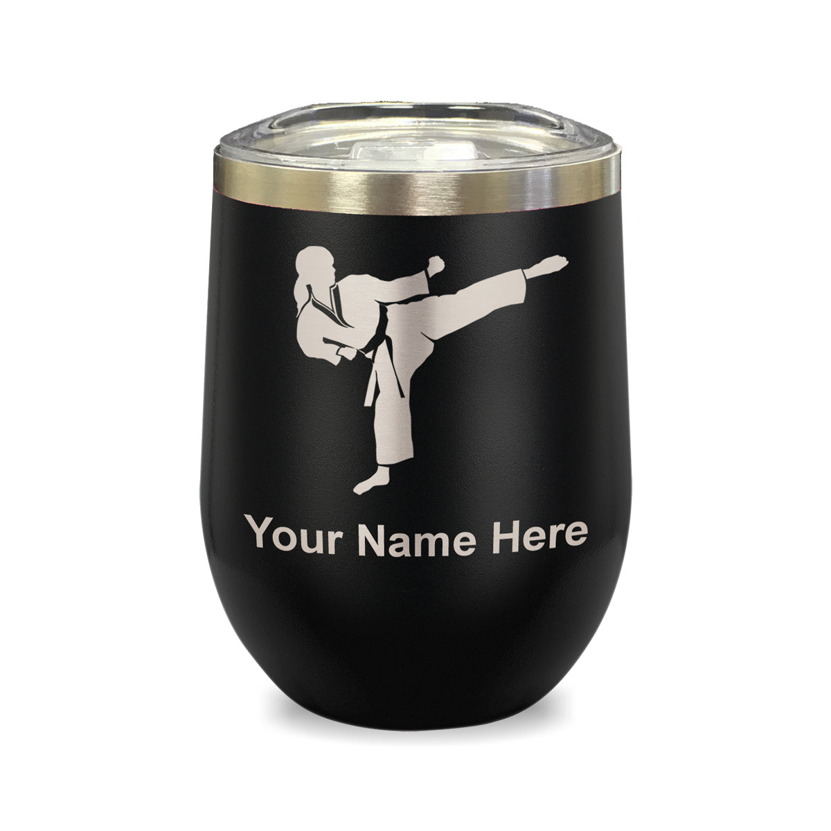 LaserGram Double Wall Stainless Steel Wine Glass, Karate Woman, Personalized Engraving Included