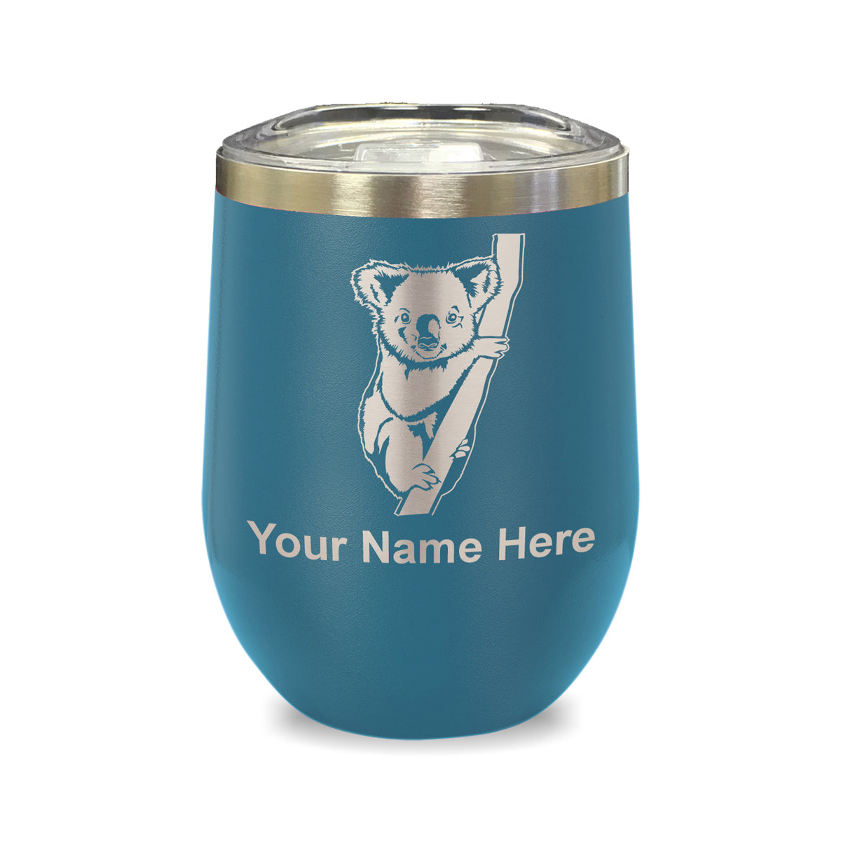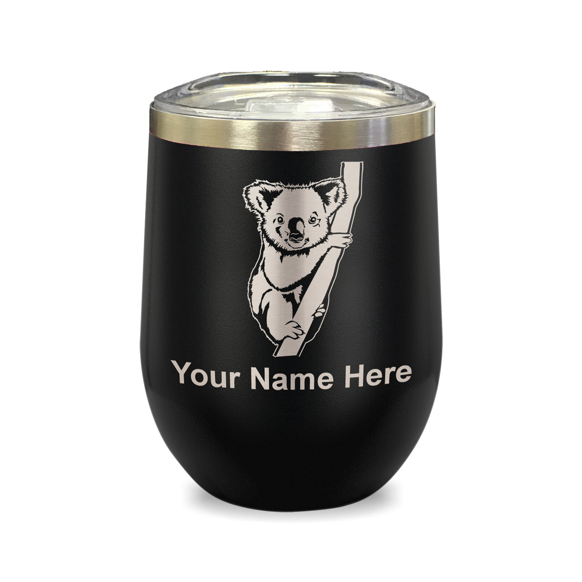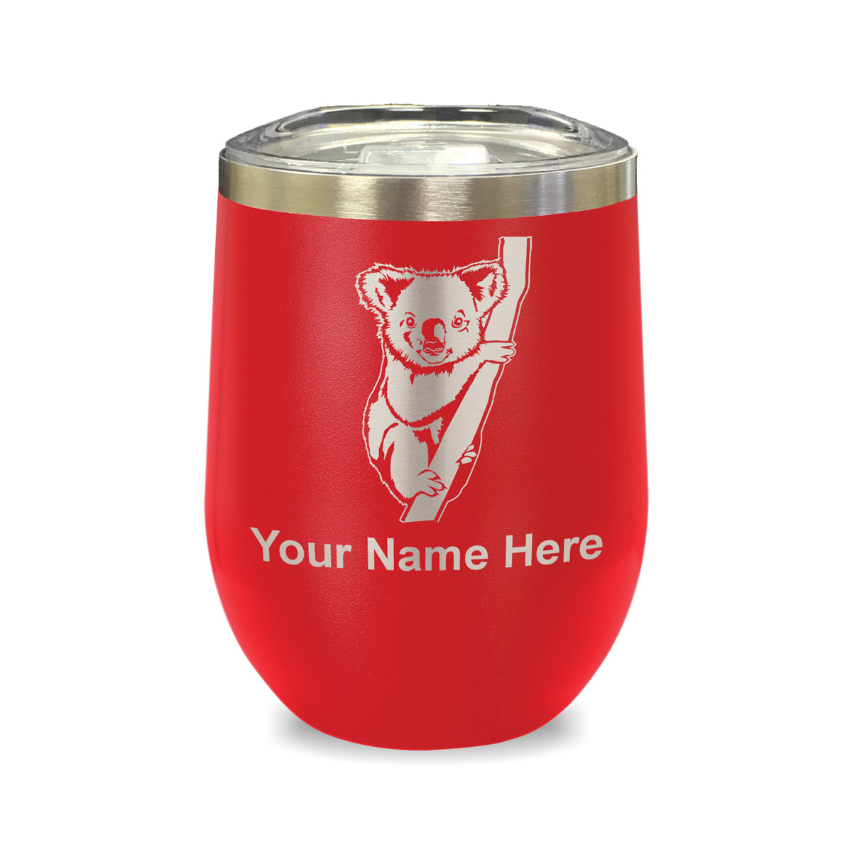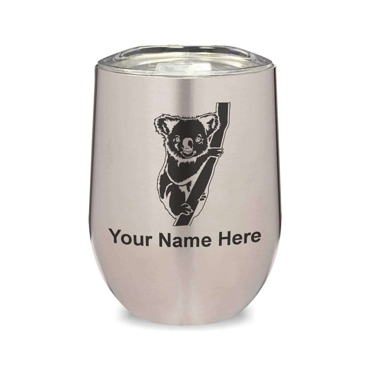 LaserGram Double Wall Stainless Steel Wine Glass, Koala Bear, Personalized Engraving Included