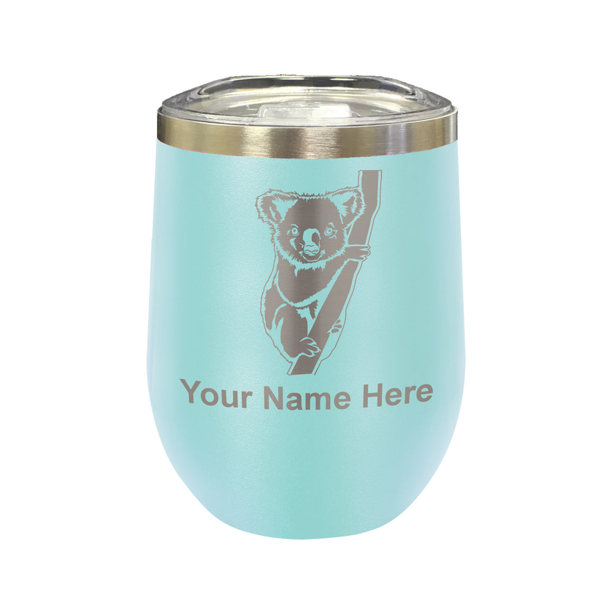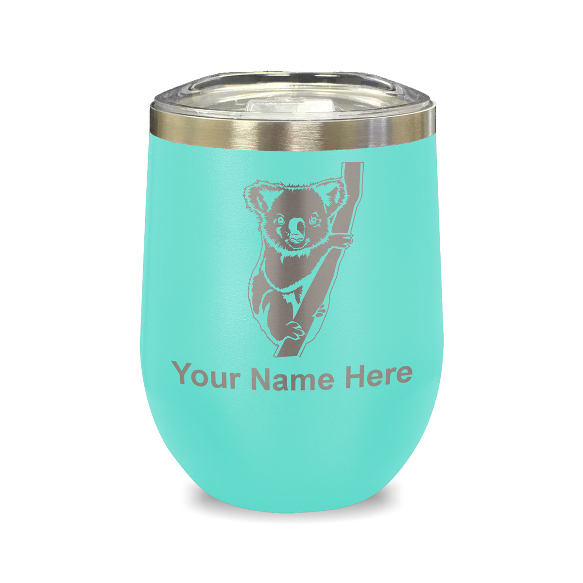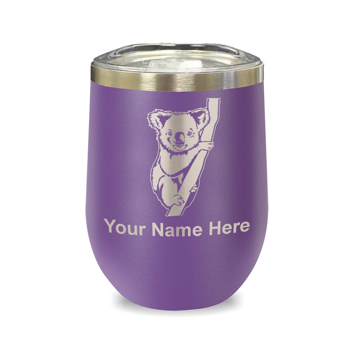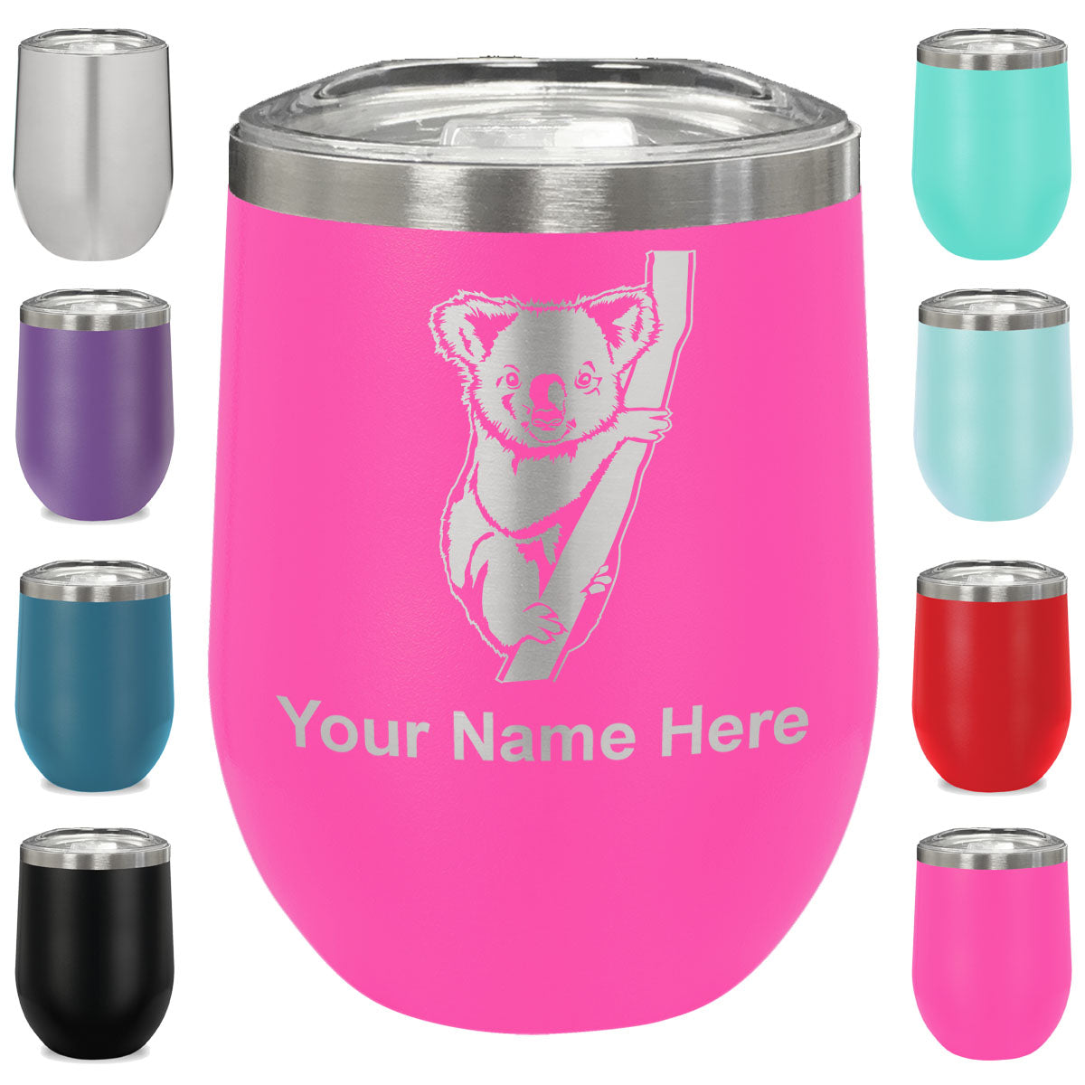 LaserGram Double Wall Stainless Steel Wine Glass, Koala Bear, Personalized Engraving Included