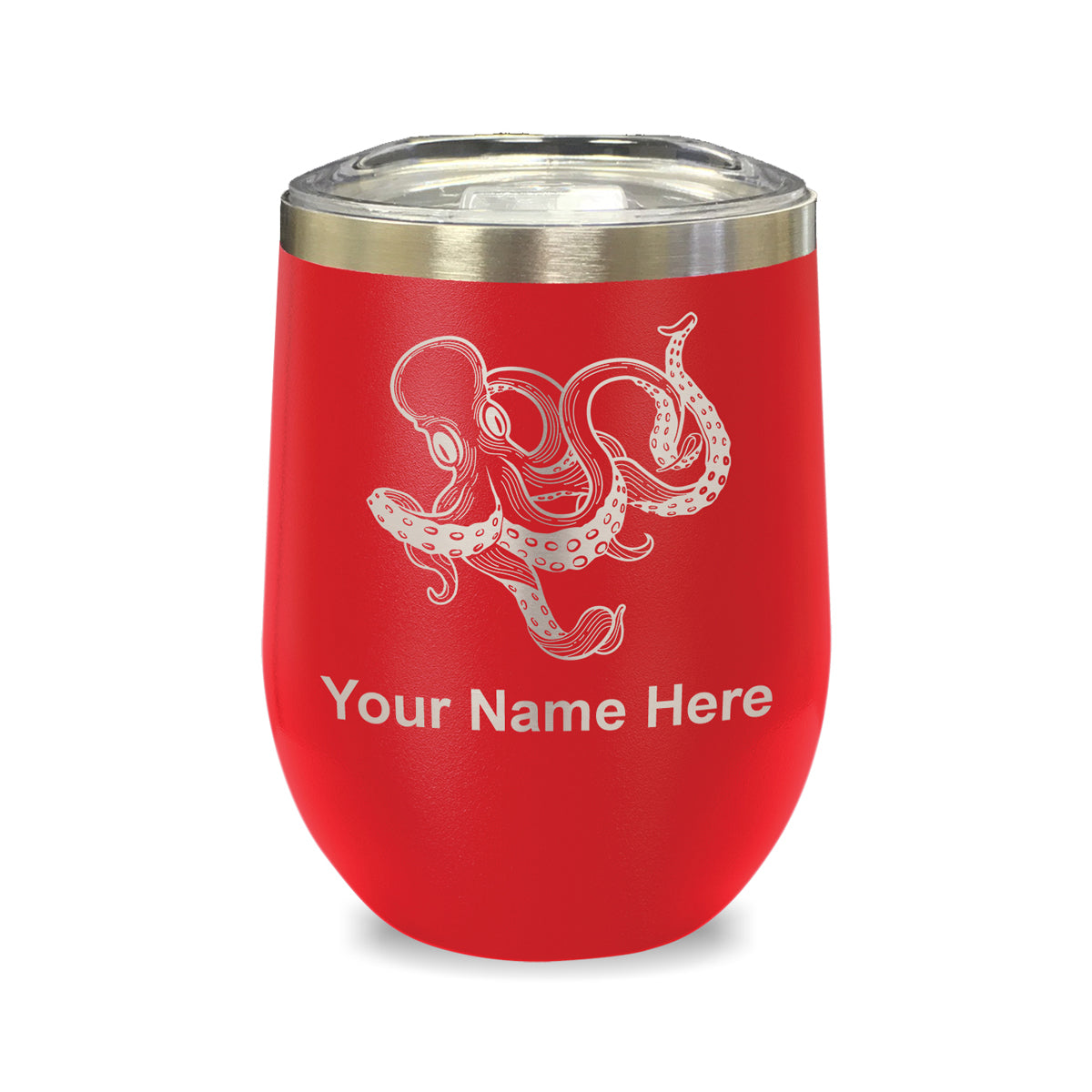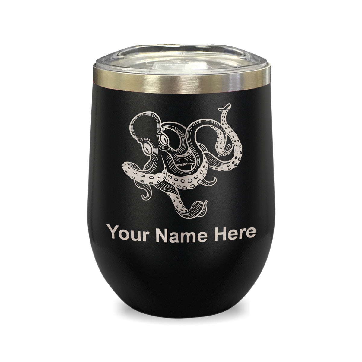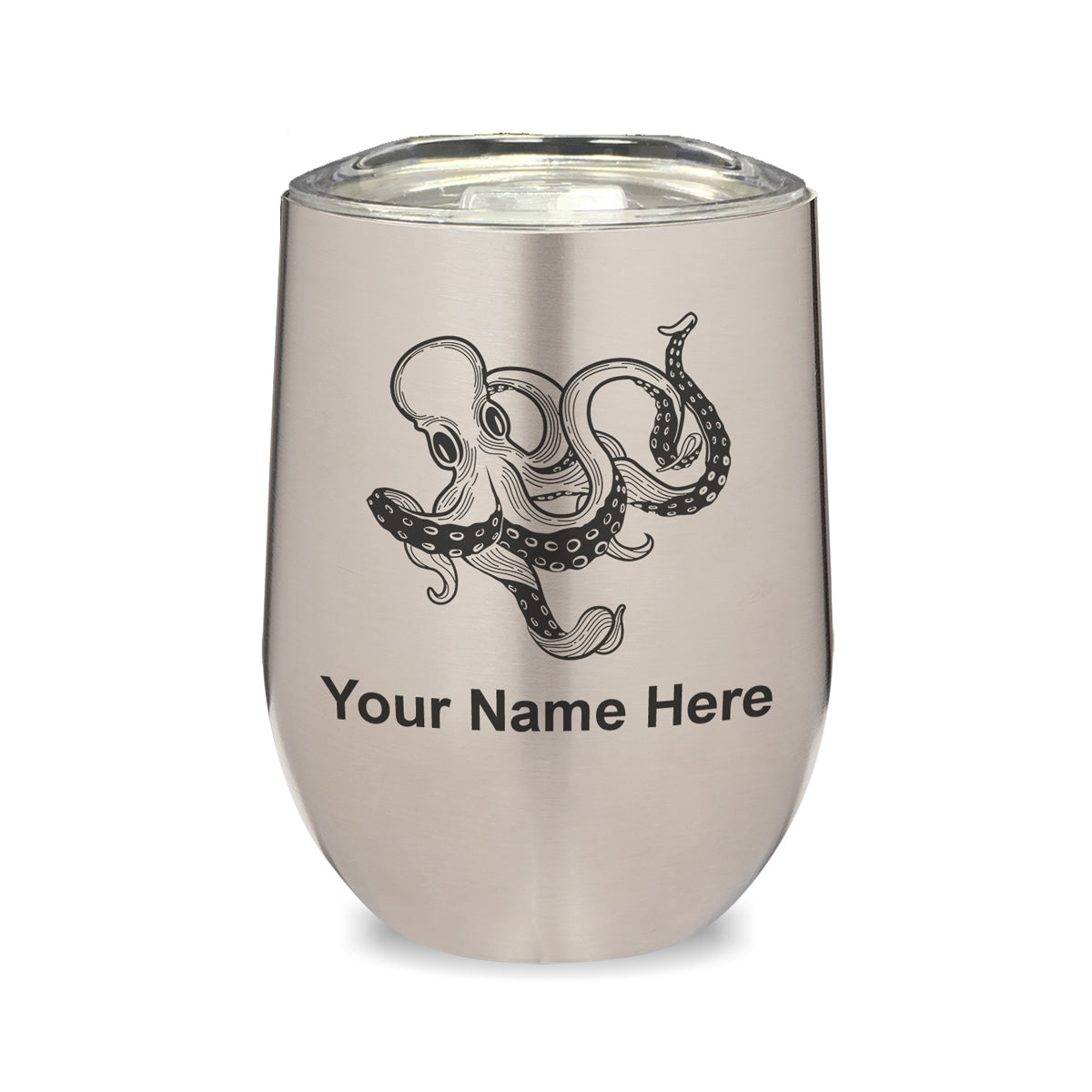 LaserGram Double Wall Stainless Steel Wine Glass, Kraken, Personalized Engraving Included