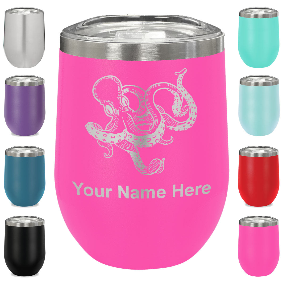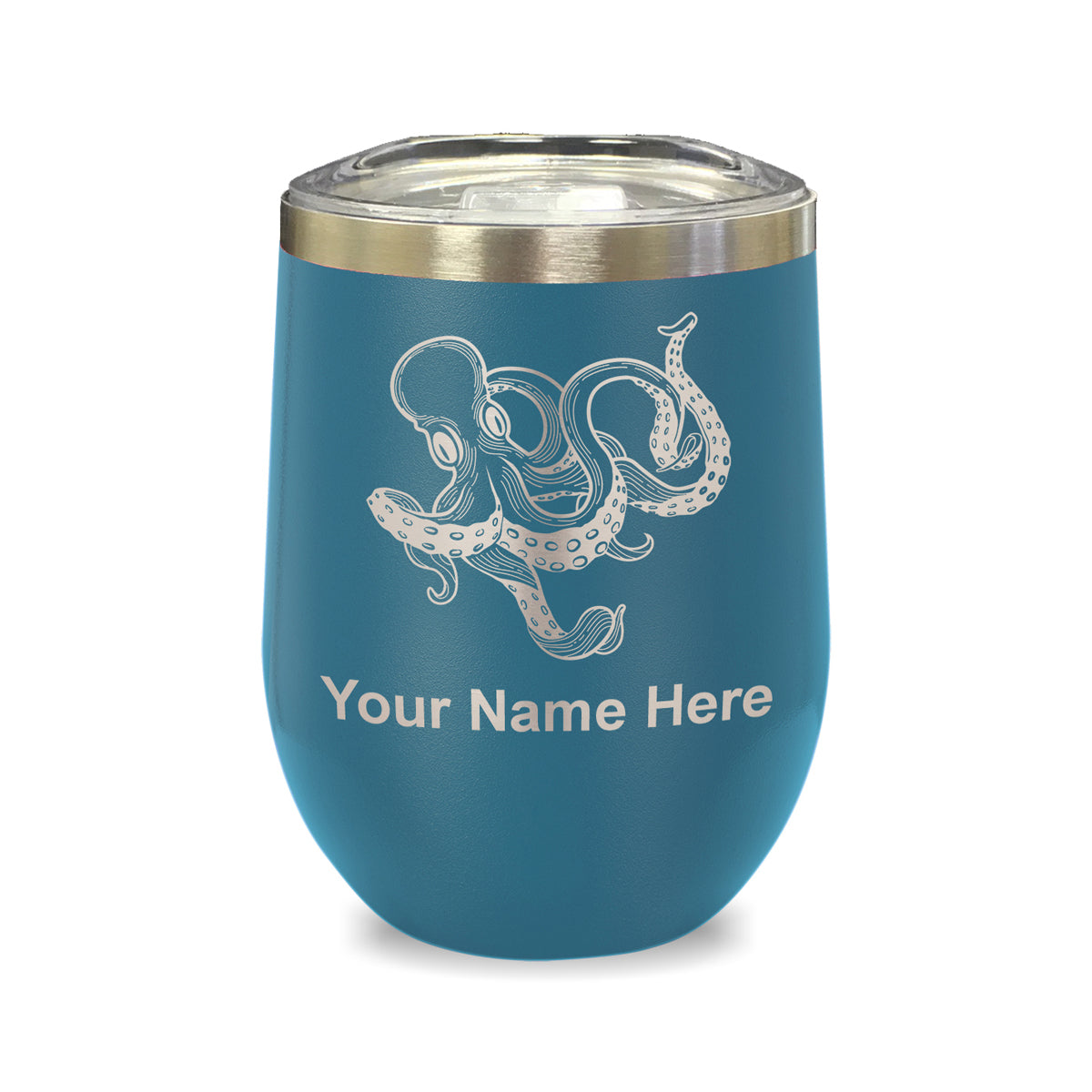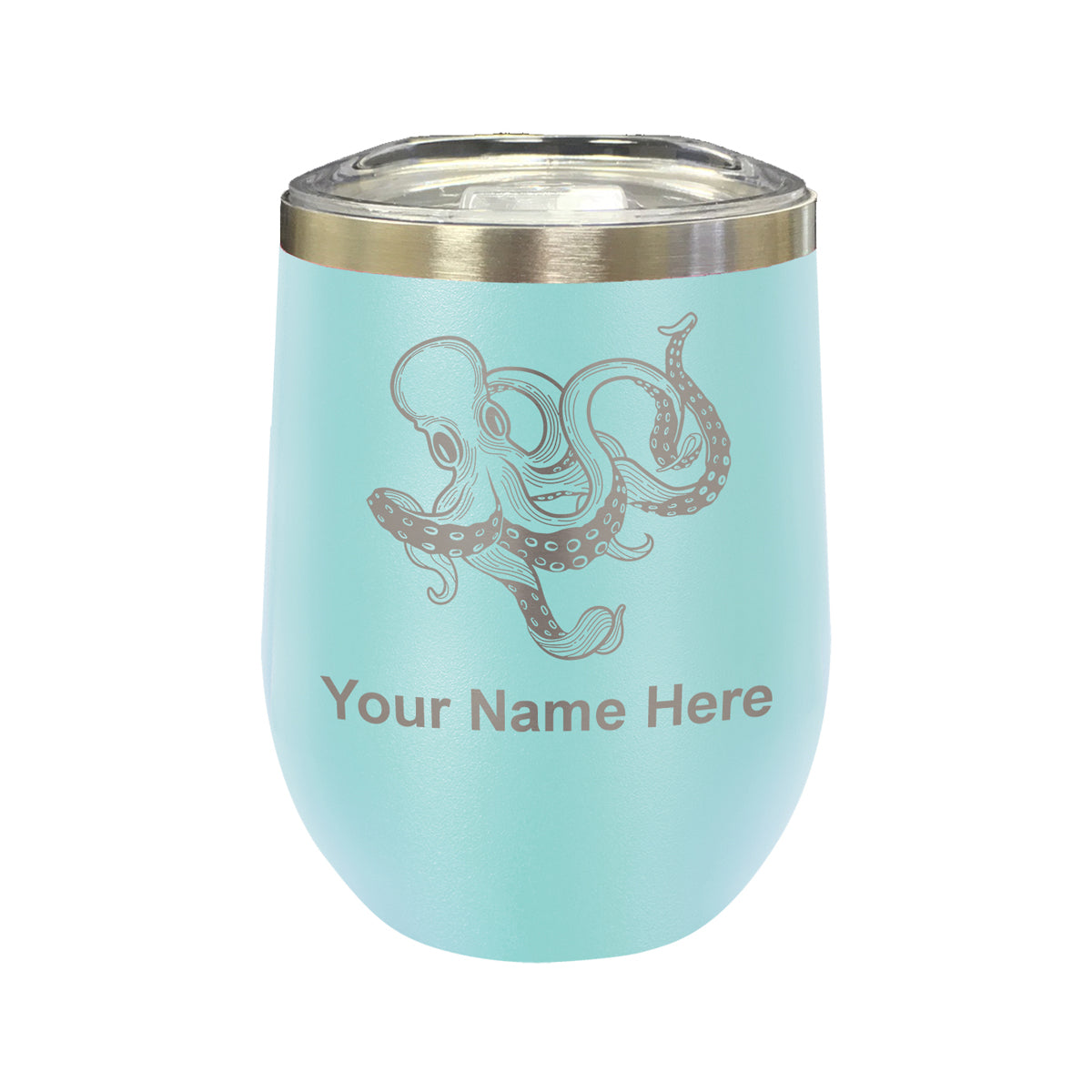 LaserGram Double Wall Stainless Steel Wine Glass, Kraken, Personalized Engraving Included