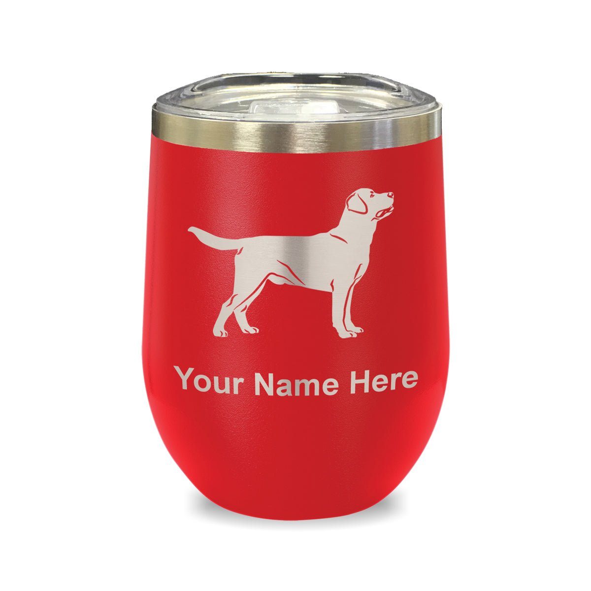 LaserGram Double Wall Stainless Steel Wine Glass, Labrador Retriever Dog, Personalized Engraving Included
