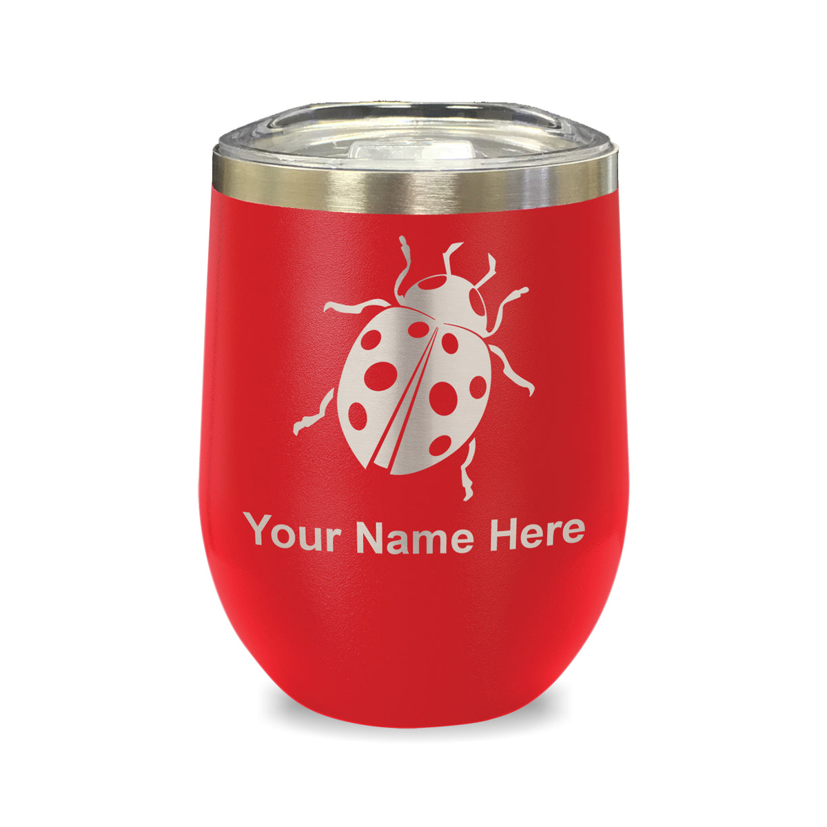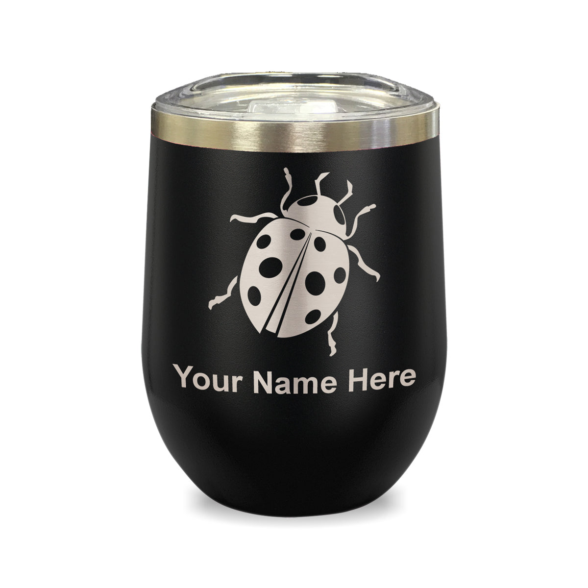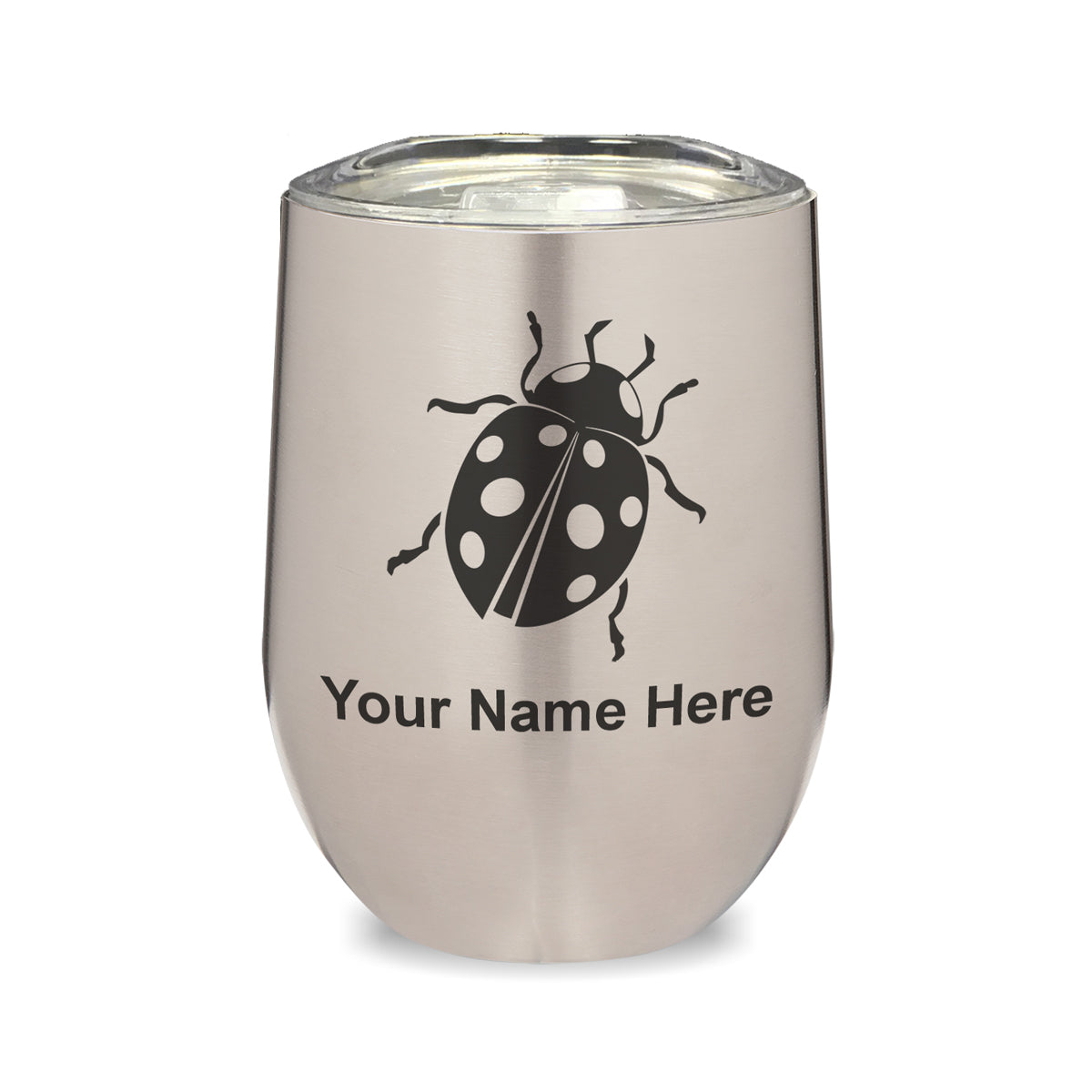 LaserGram Double Wall Stainless Steel Wine Glass, Ladybug, Personalized Engraving Included