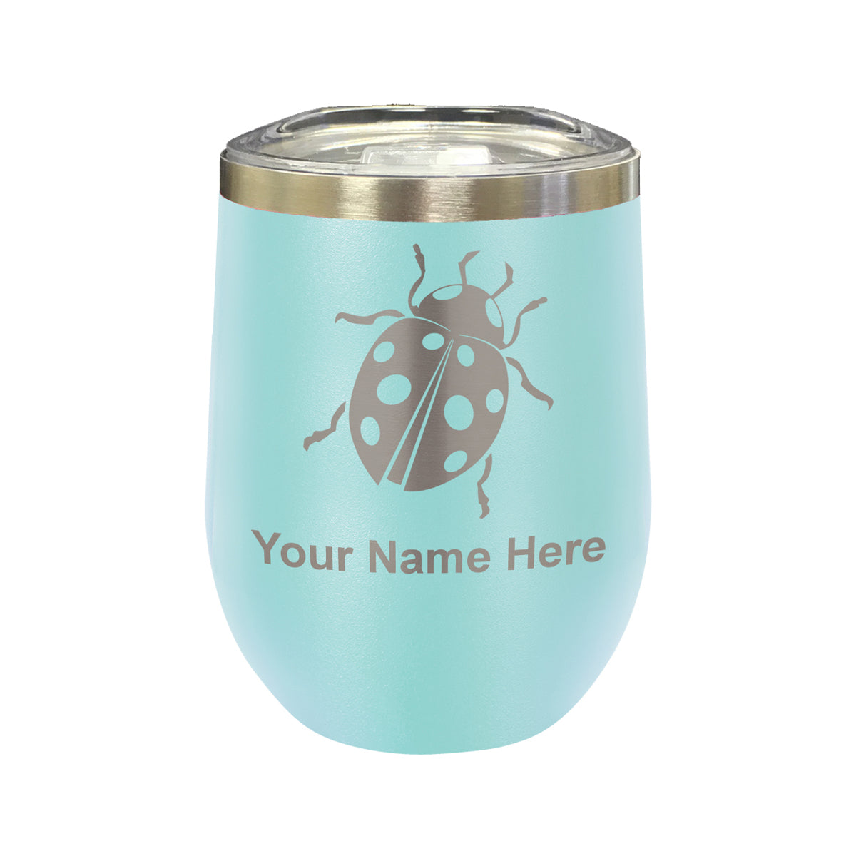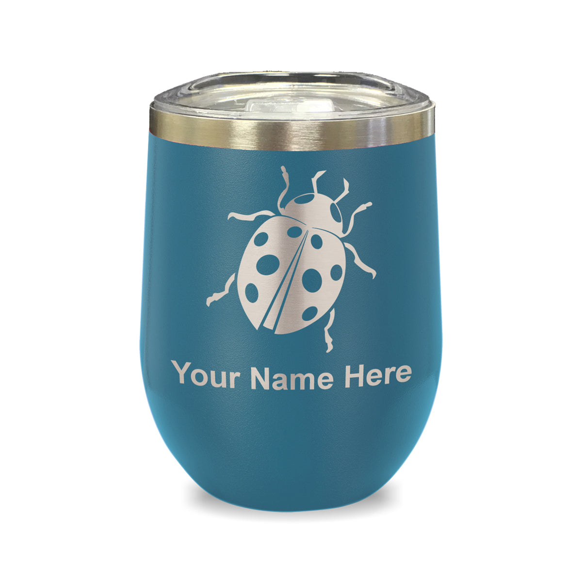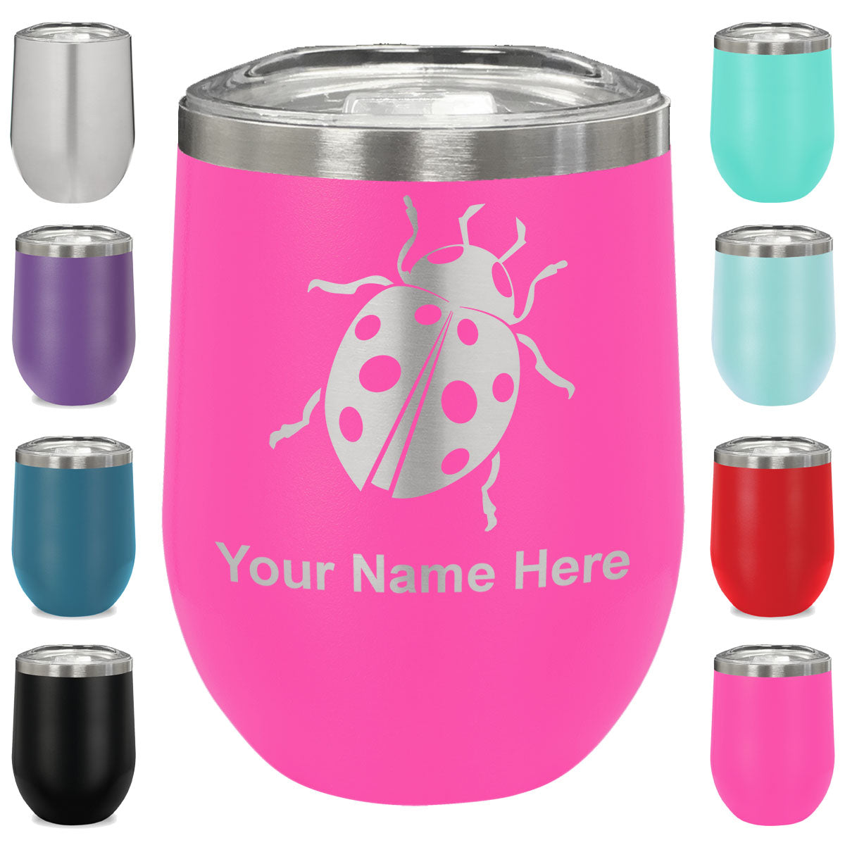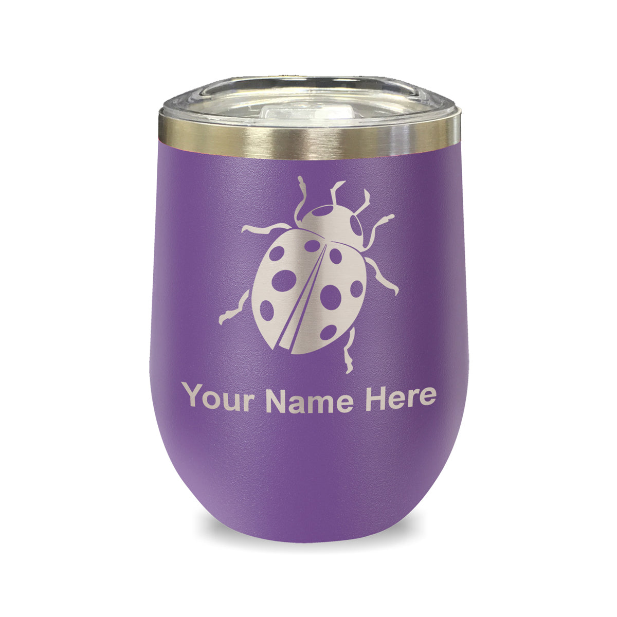 LaserGram Double Wall Stainless Steel Wine Glass, Ladybug, Personalized Engraving Included