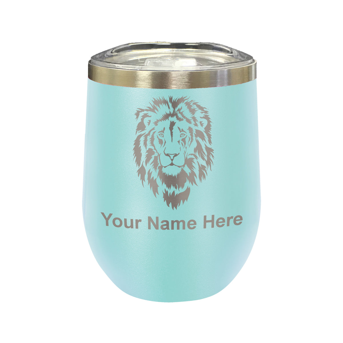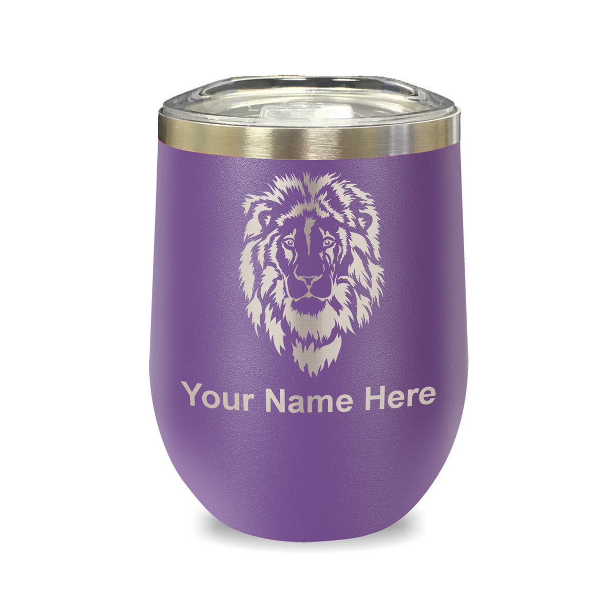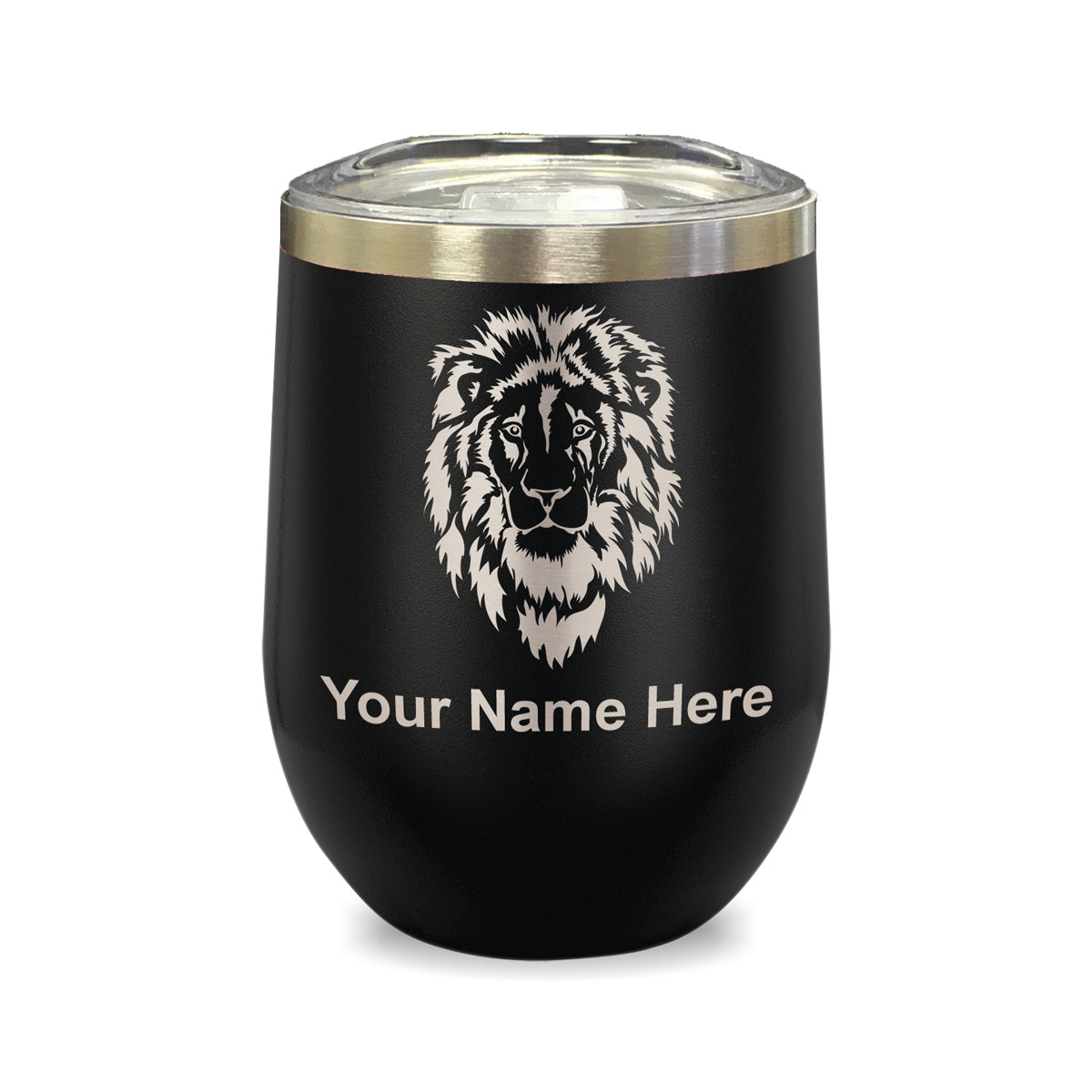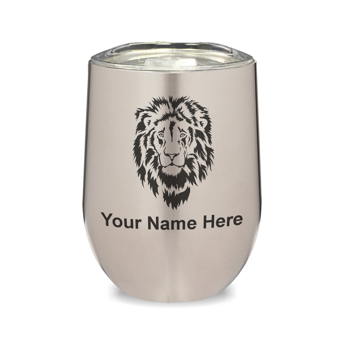 LaserGram Double Wall Stainless Steel Wine Glass, Lion Head, Personalized Engraving Included