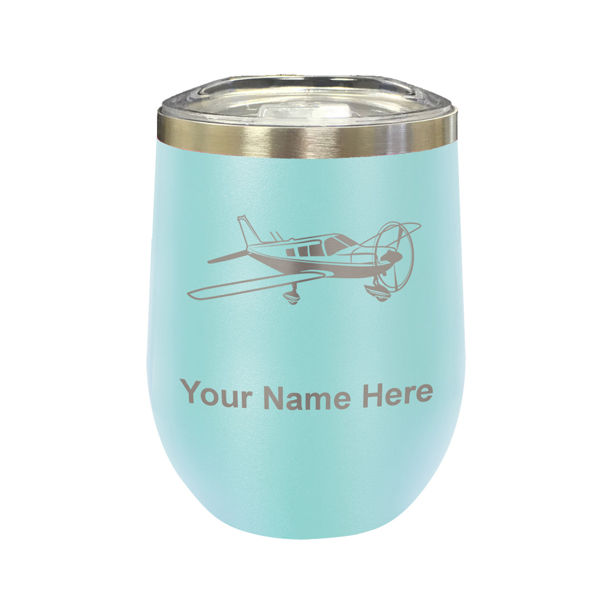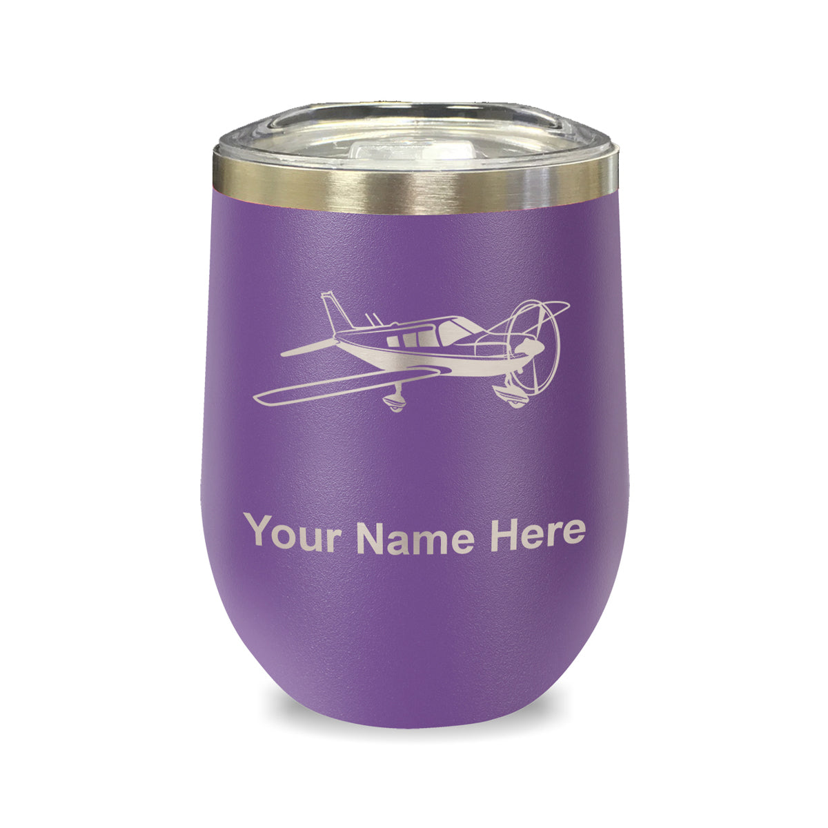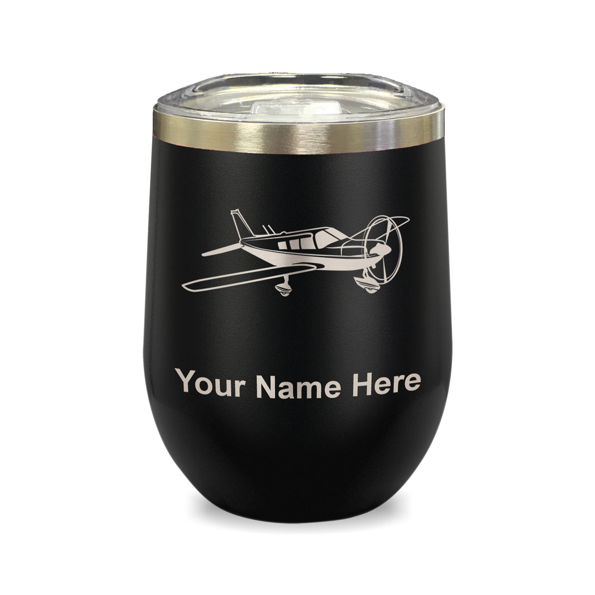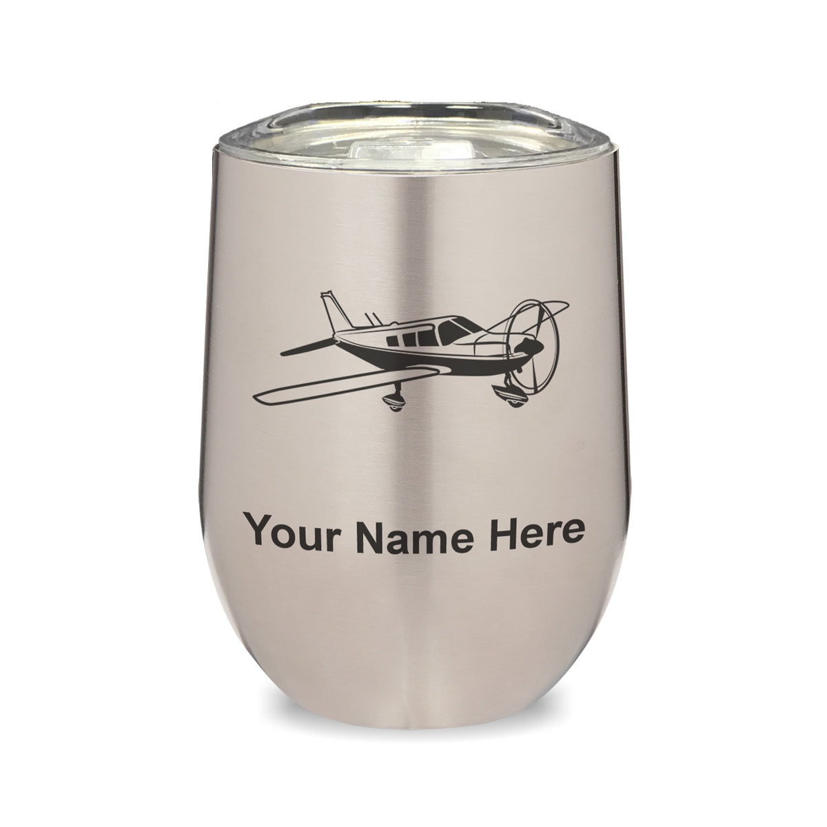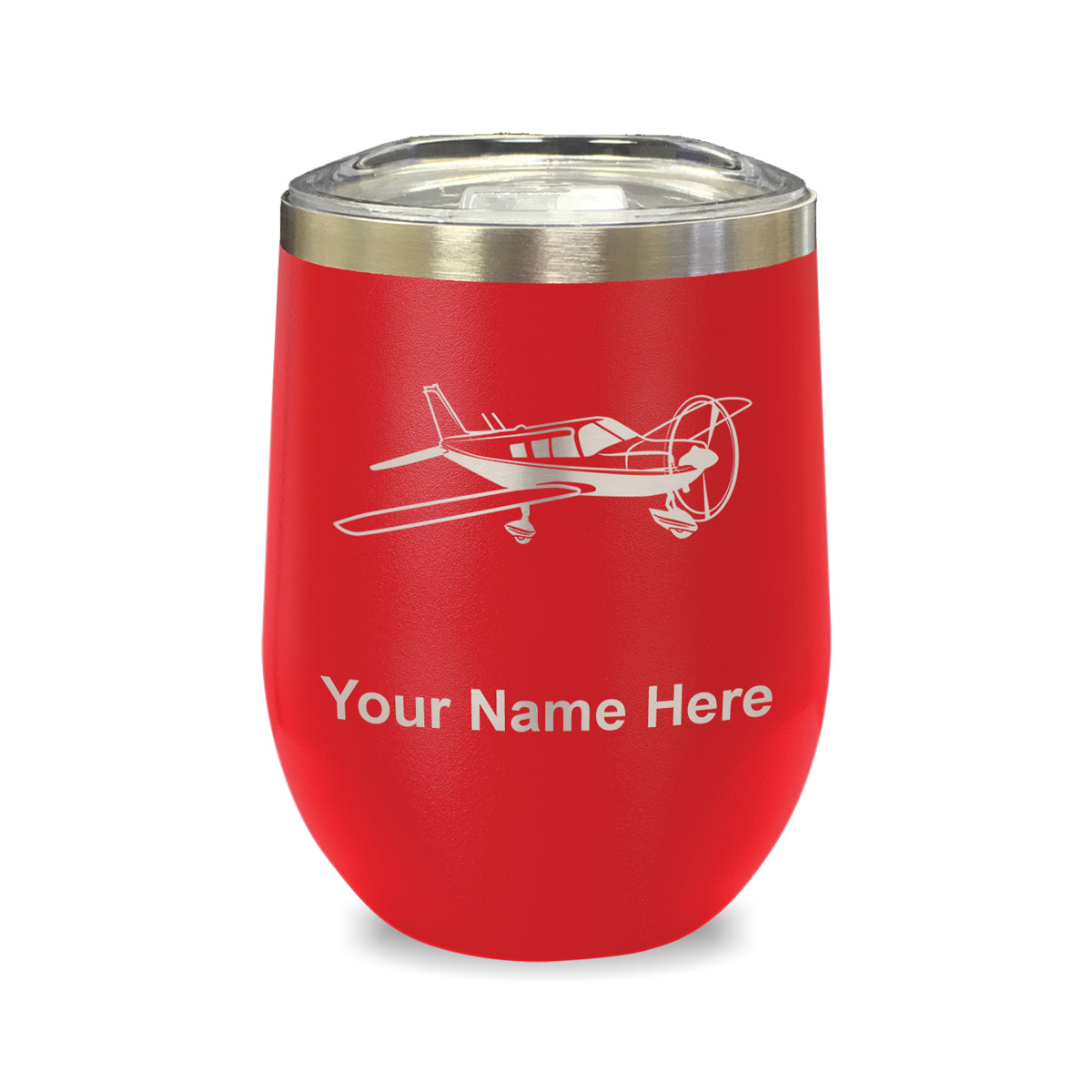 LaserGram Double Wall Stainless Steel Wine Glass, Low Wing Airplane, Personalized Engraving Included
