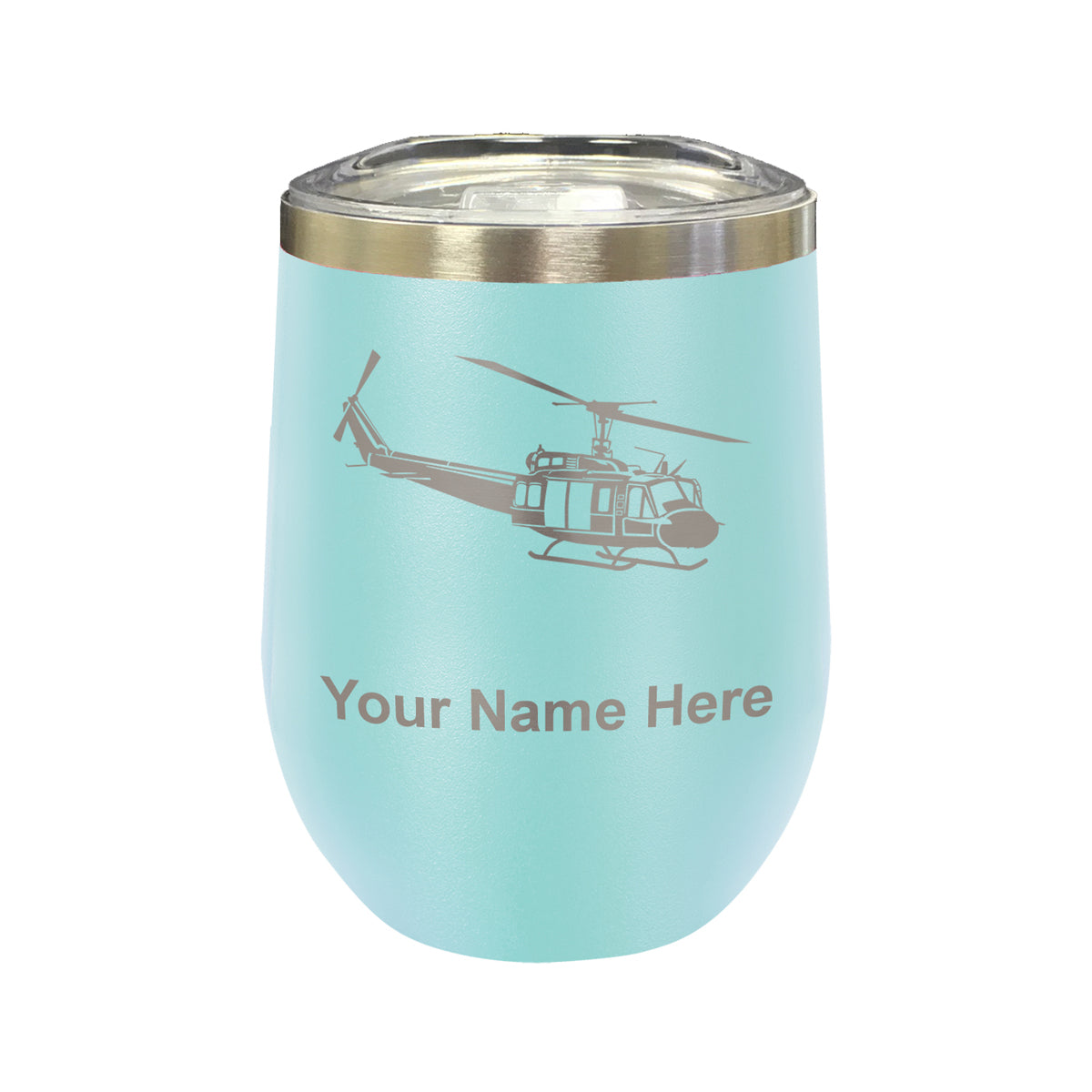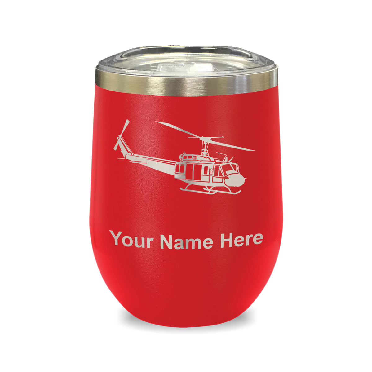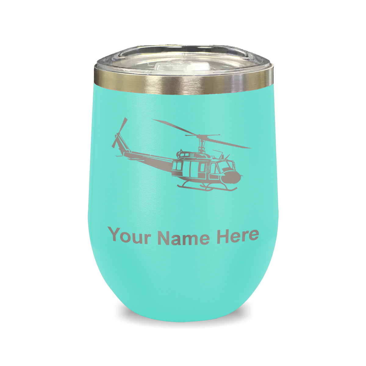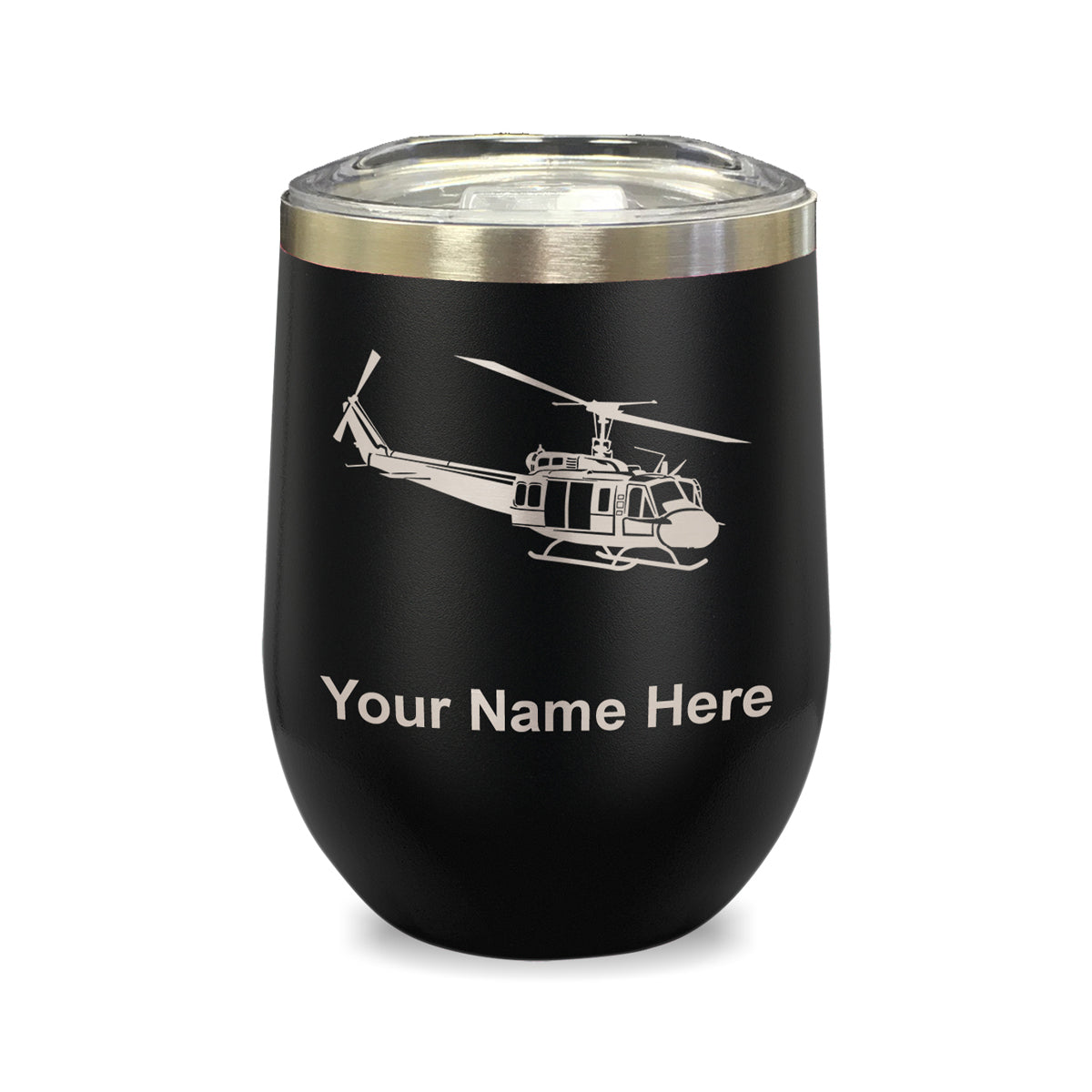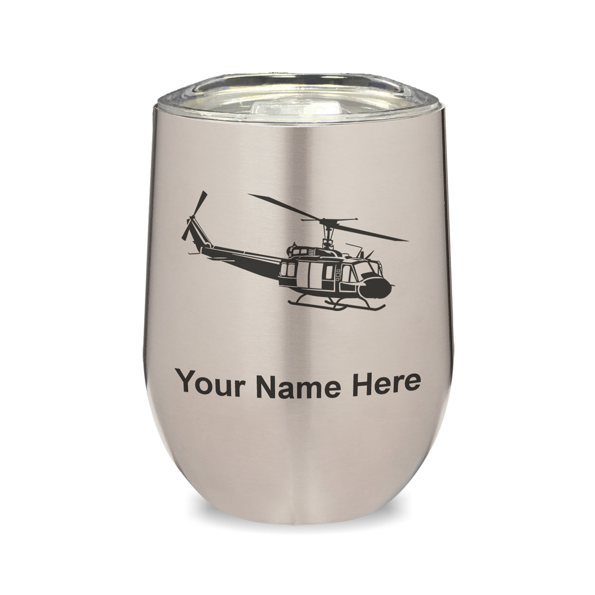 LaserGram Double Wall Stainless Steel Wine Glass, Military Helicopter 2, Personalized Engraving Included