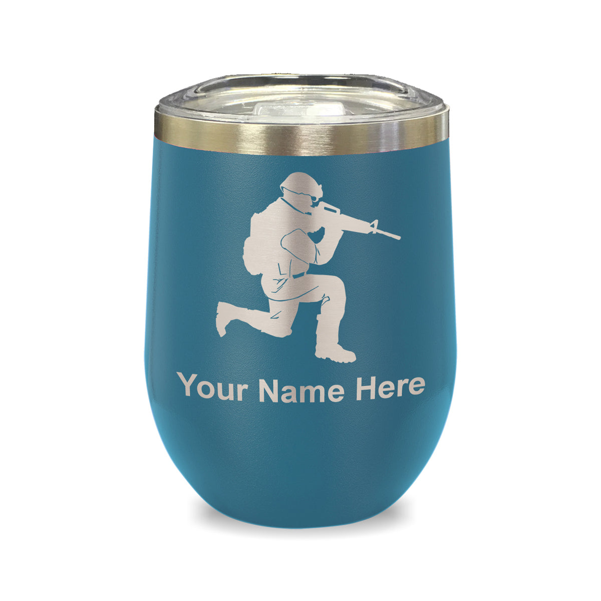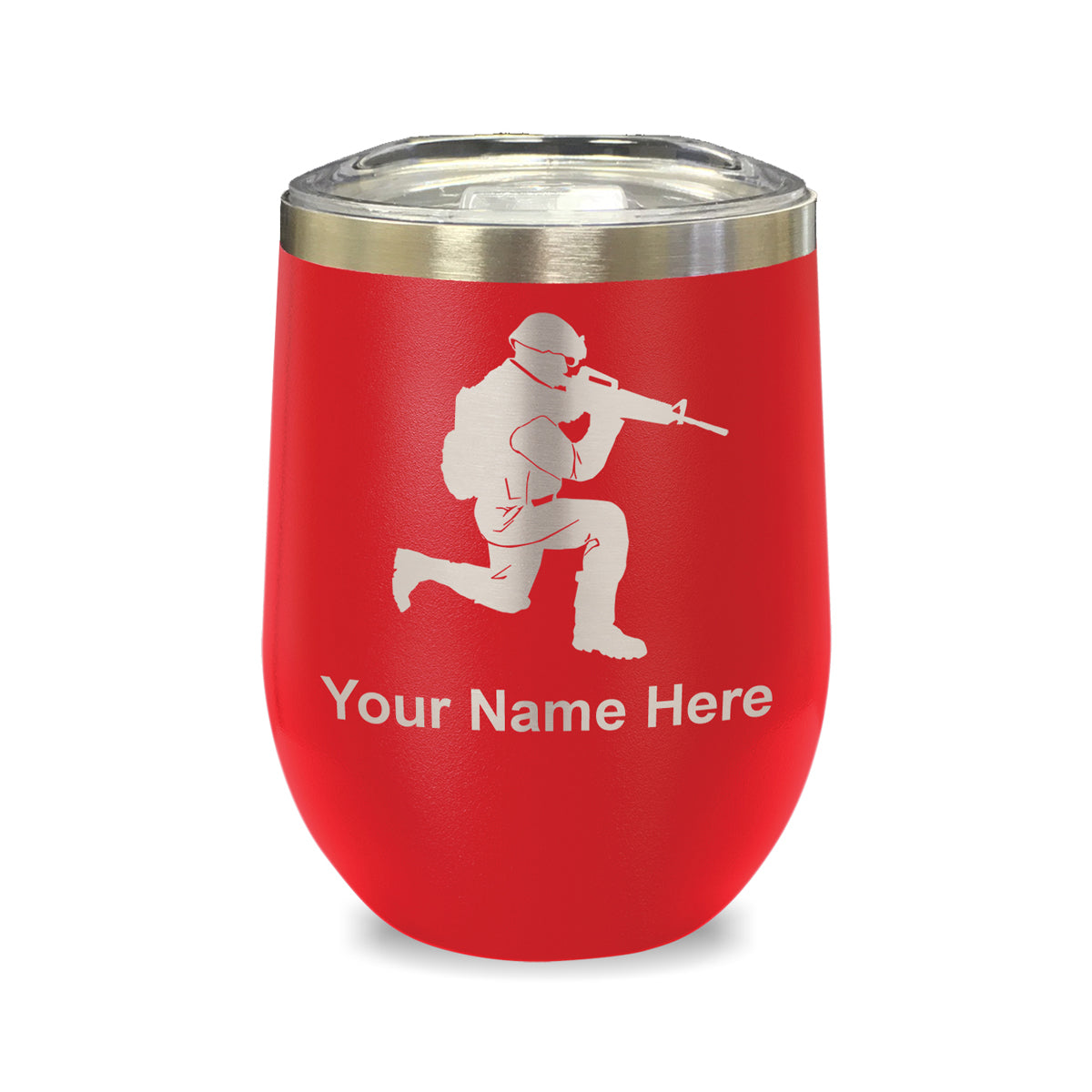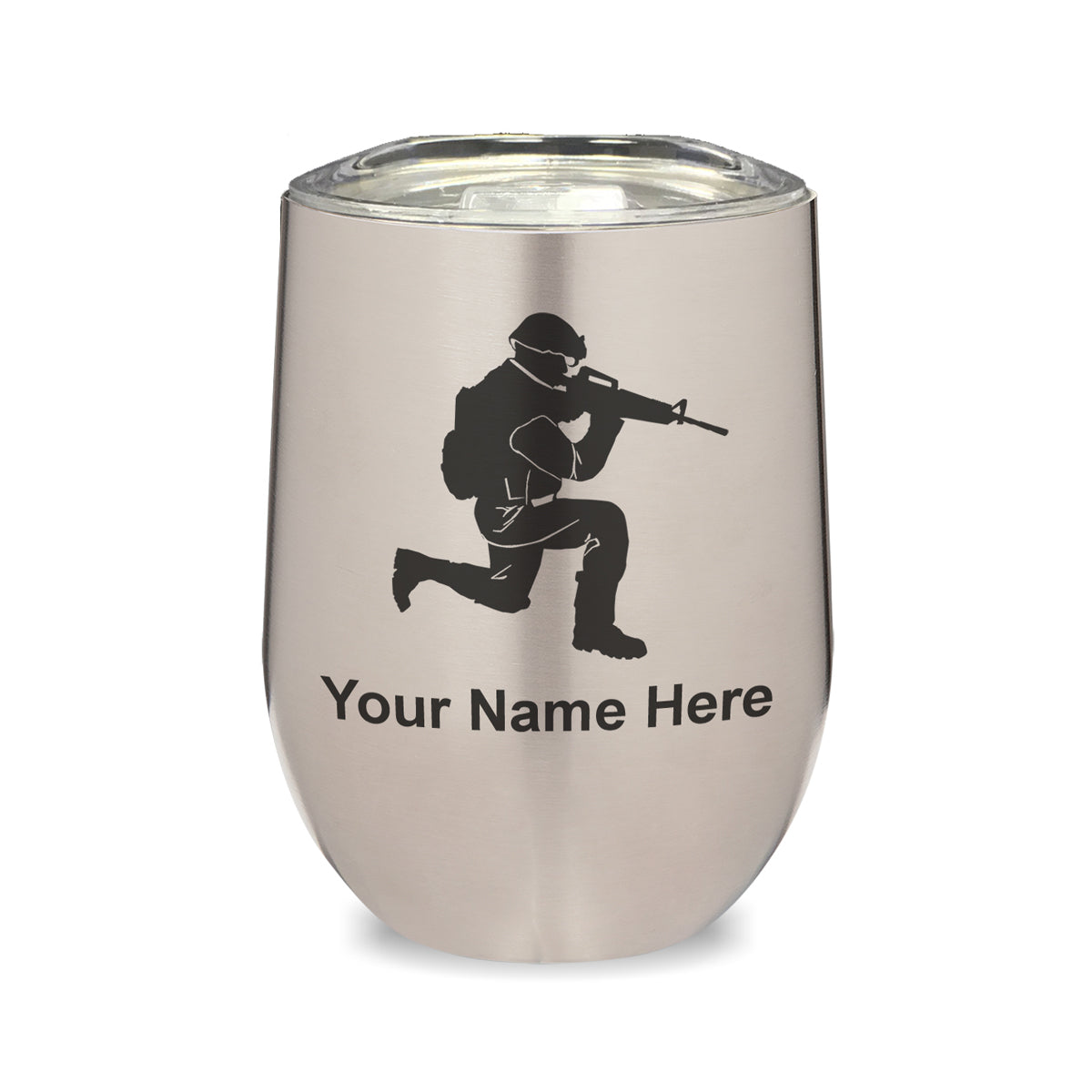 LaserGram Double Wall Stainless Steel Wine Glass, Military Soldier, Personalized Engraving Included