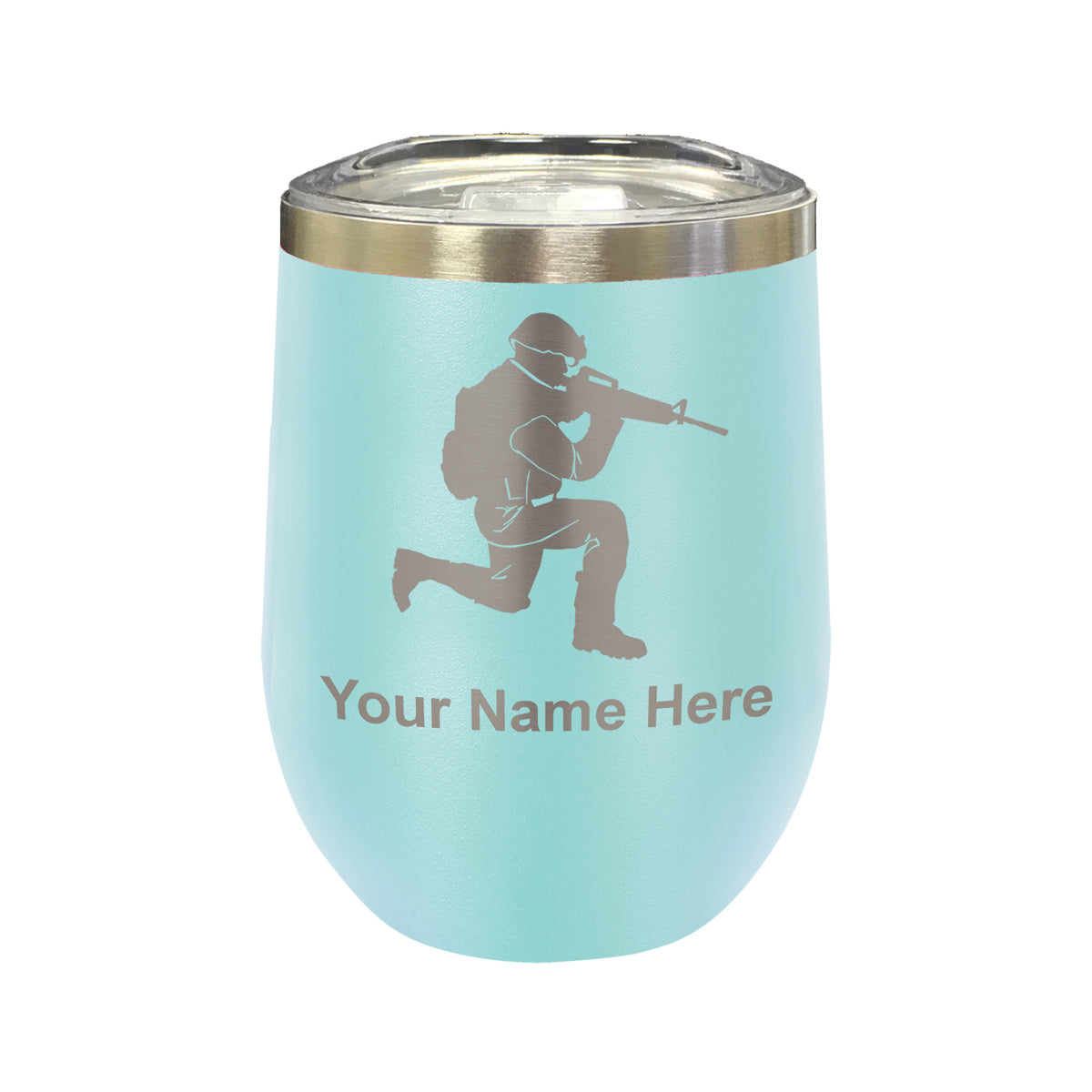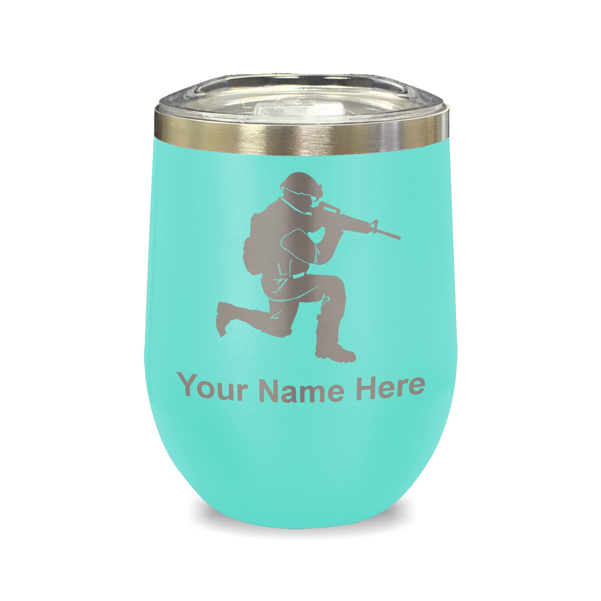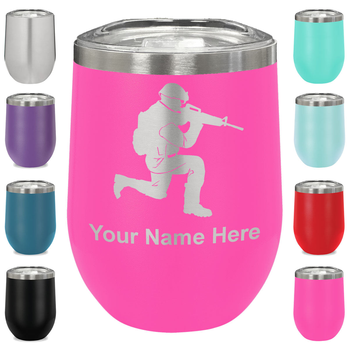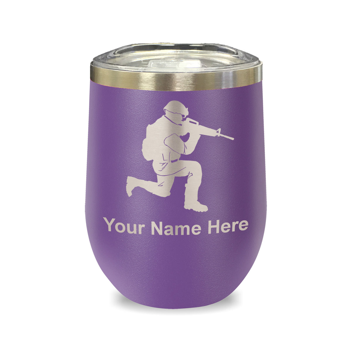 LaserGram Double Wall Stainless Steel Wine Glass, Military Soldier, Personalized Engraving Included