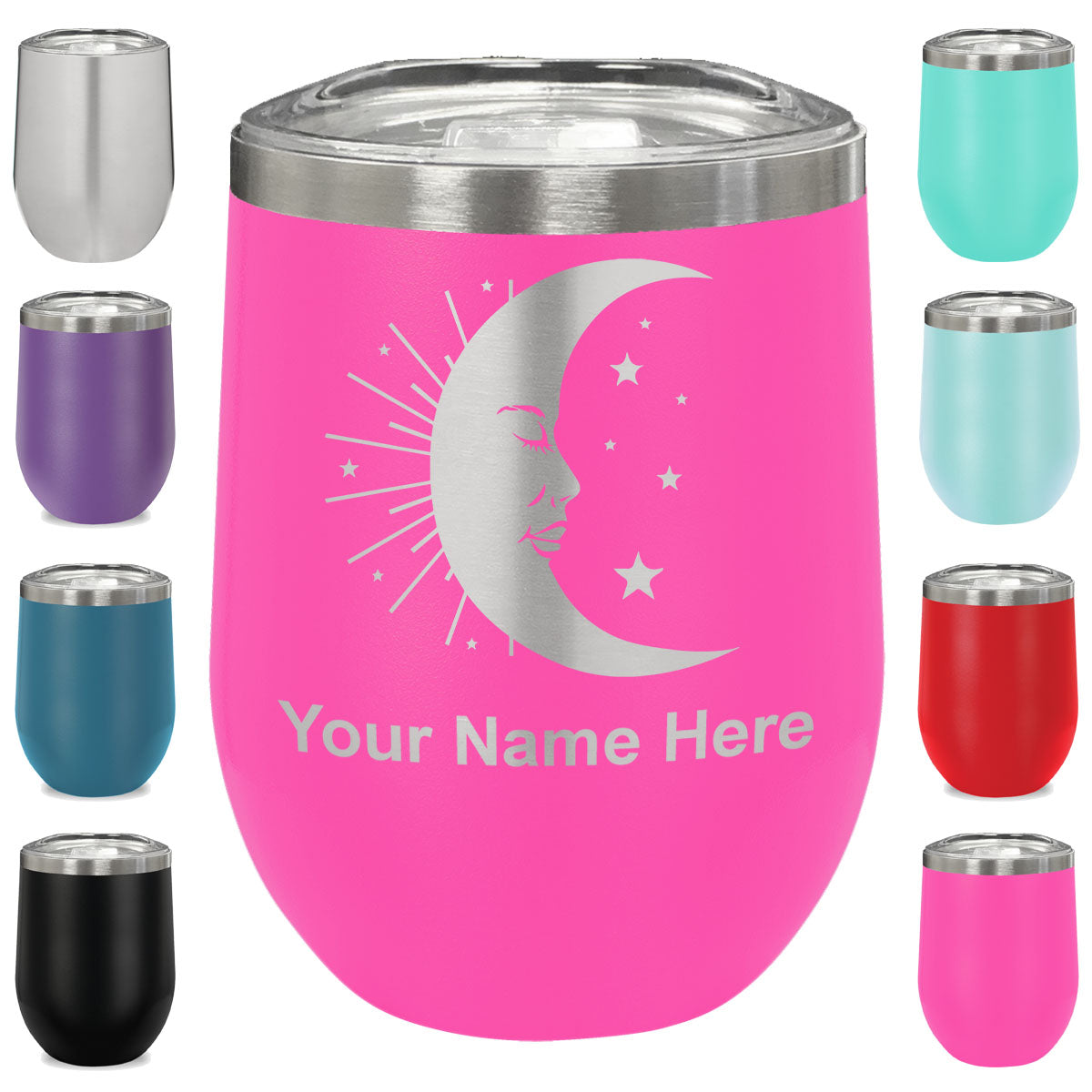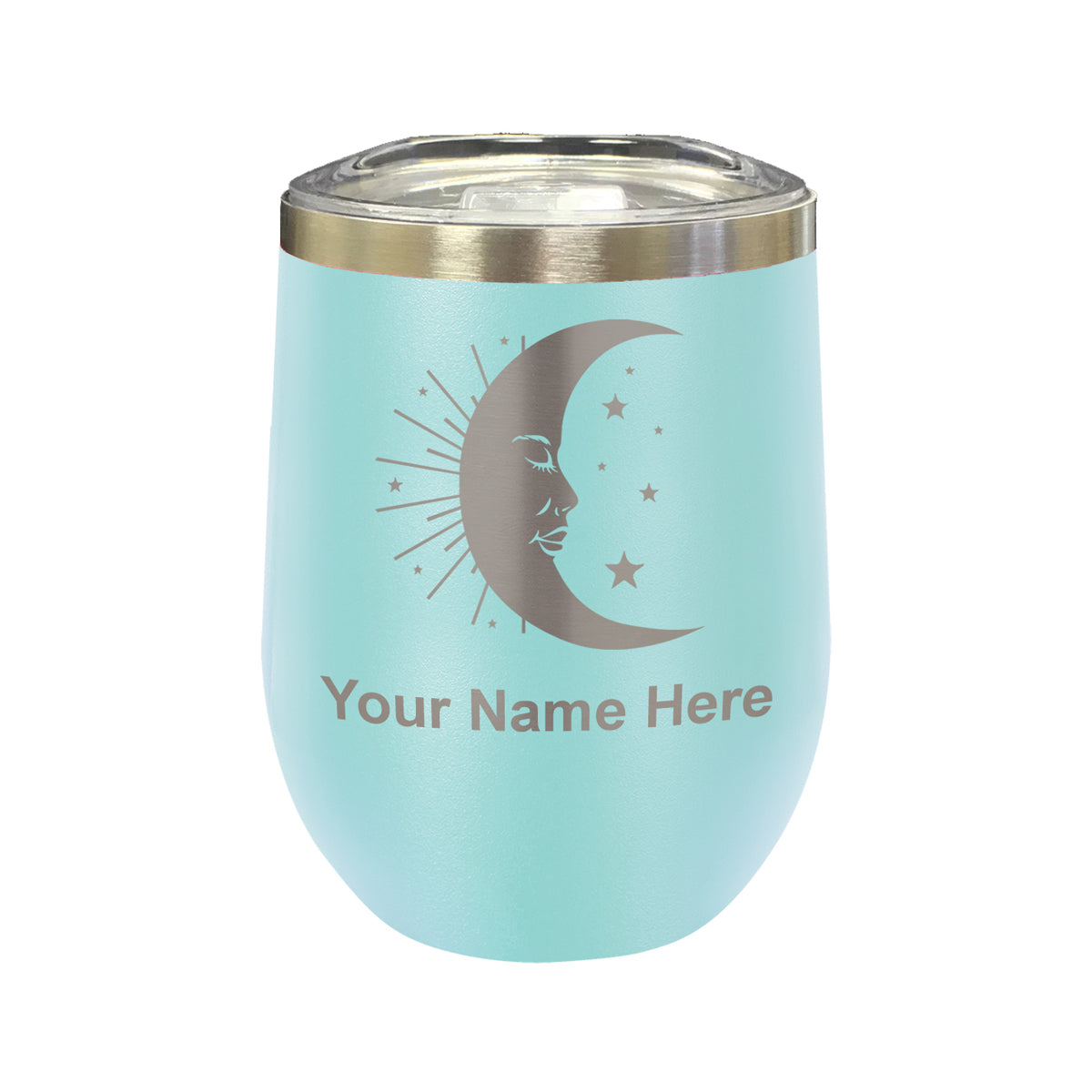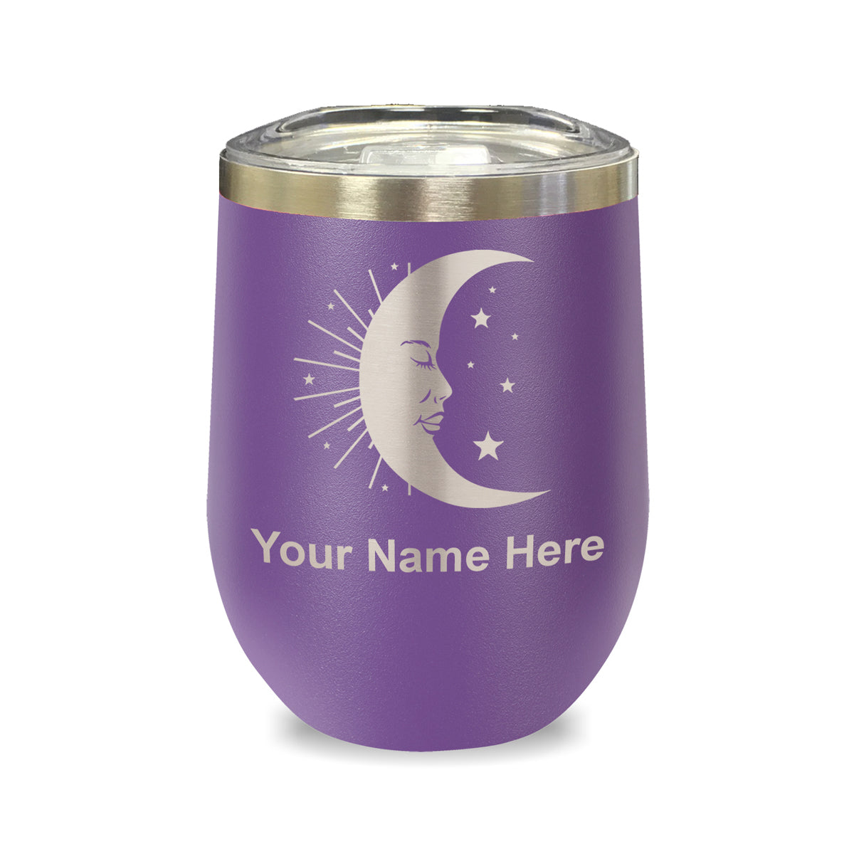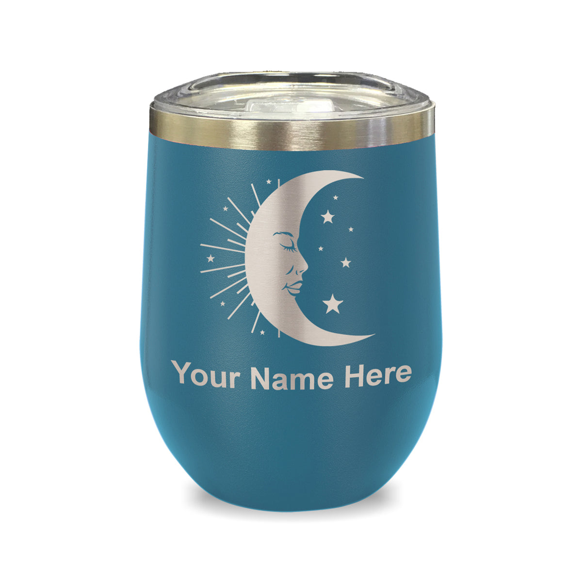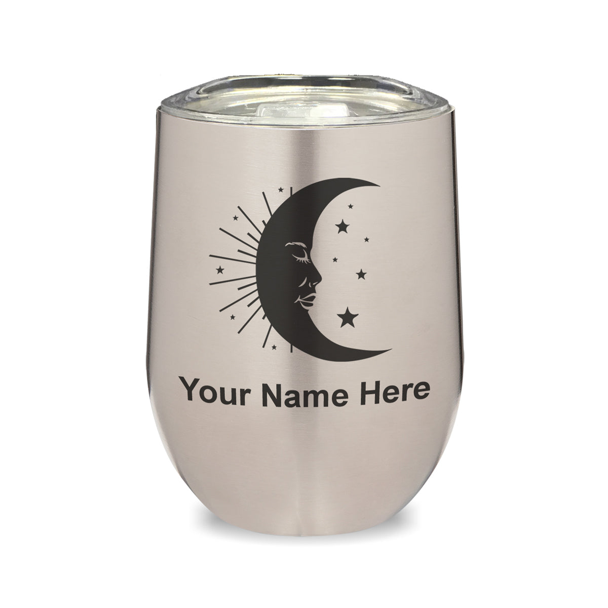LaserGram Double Wall Stainless Steel Wine Glass, Moon, Personalized Engraving Included