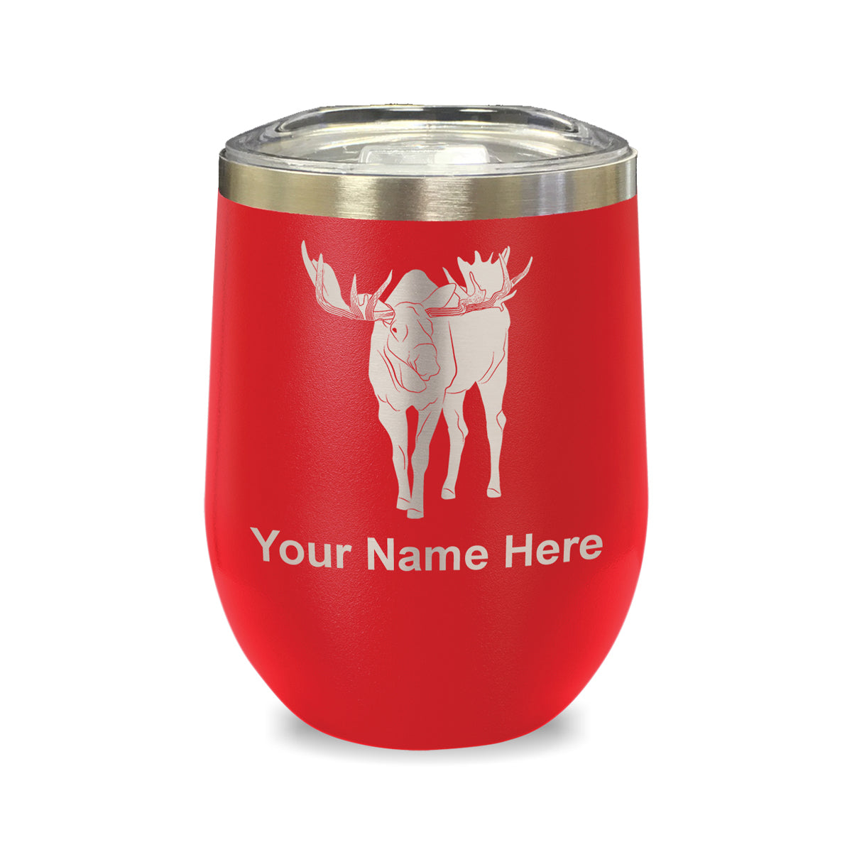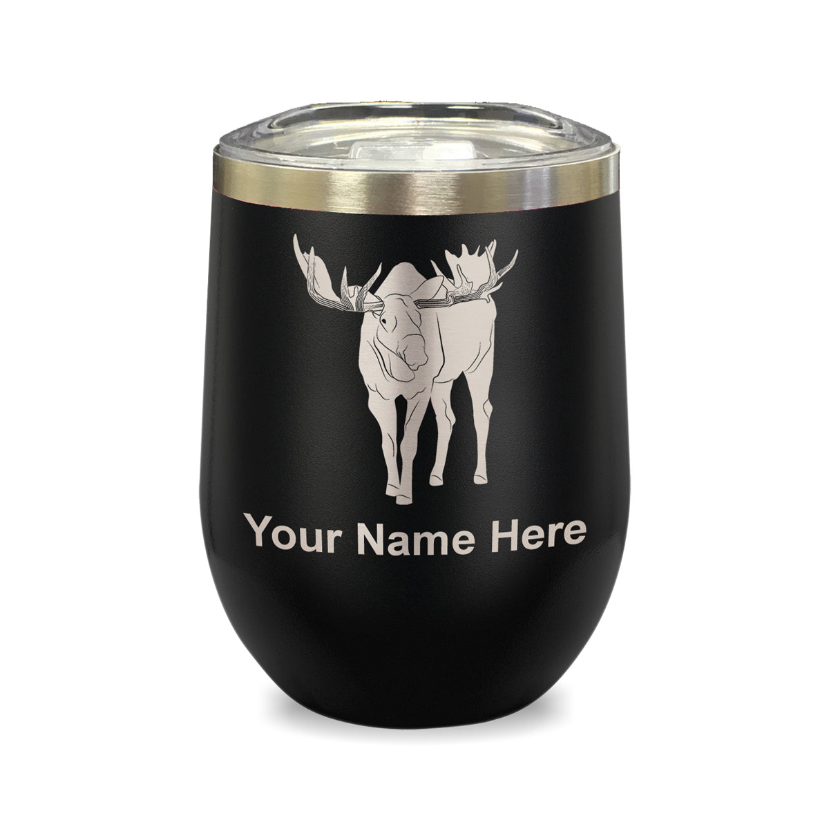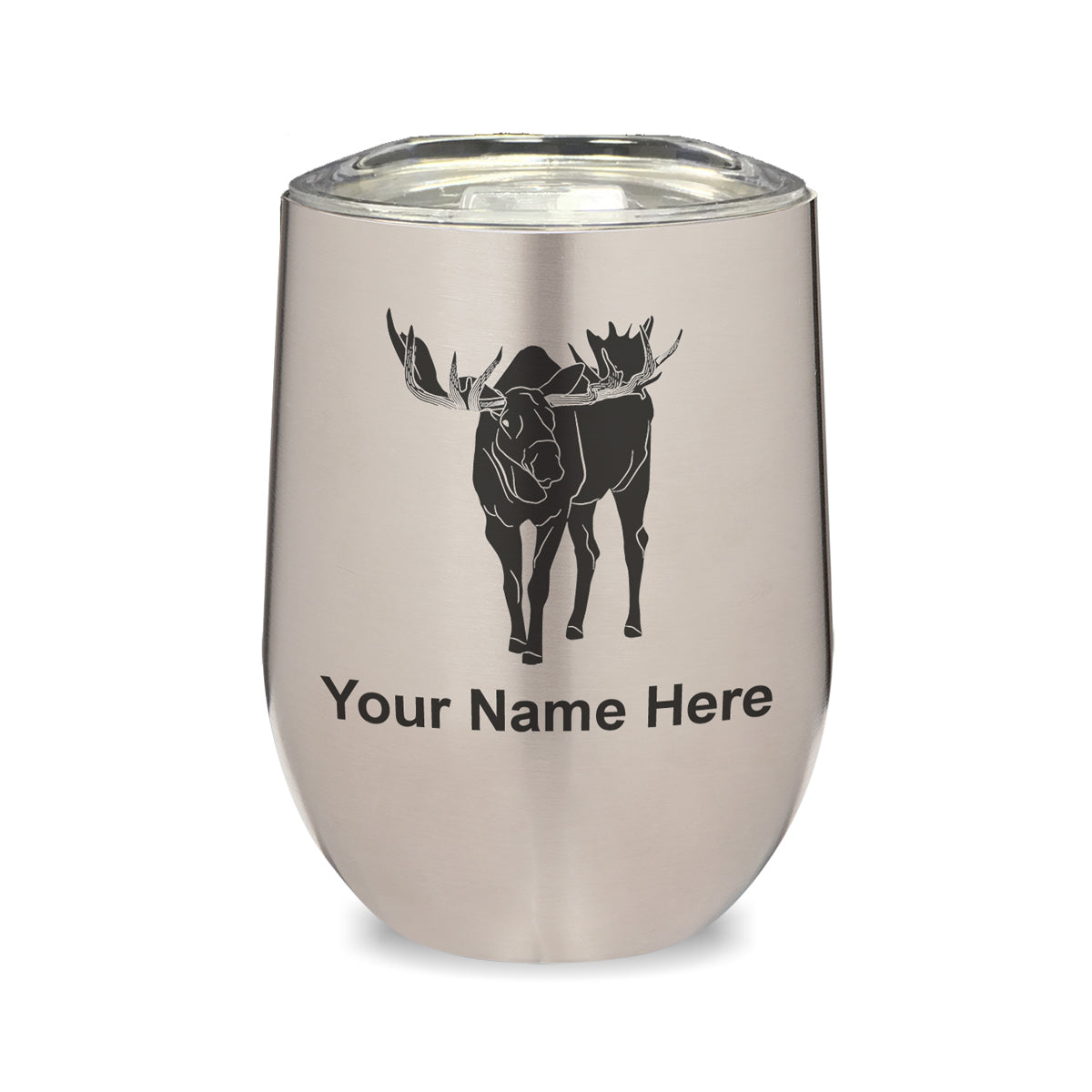 LaserGram Double Wall Stainless Steel Wine Glass, Moose, Personalized Engraving Included