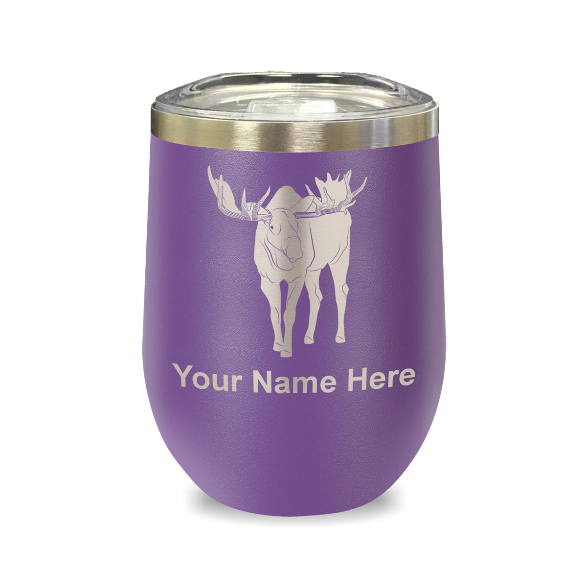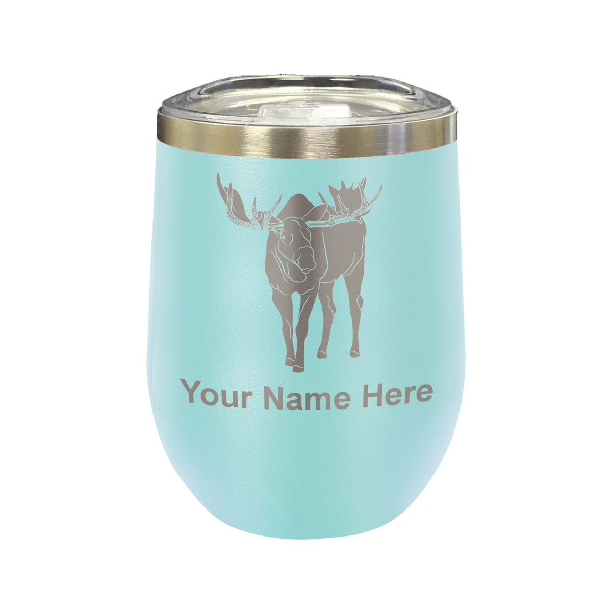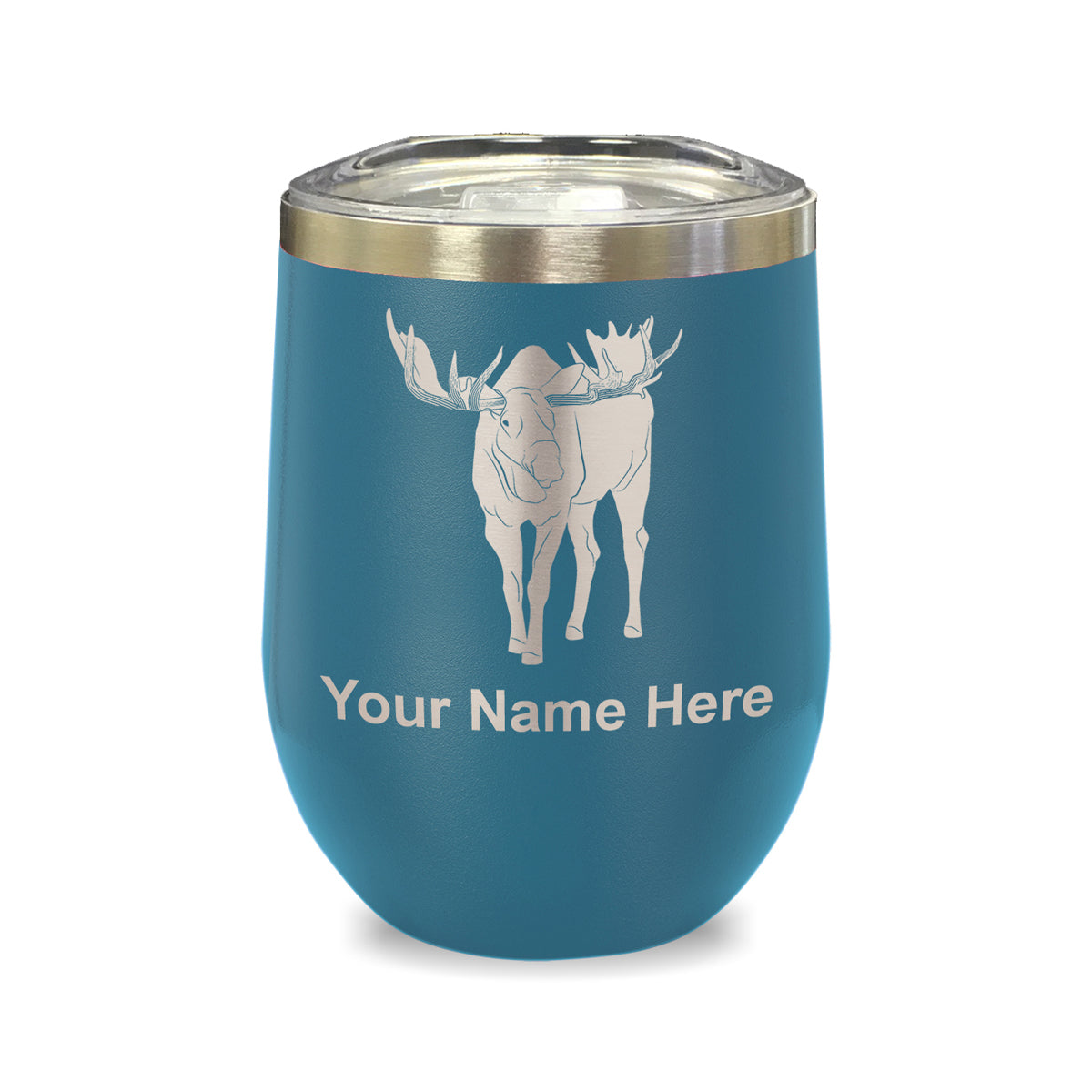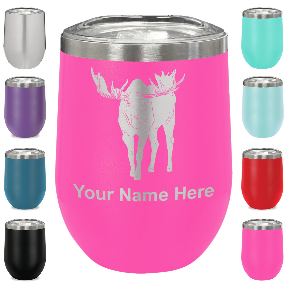 LaserGram Double Wall Stainless Steel Wine Glass, Moose, Personalized Engraving Included