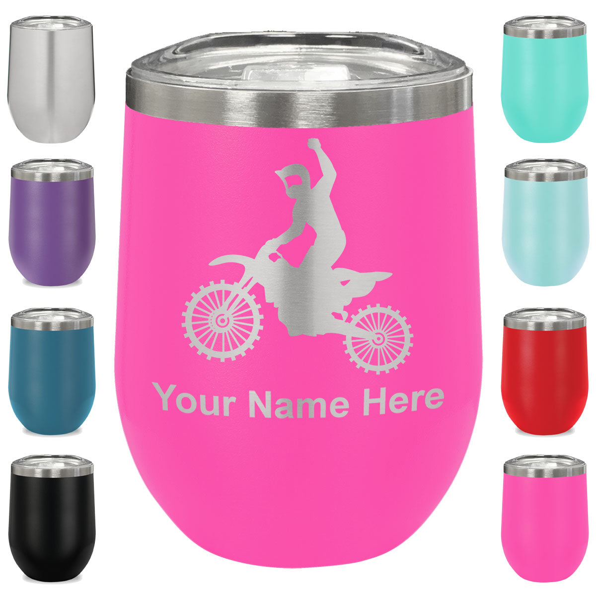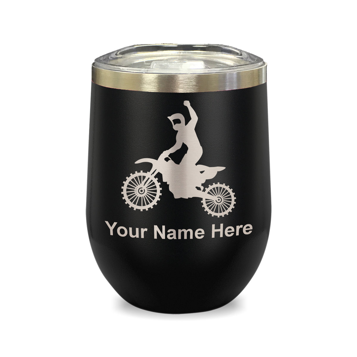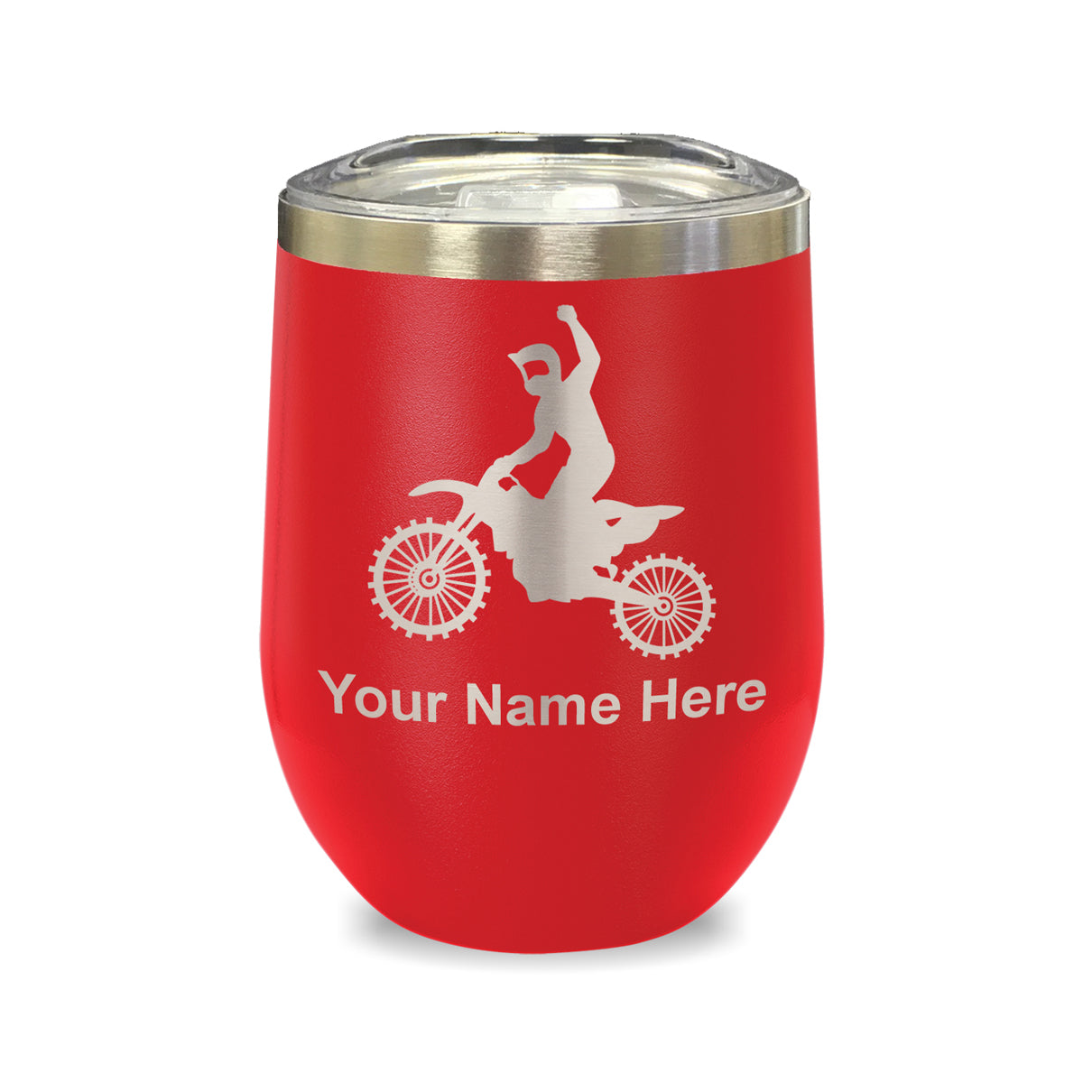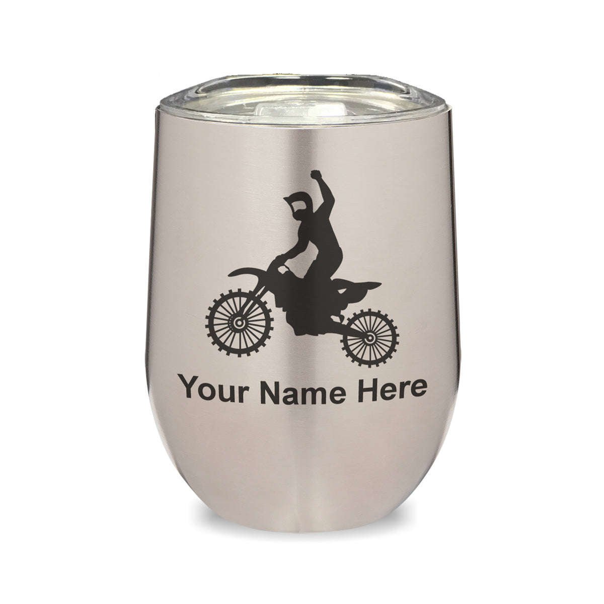 LaserGram Double Wall Stainless Steel Wine Glass, Motocross, Personalized Engraving Included