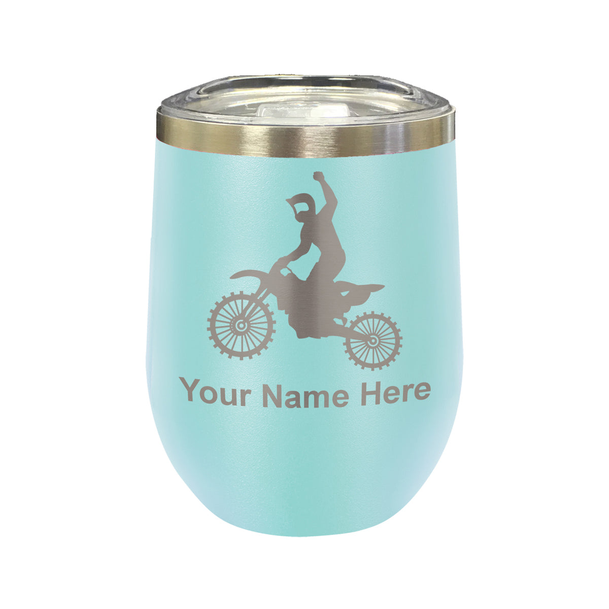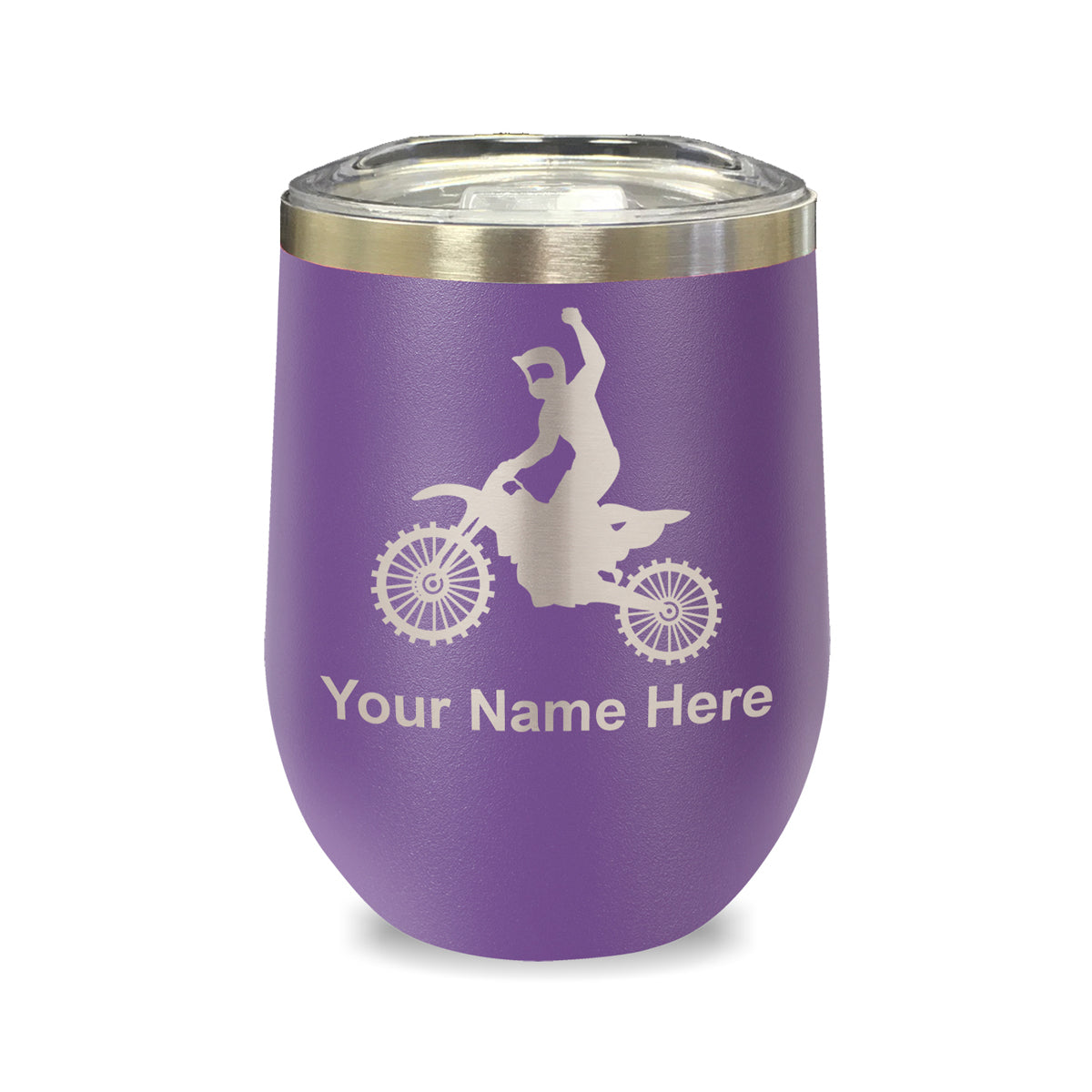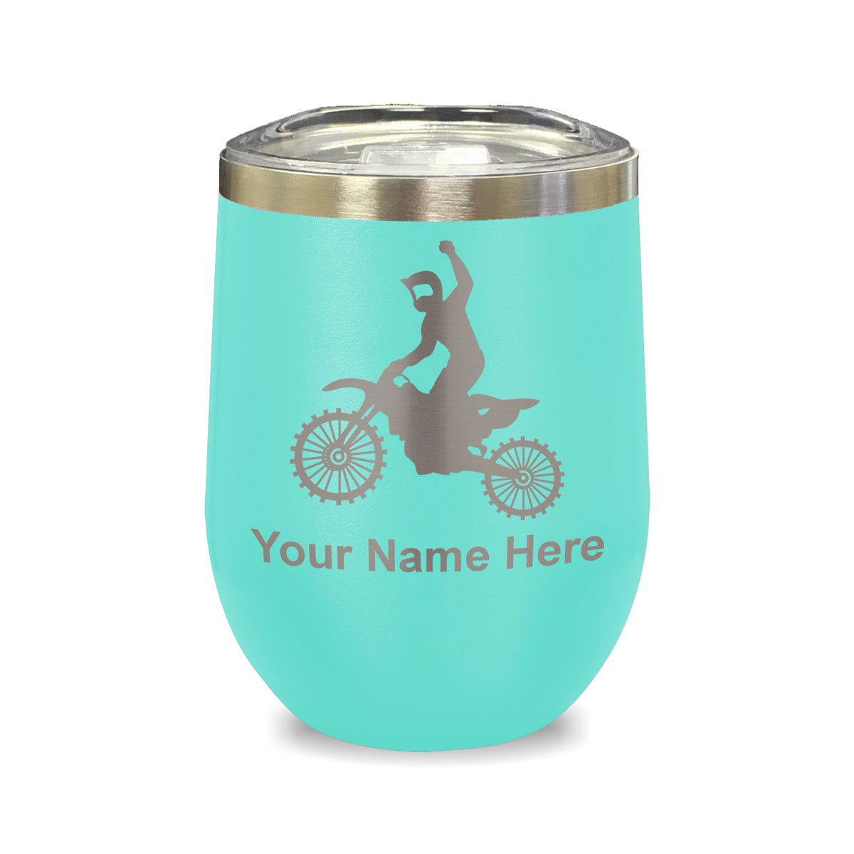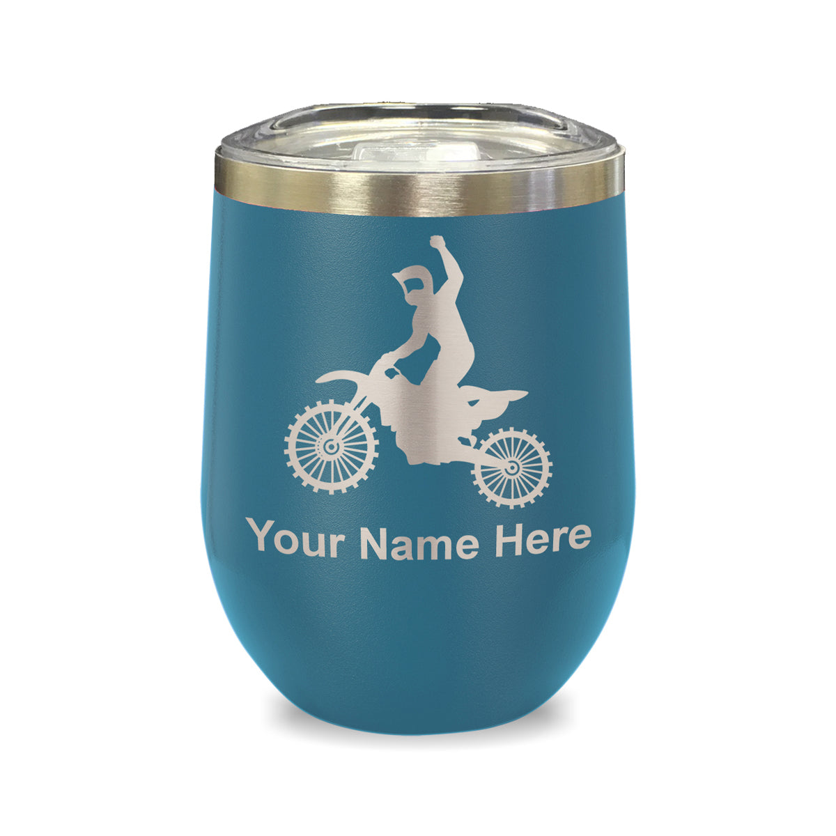 LaserGram Double Wall Stainless Steel Wine Glass, Motocross, Personalized Engraving Included