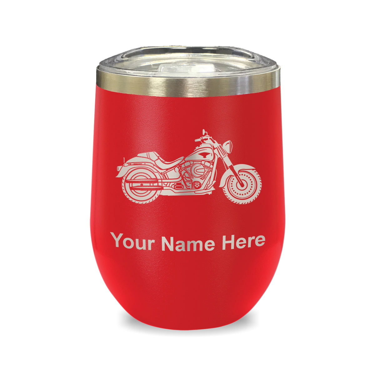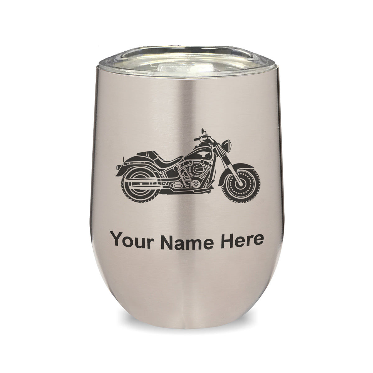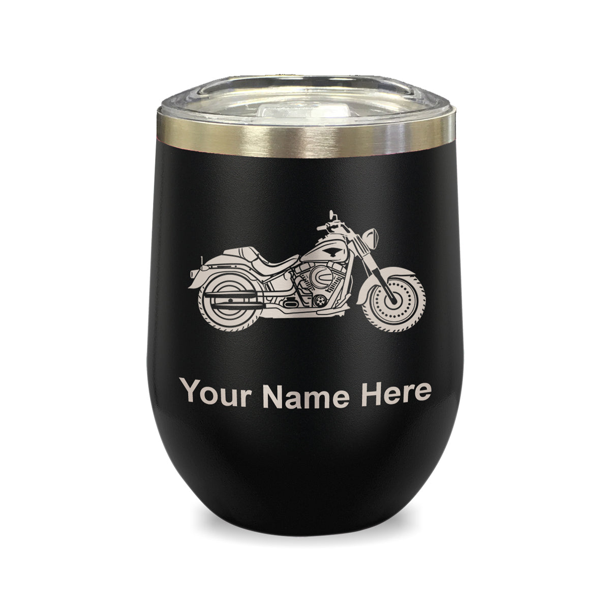 LaserGram Double Wall Stainless Steel Wine Glass, Motorcycle, Personalized Engraving Included