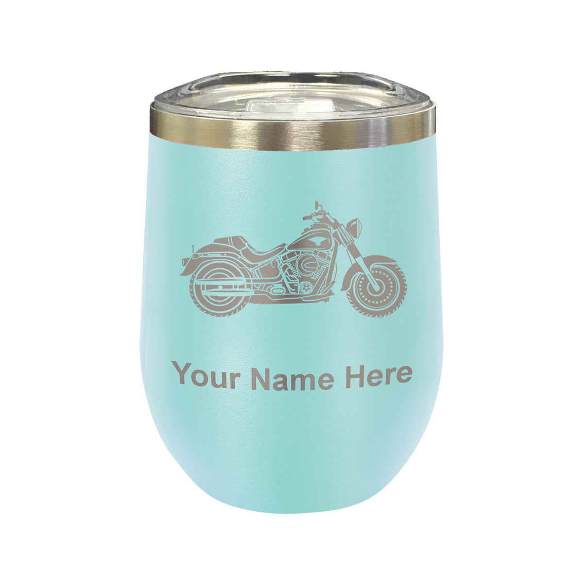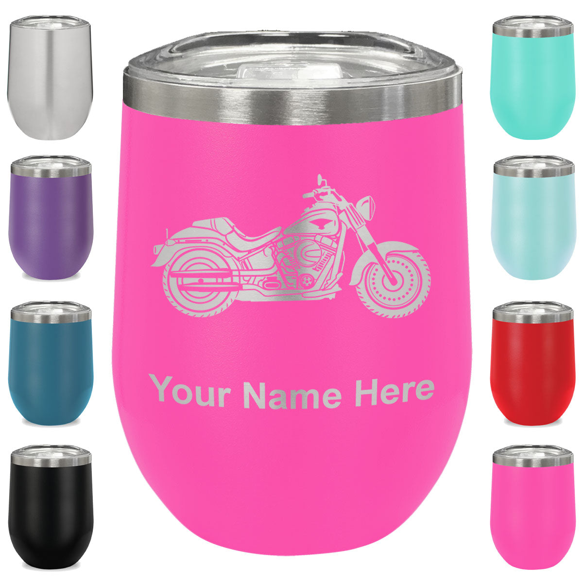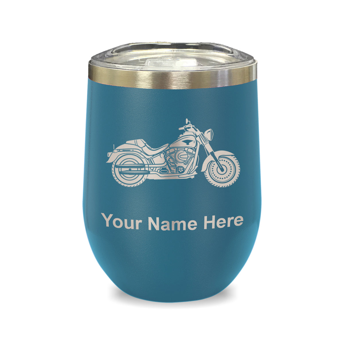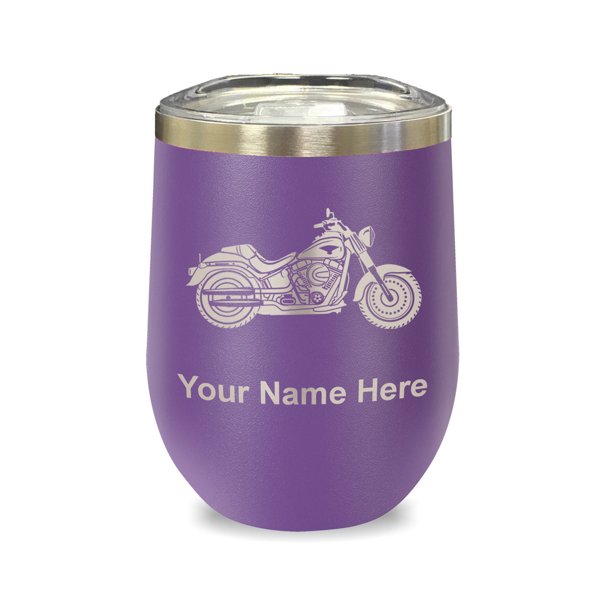 LaserGram Double Wall Stainless Steel Wine Glass, Motorcycle, Personalized Engraving Included