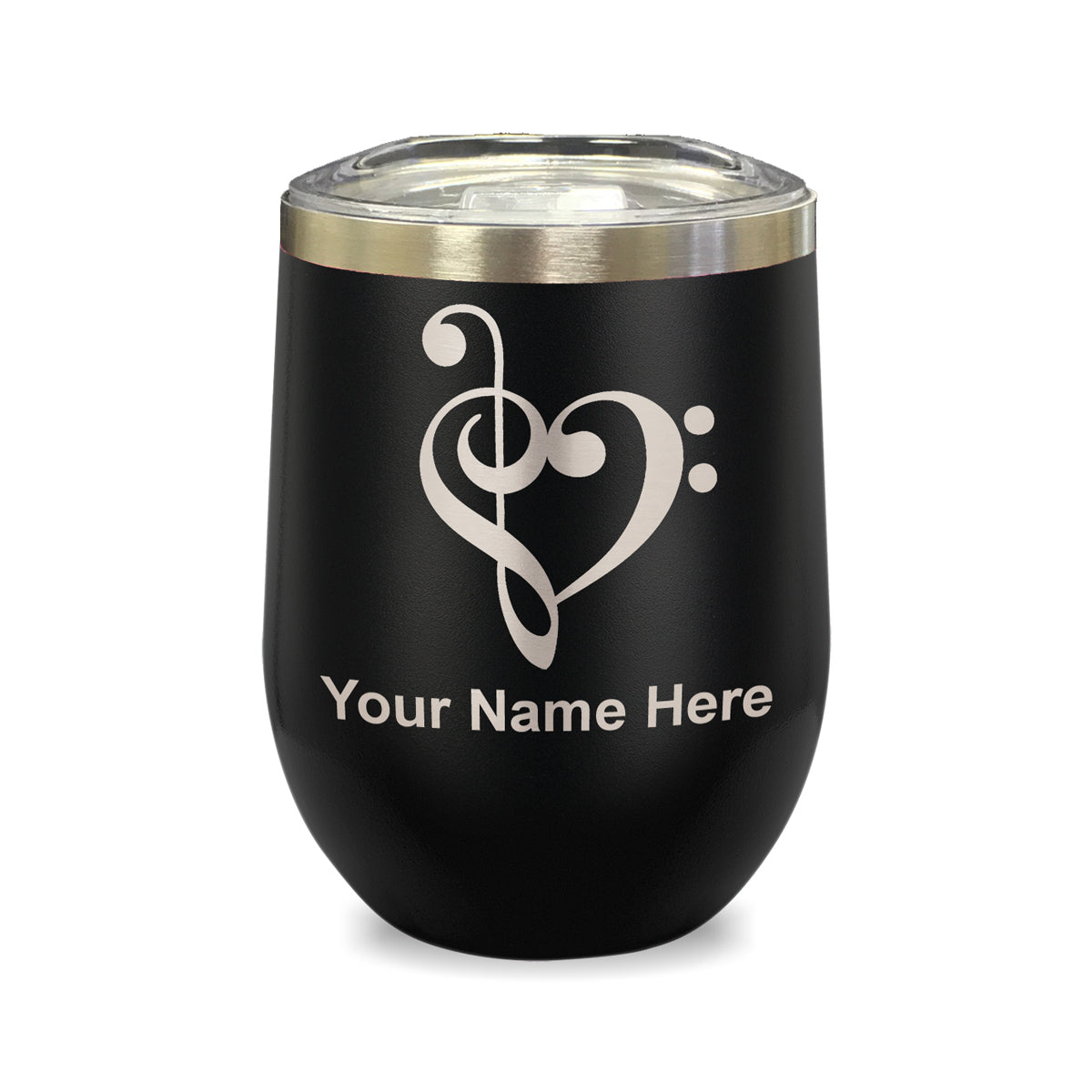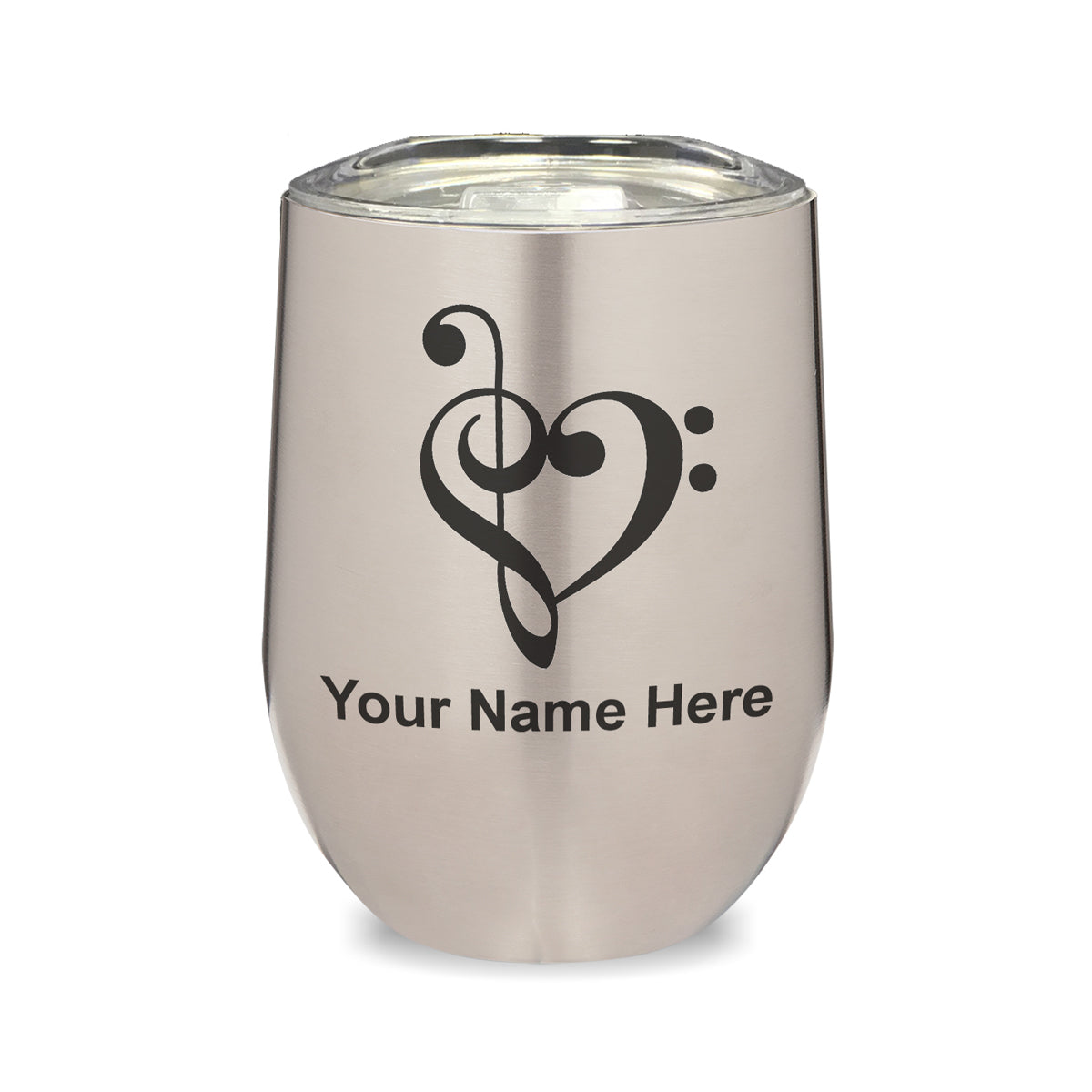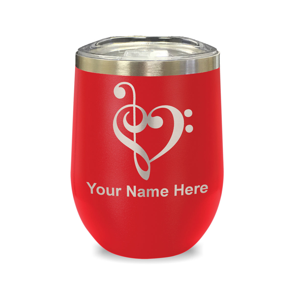 LaserGram Double Wall Stainless Steel Wine Glass, Music Heart, Personalized Engraving Included