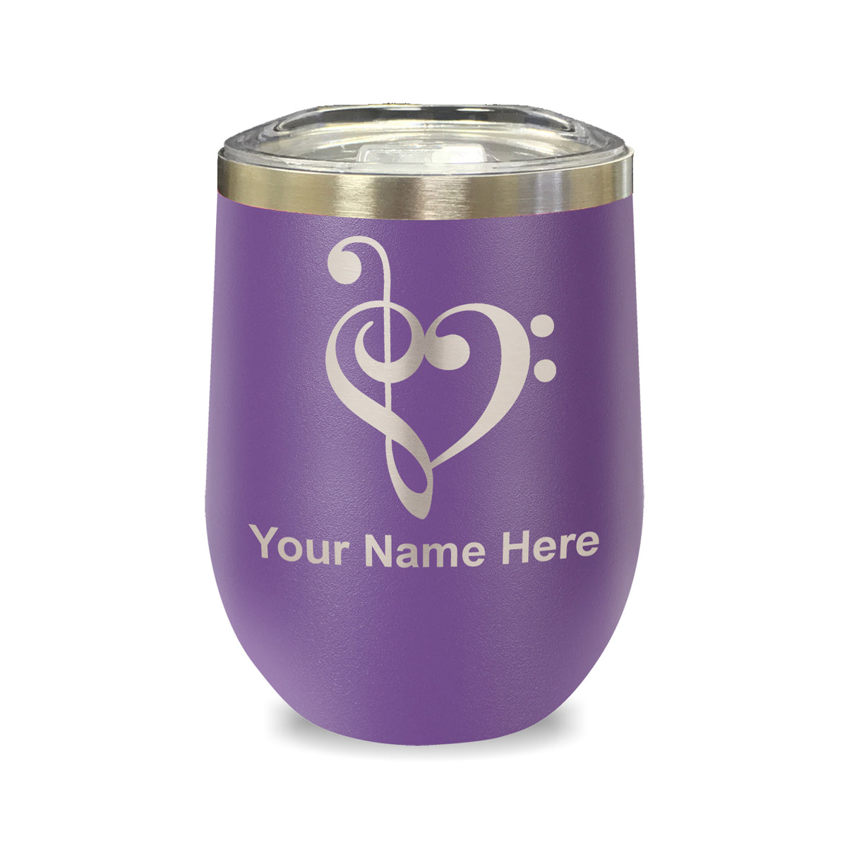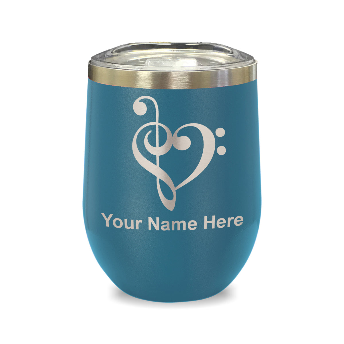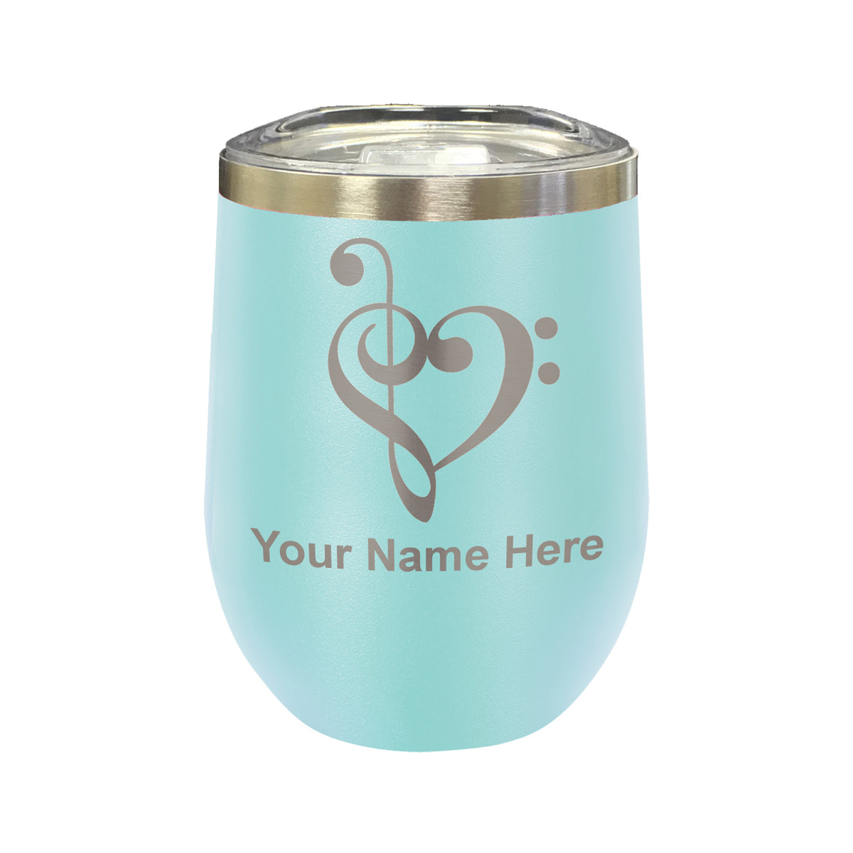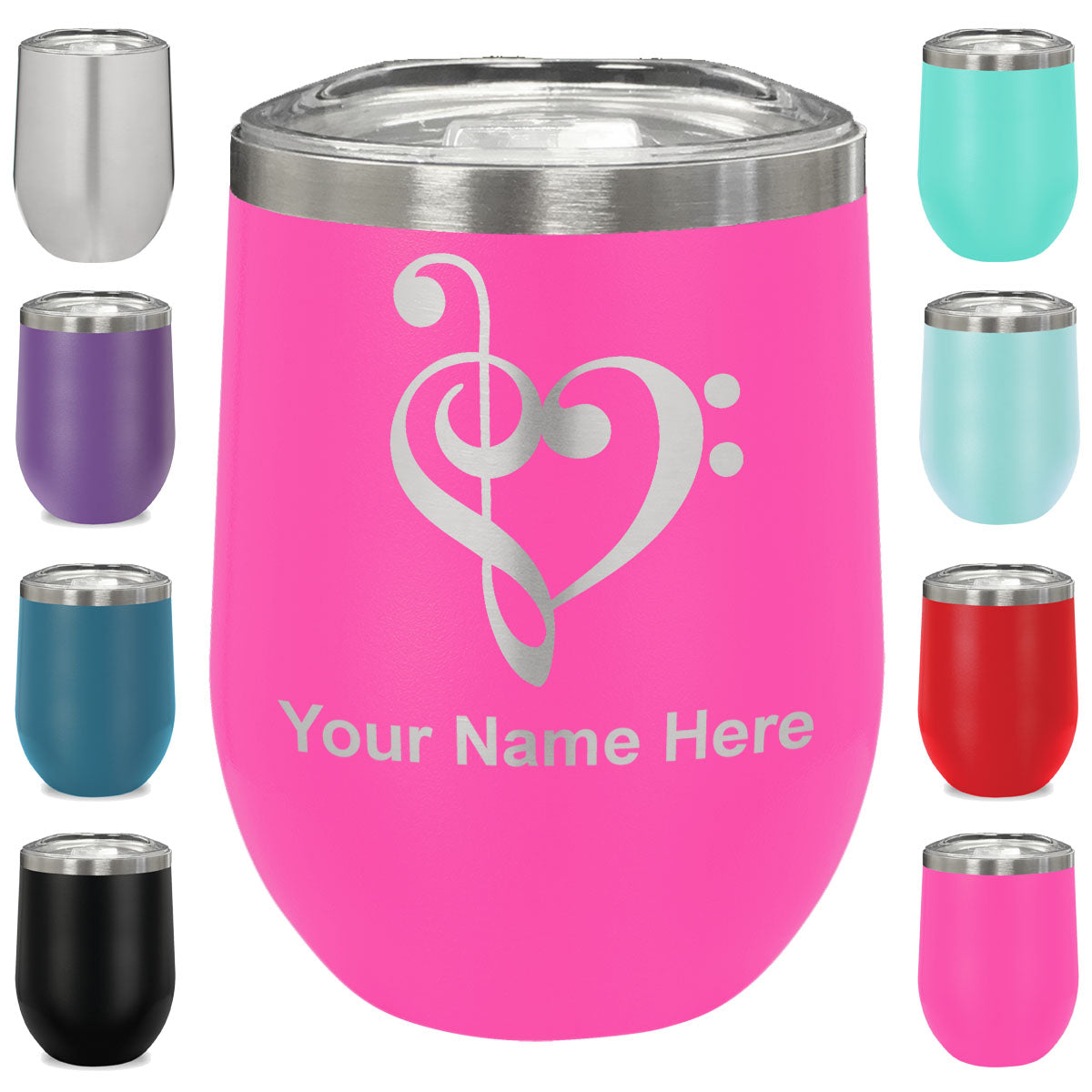 LaserGram Double Wall Stainless Steel Wine Glass, Music Heart, Personalized Engraving Included