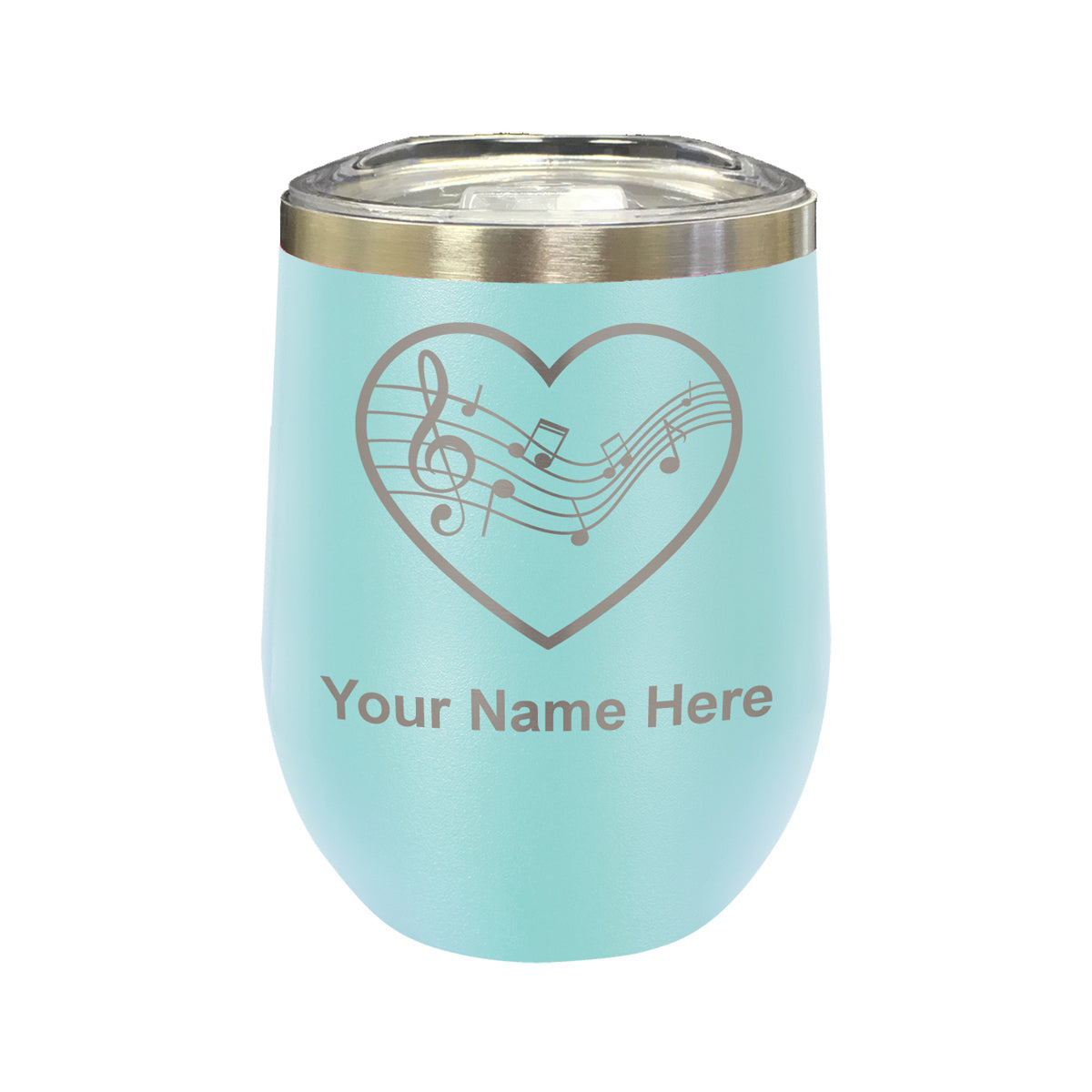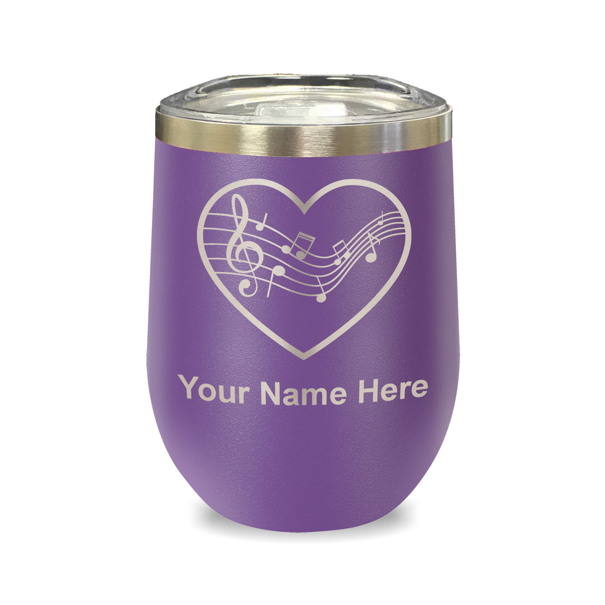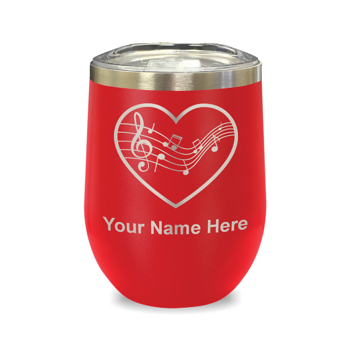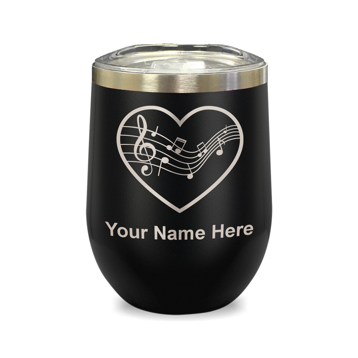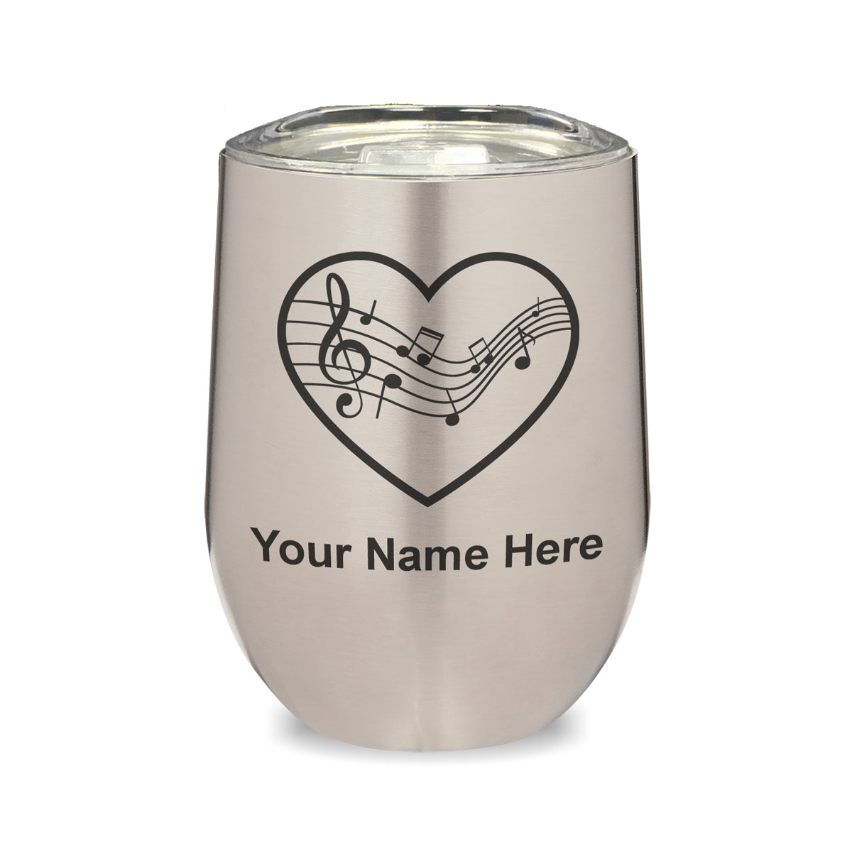 LaserGram Double Wall Stainless Steel Wine Glass, Music Staff Heart, Personalized Engraving Included