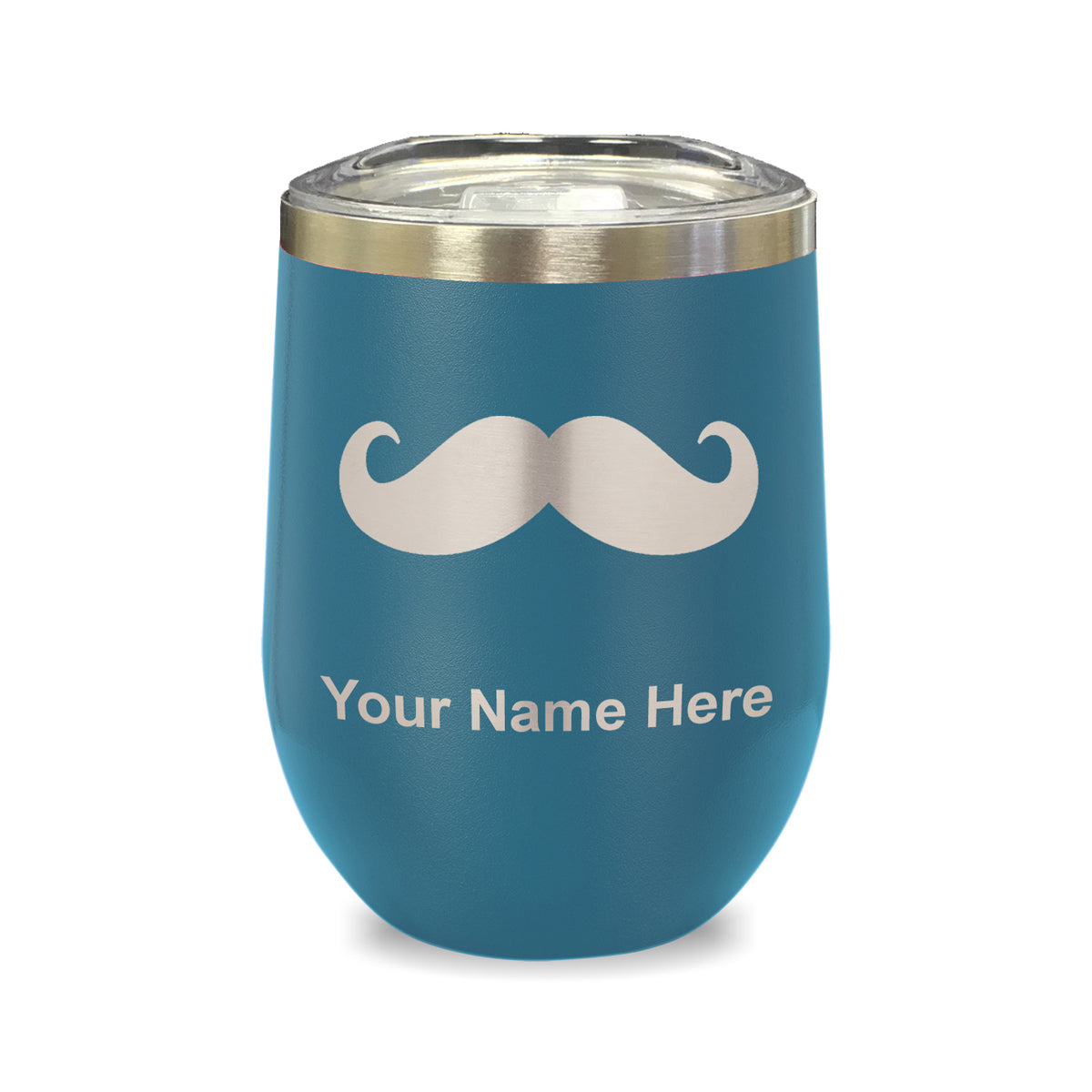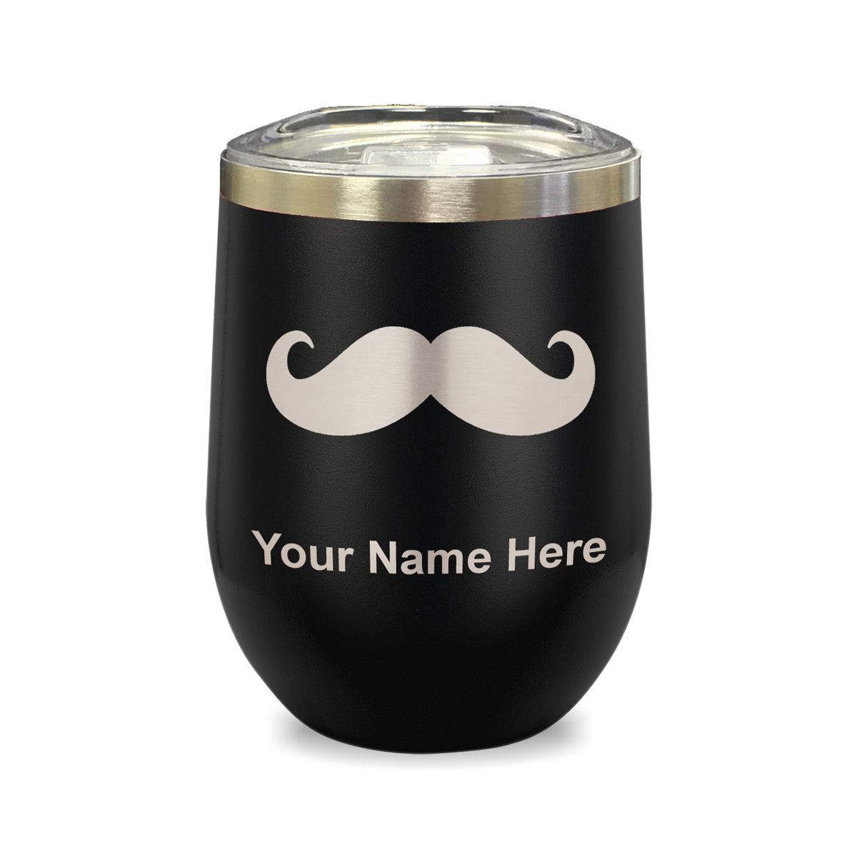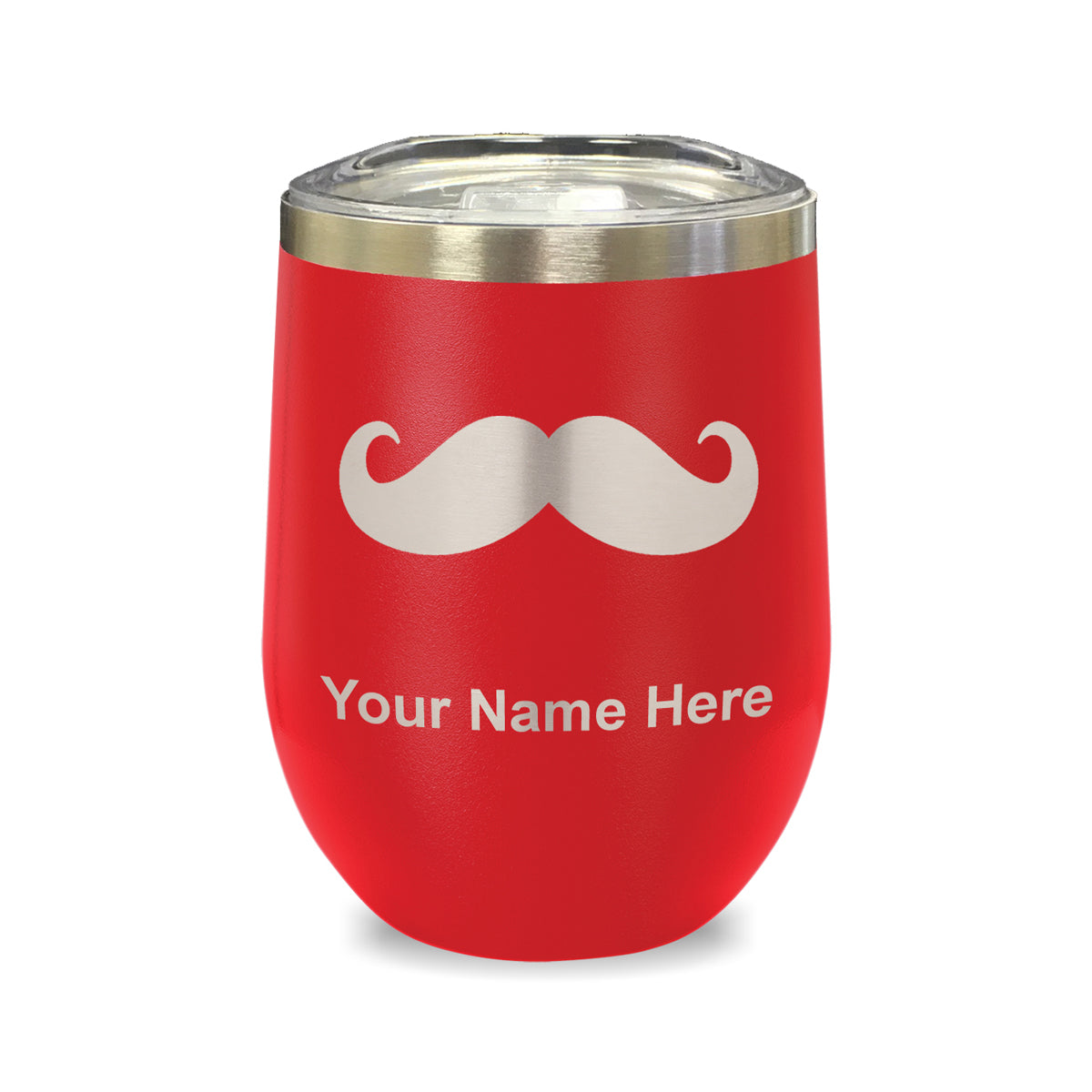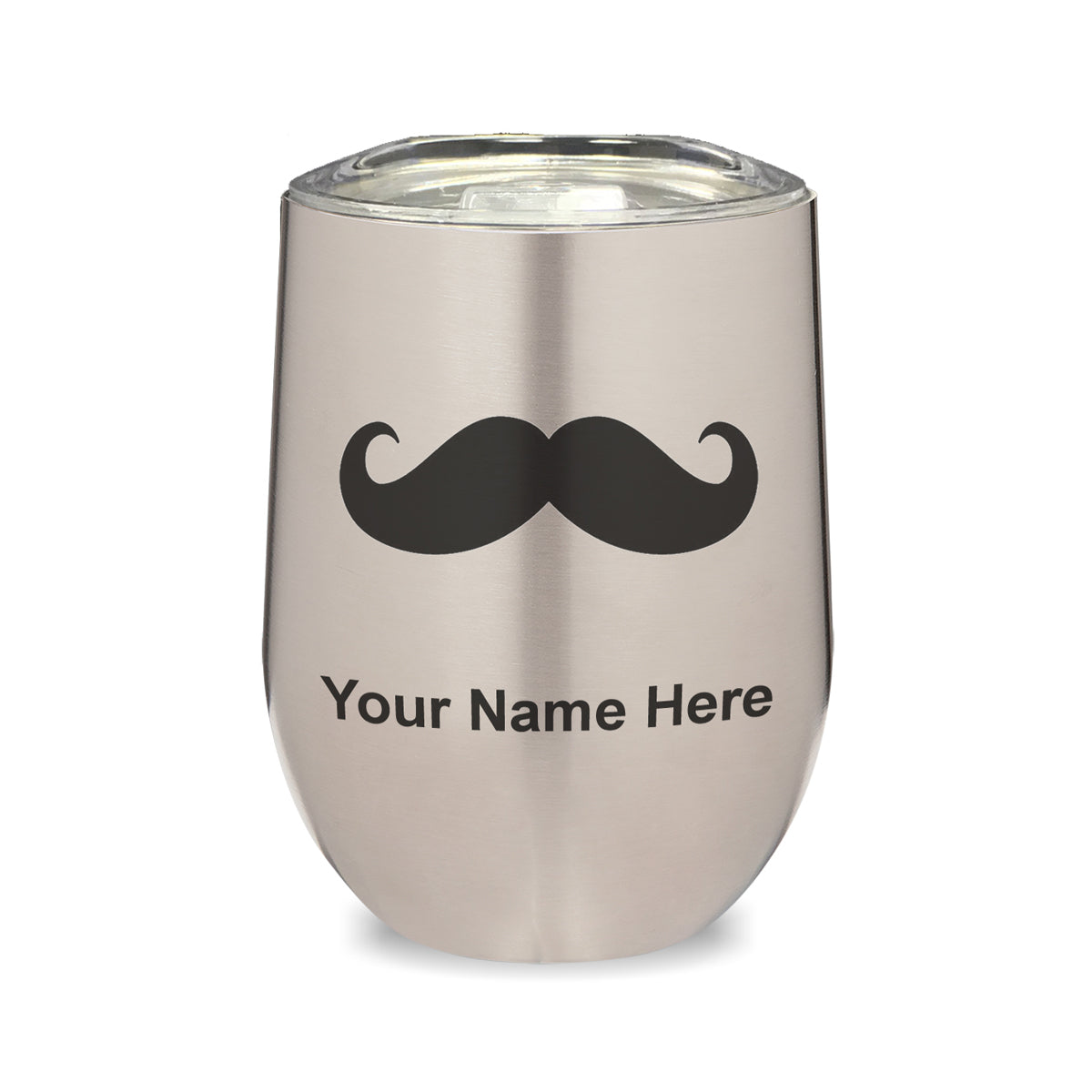 LaserGram Double Wall Stainless Steel Wine Glass, Mustache, Personalized Engraving Included