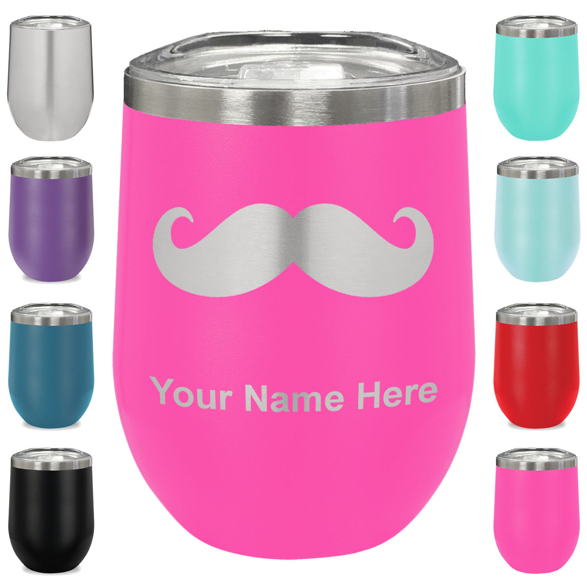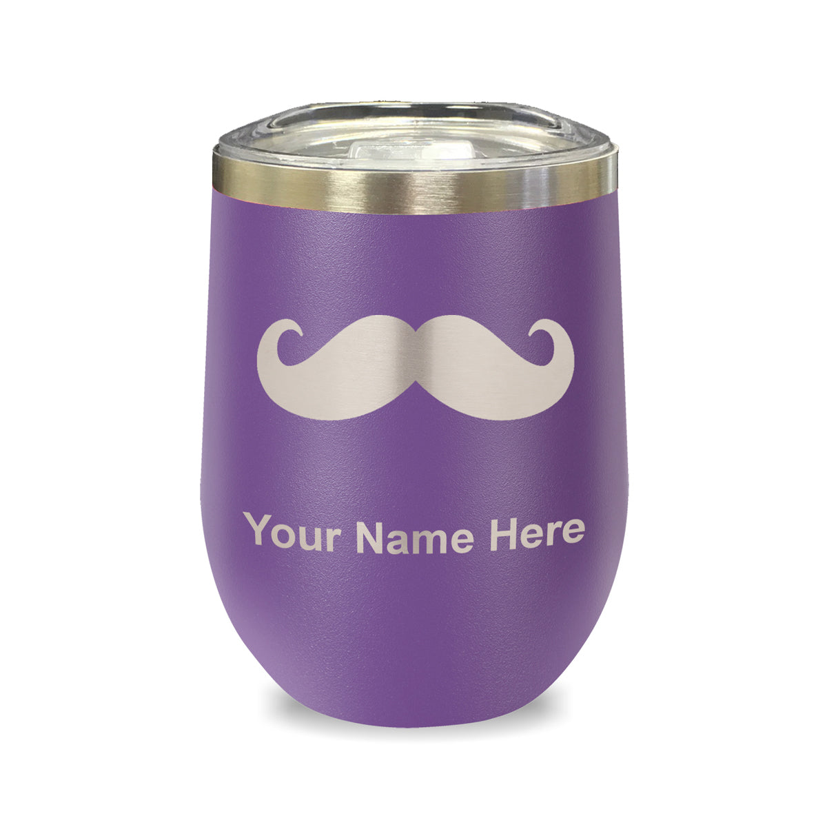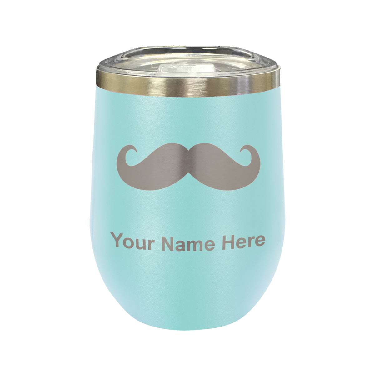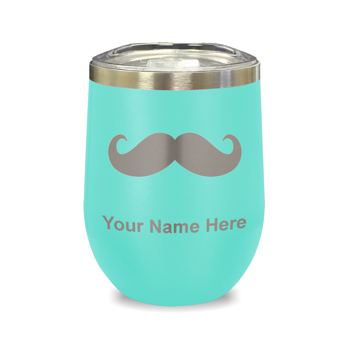 LaserGram Double Wall Stainless Steel Wine Glass, Mustache, Personalized Engraving Included