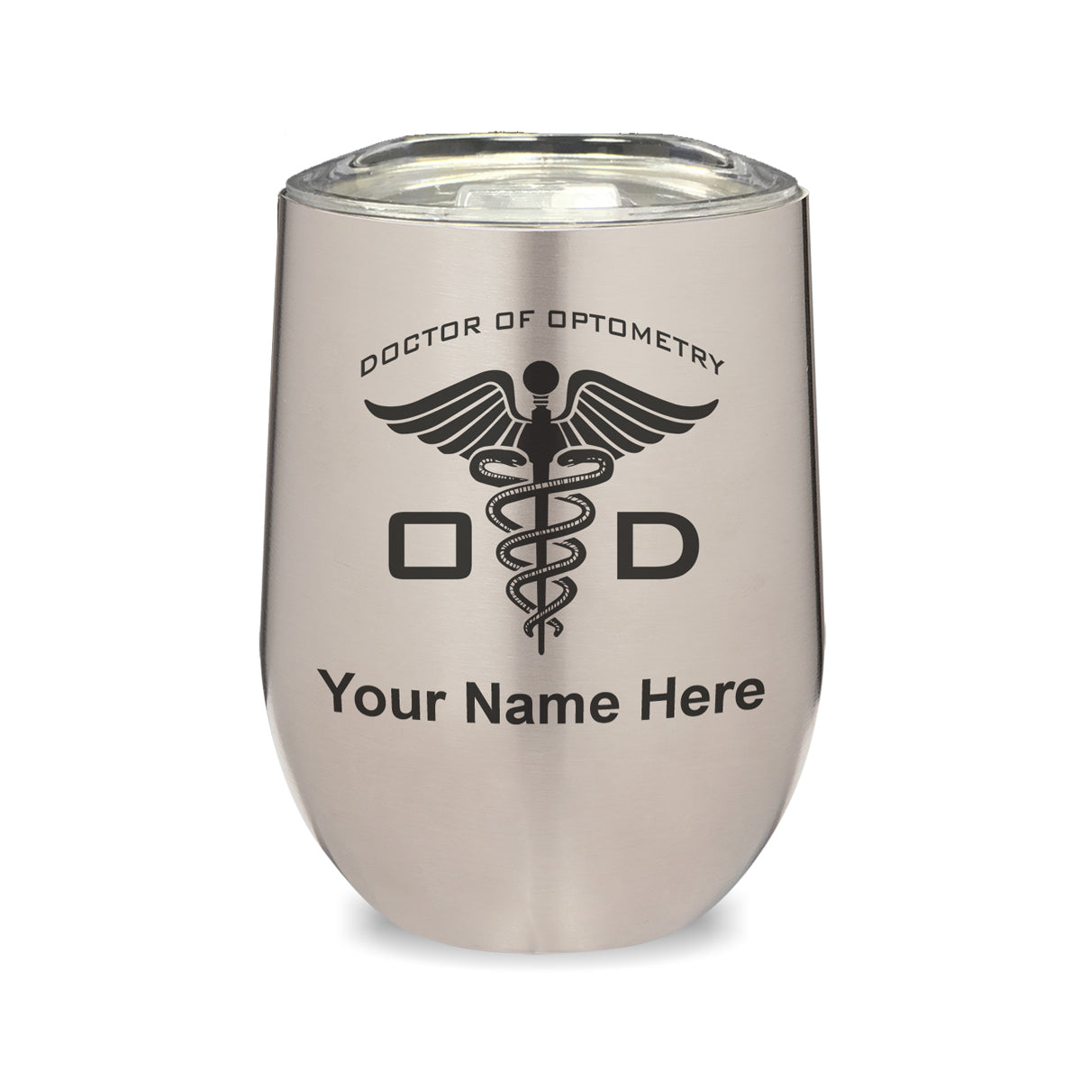 LaserGram Double Wall Stainless Steel Wine Glass, OD Doctor of Optometry, Personalized Engraving Included