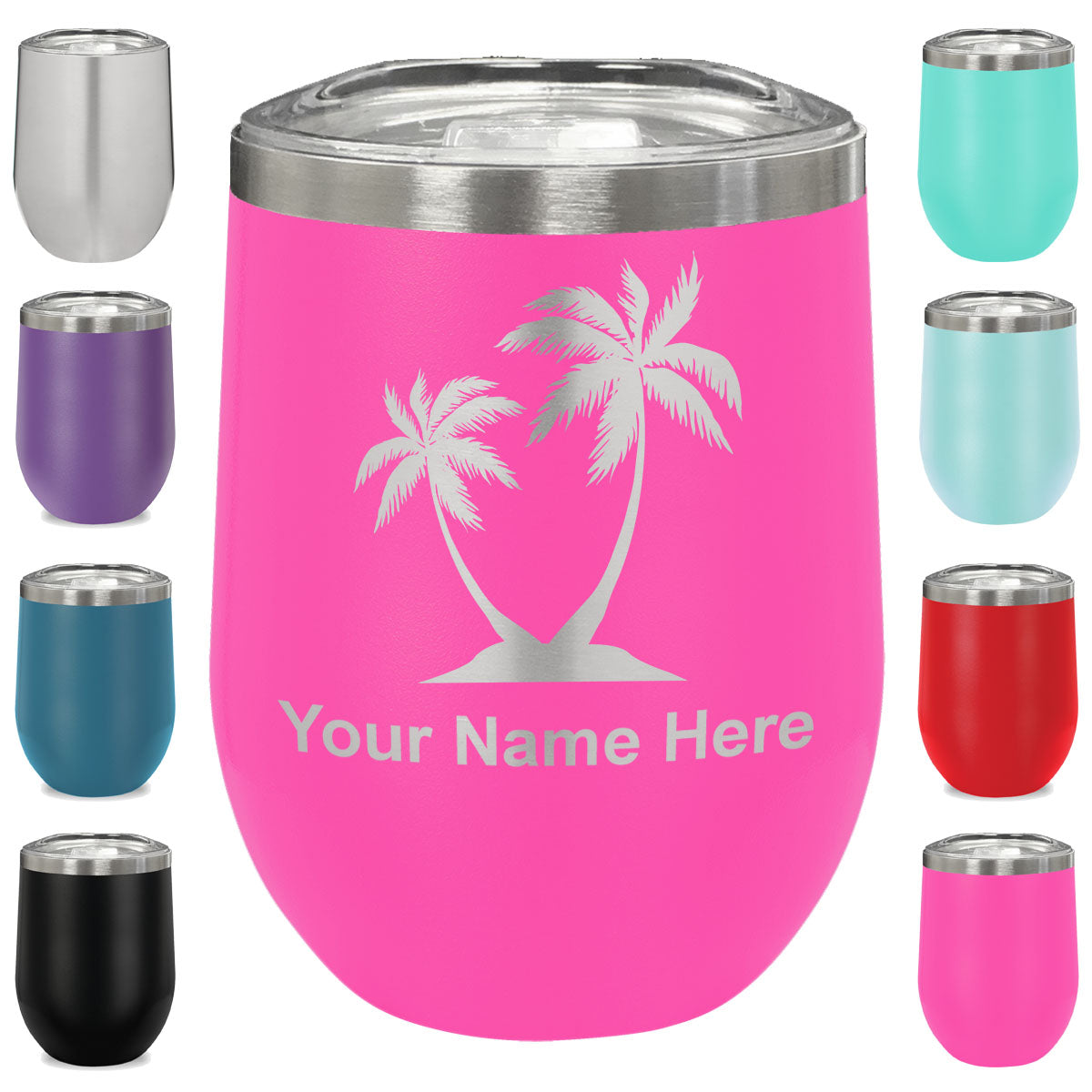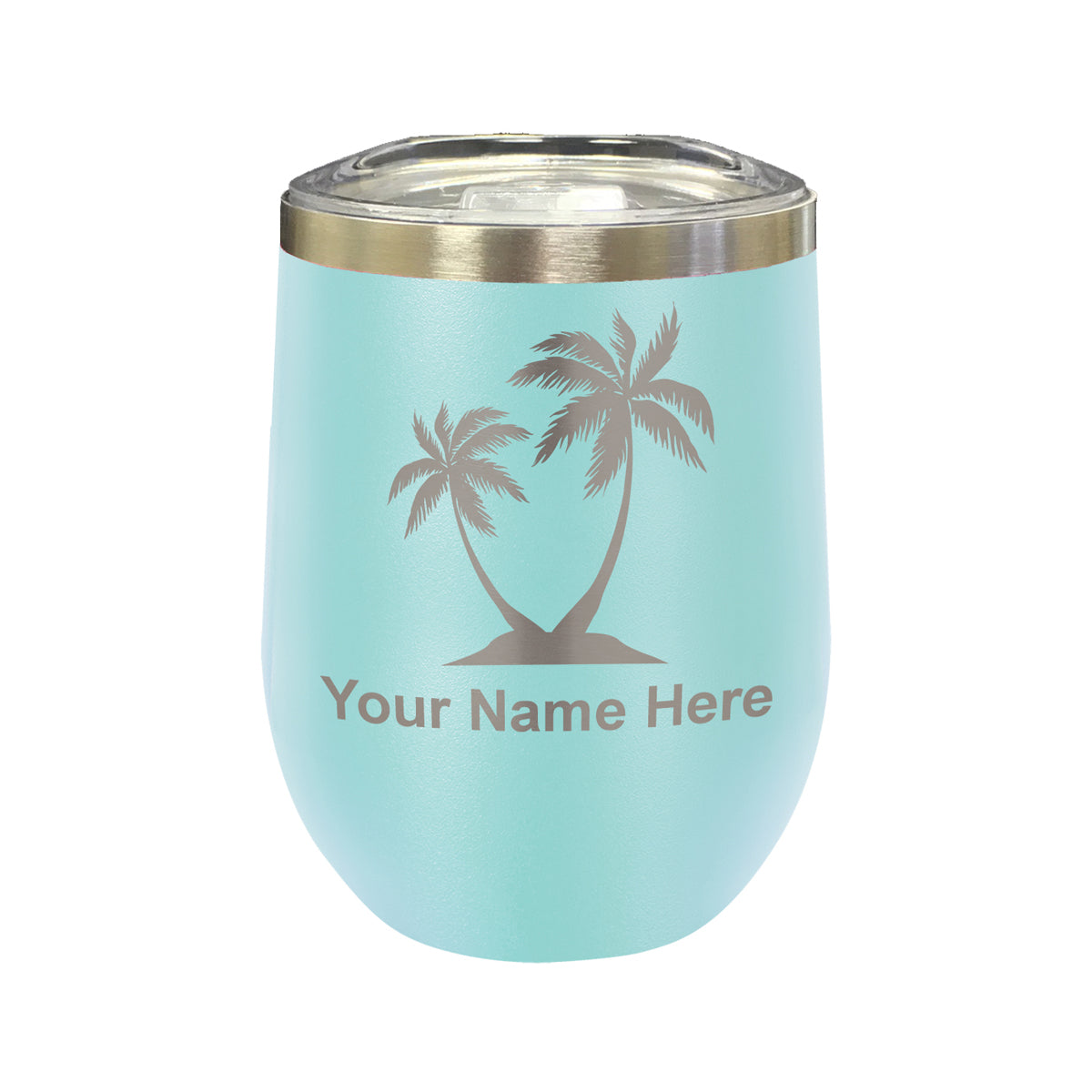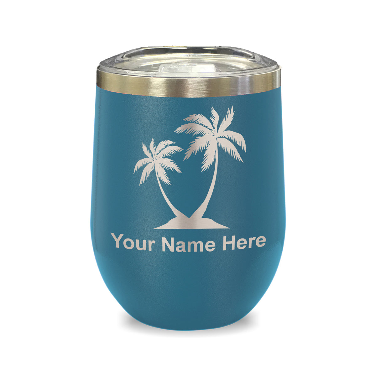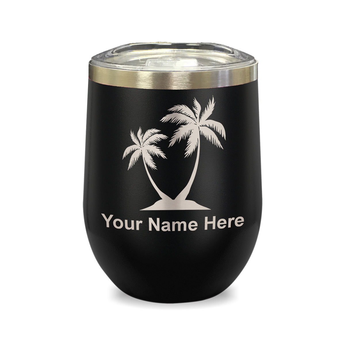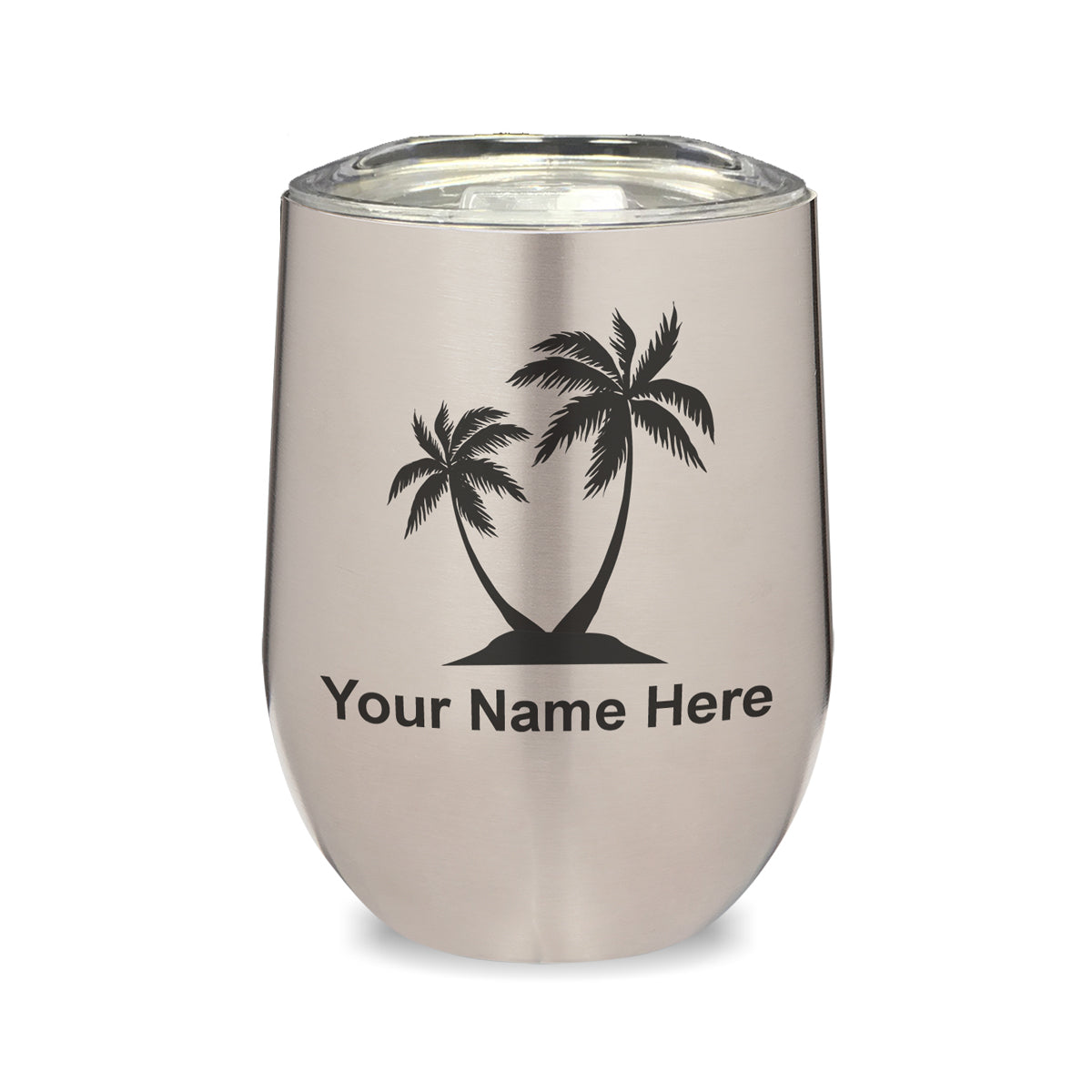 LaserGram Double Wall Stainless Steel Wine Glass, Palm Trees, Personalized Engraving Included