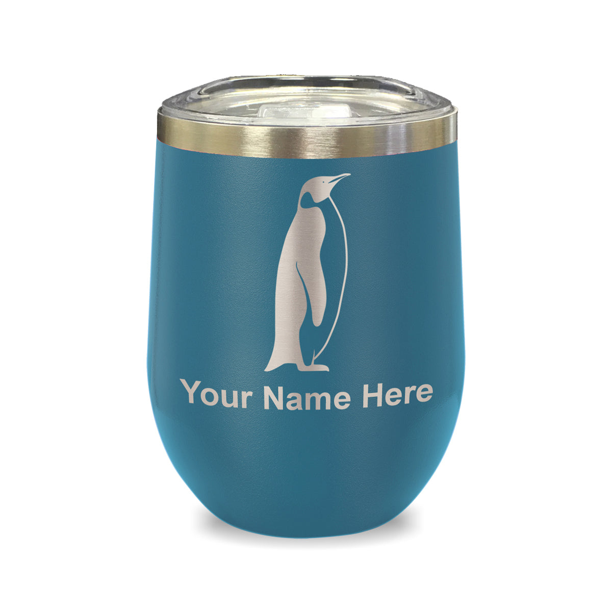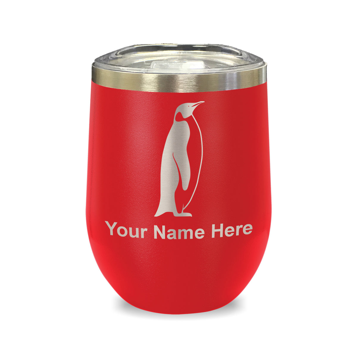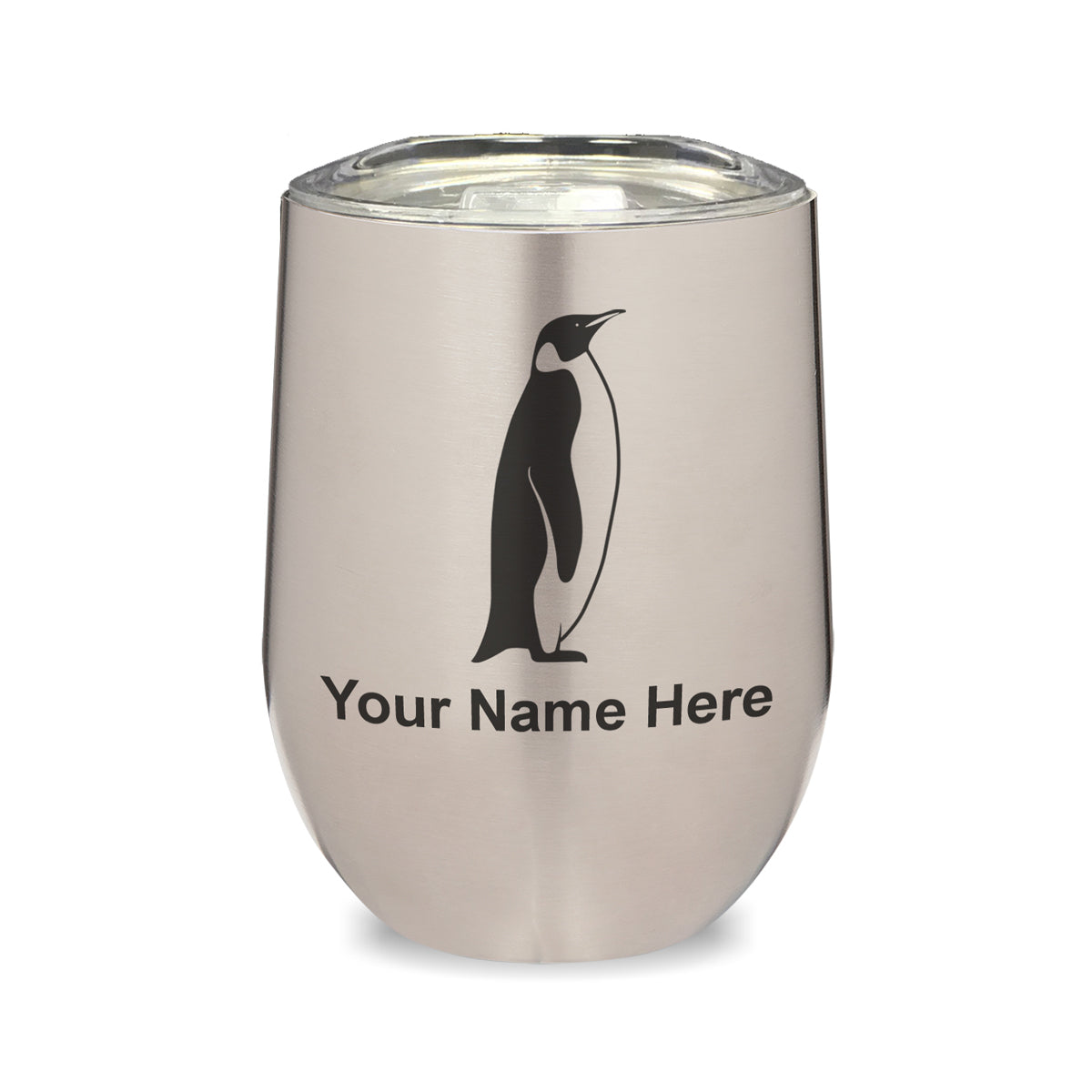 LaserGram Double Wall Stainless Steel Wine Glass, Penguin, Personalized Engraving Included