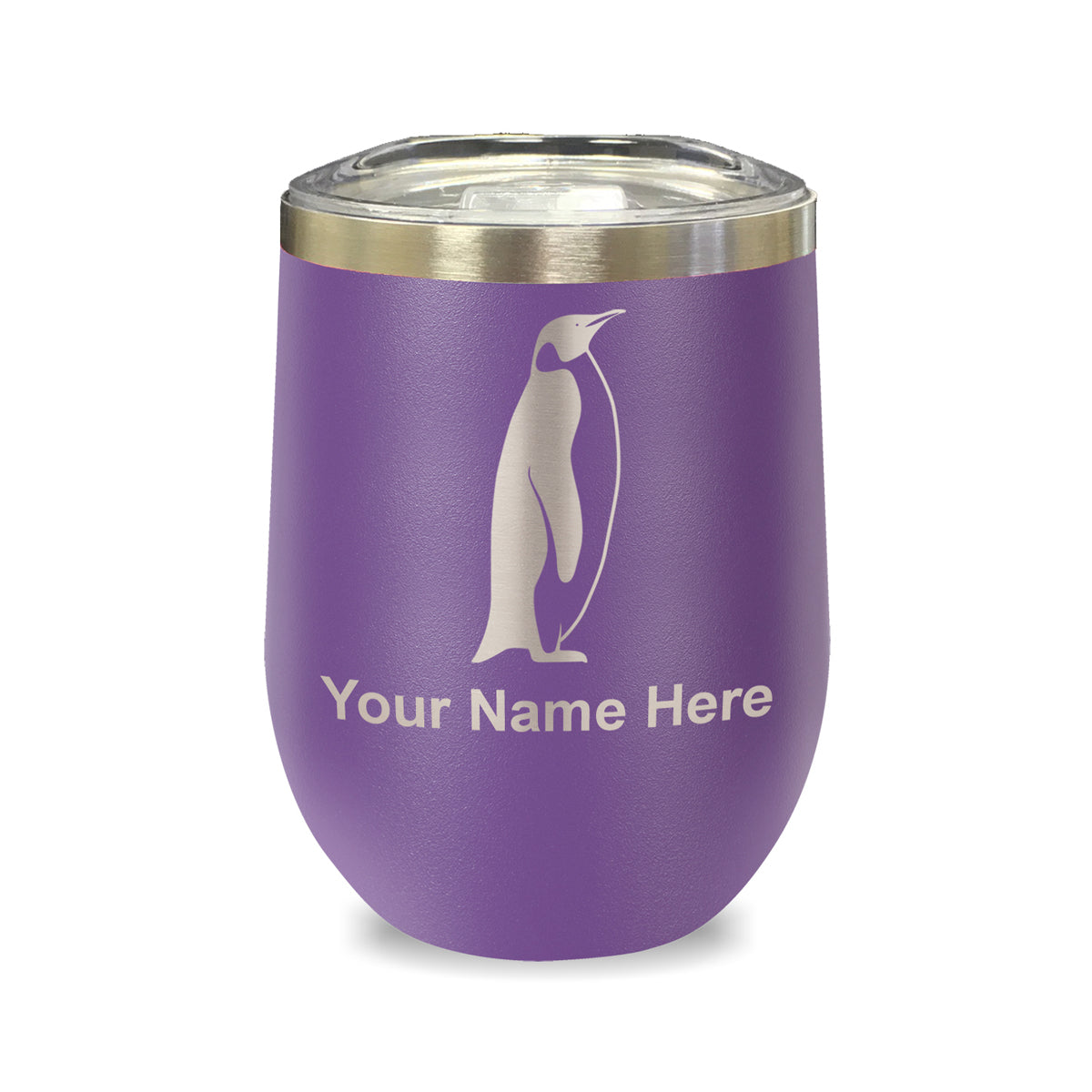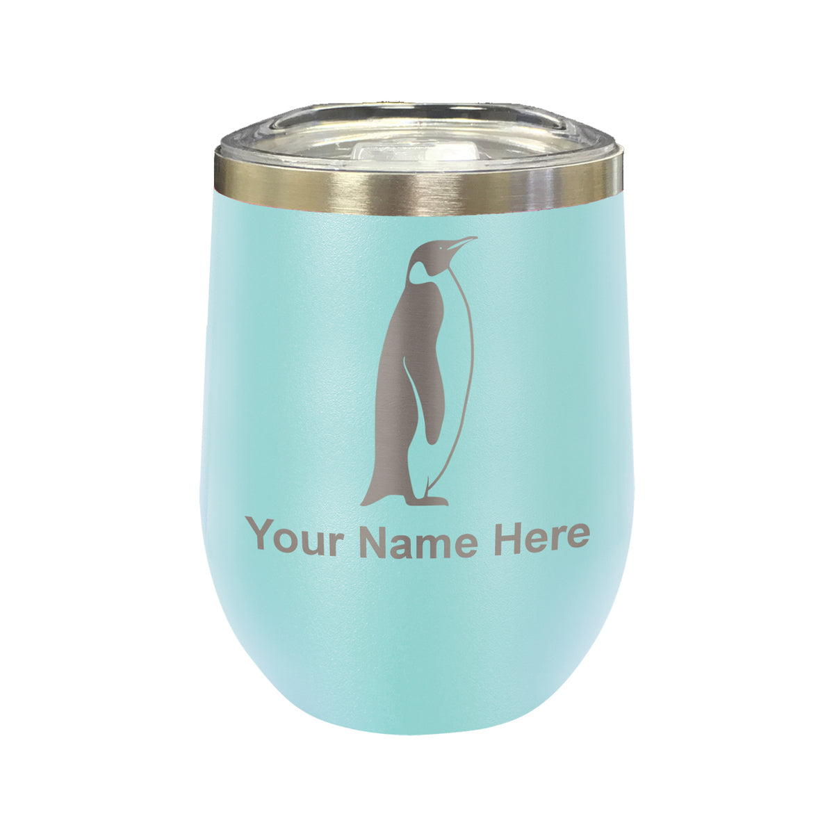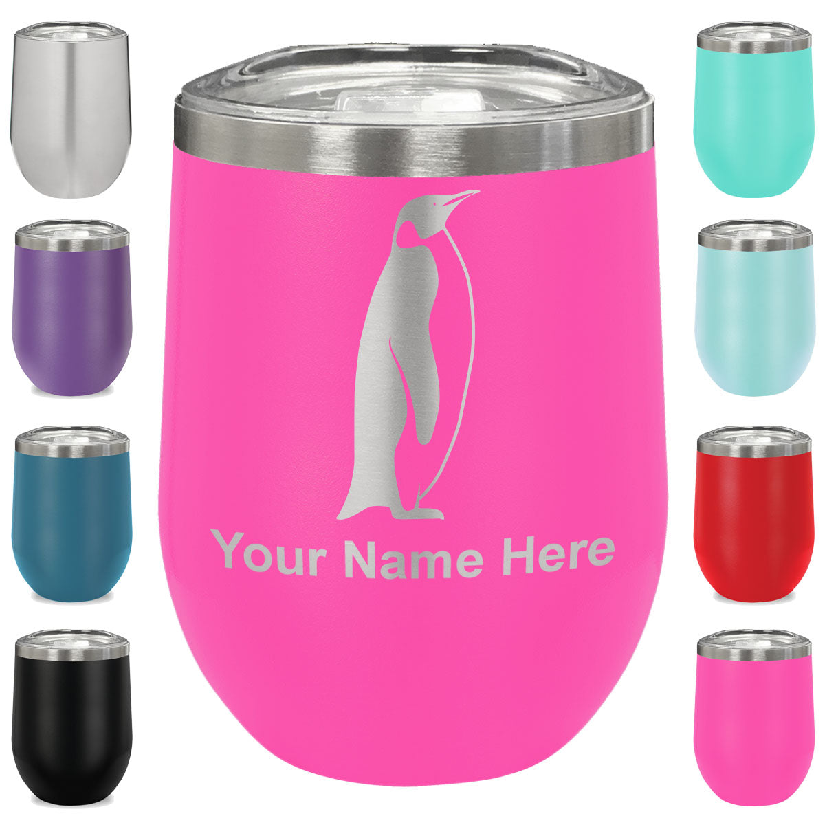LaserGram Double Wall Stainless Steel Wine Glass, Penguin, Personalized Engraving Included