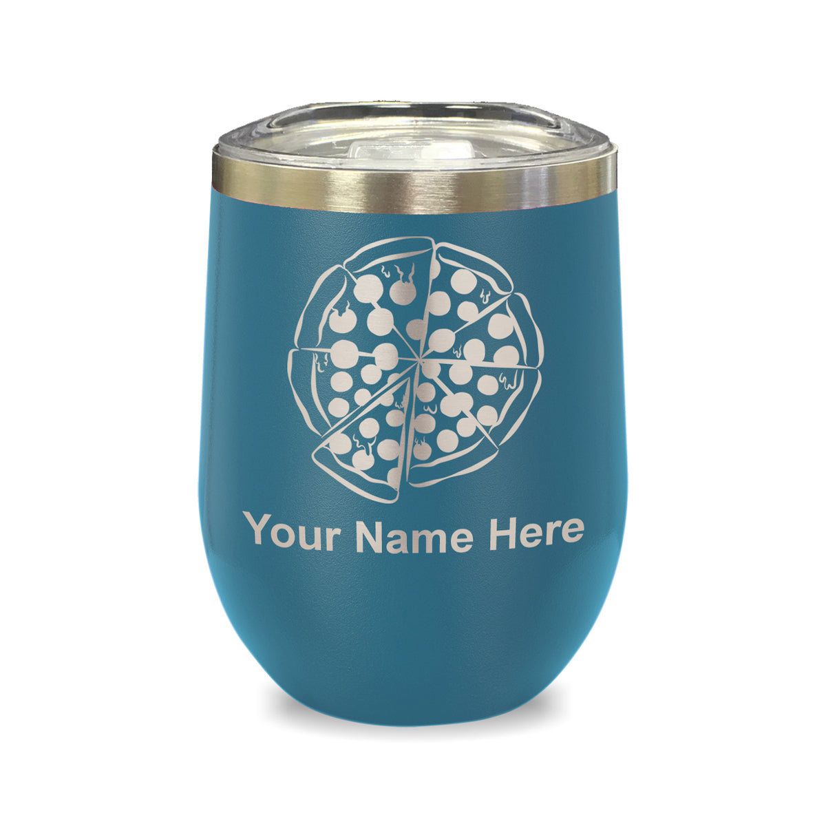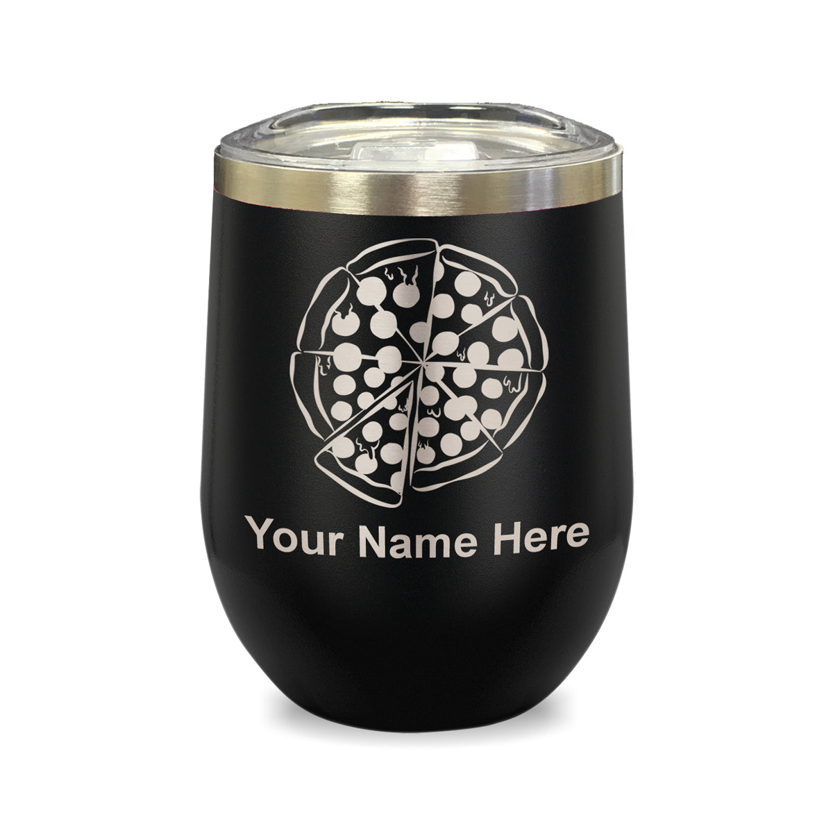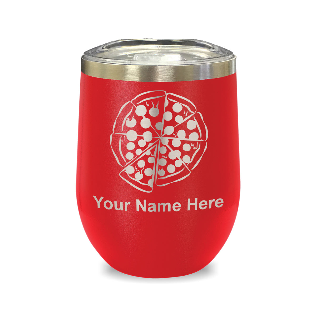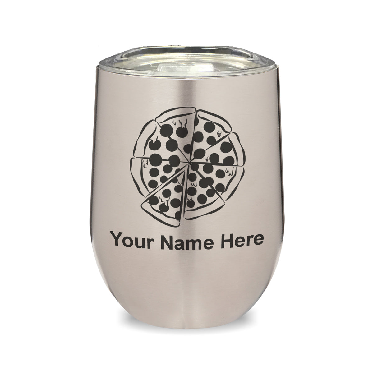 LaserGram Double Wall Stainless Steel Wine Glass, Pizza, Personalized Engraving Included