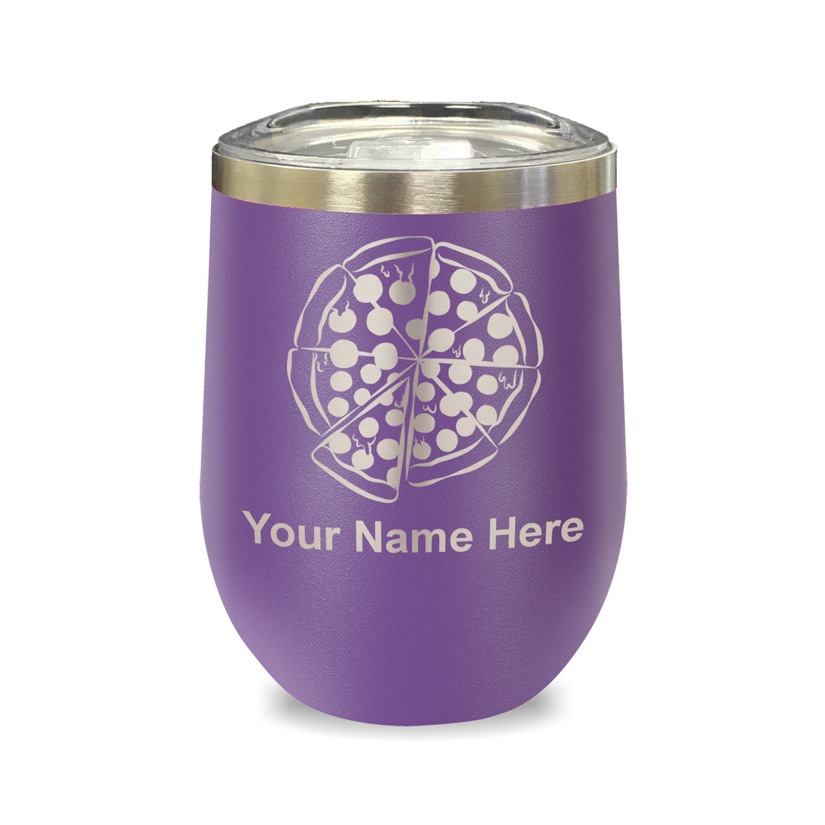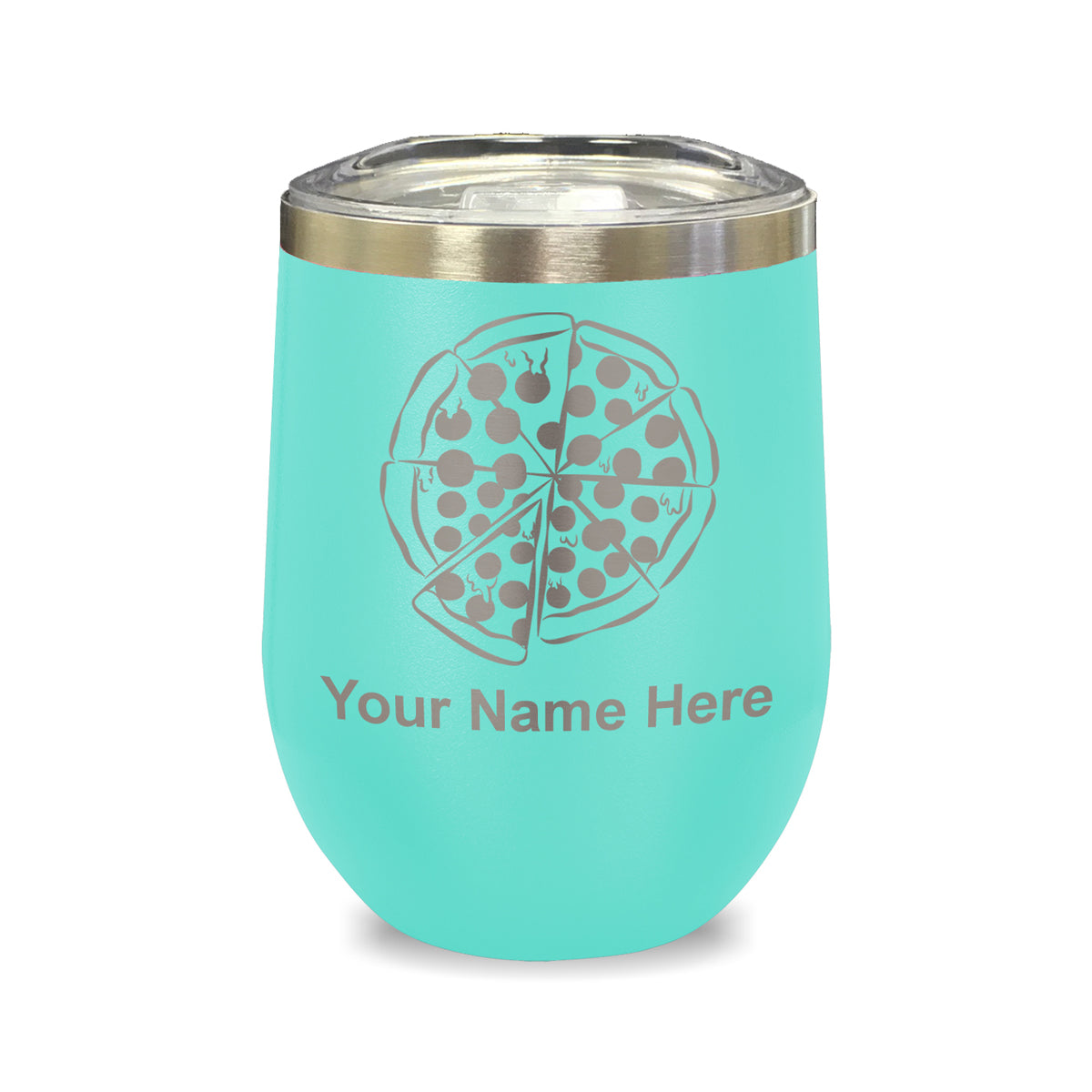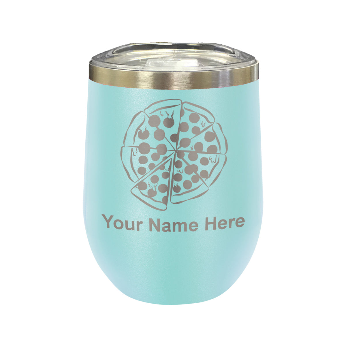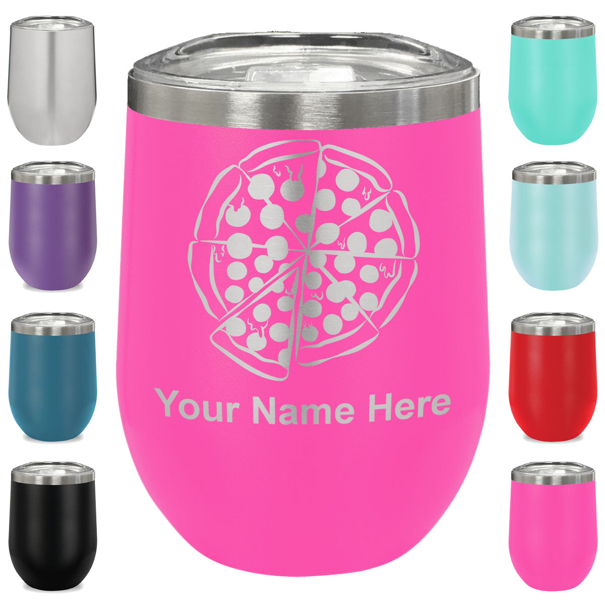 LaserGram Double Wall Stainless Steel Wine Glass, Pizza, Personalized Engraving Included