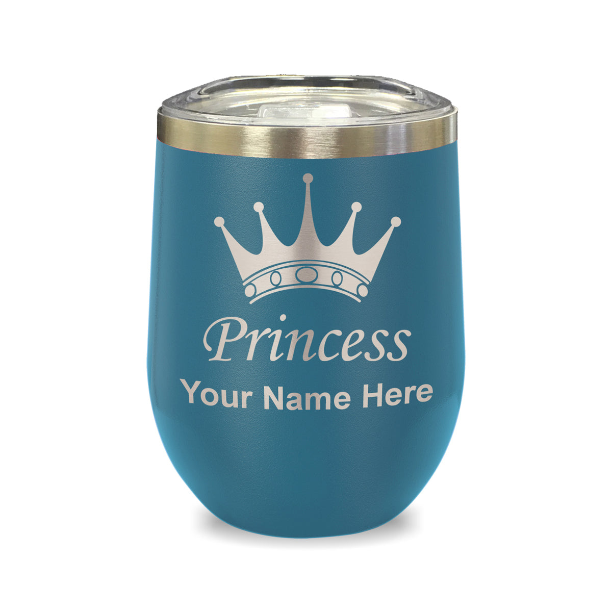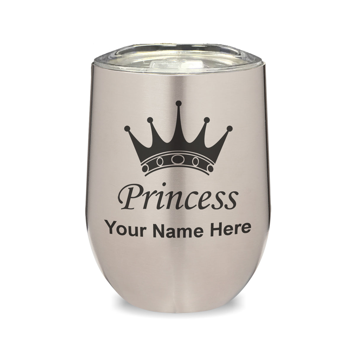 LaserGram Double Wall Stainless Steel Wine Glass, Princess Crown, Personalized Engraving Included