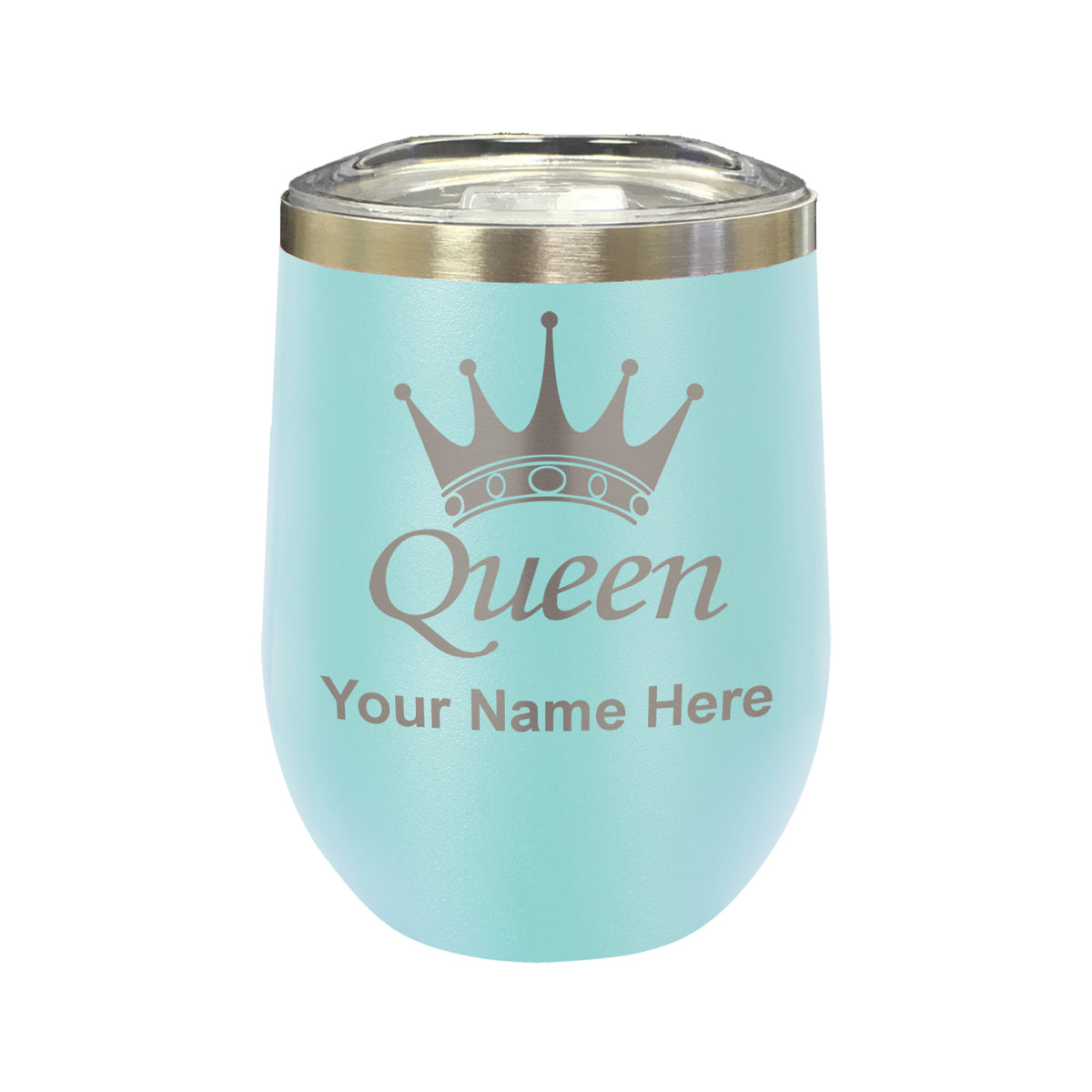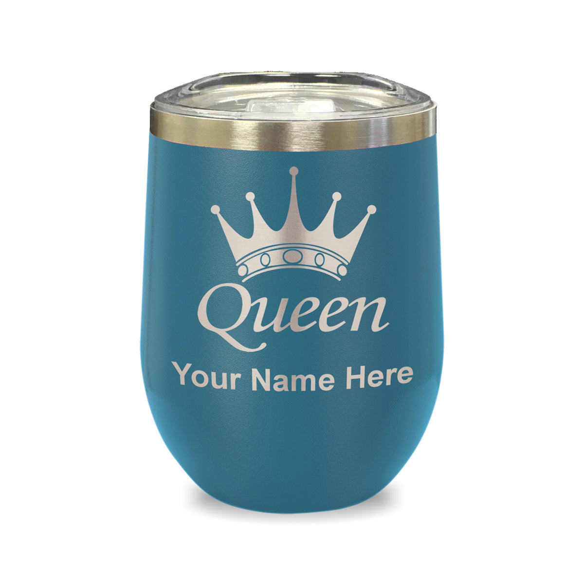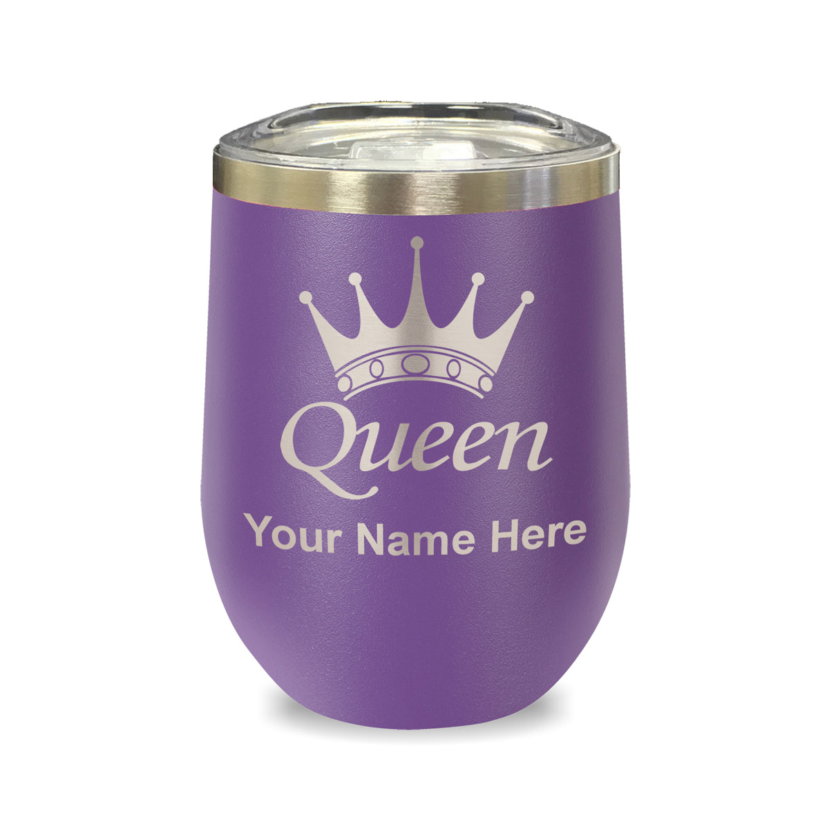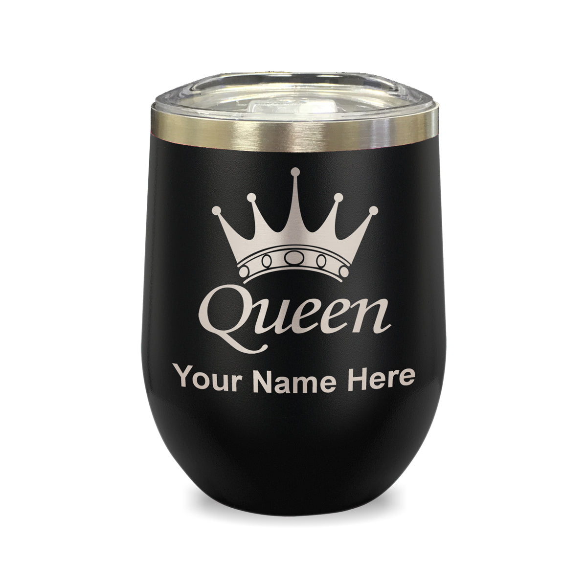 LaserGram Double Wall Stainless Steel Wine Glass, Queen Crown, Personalized Engraving Included