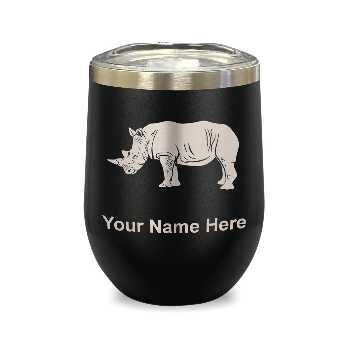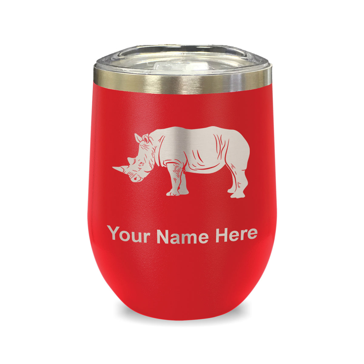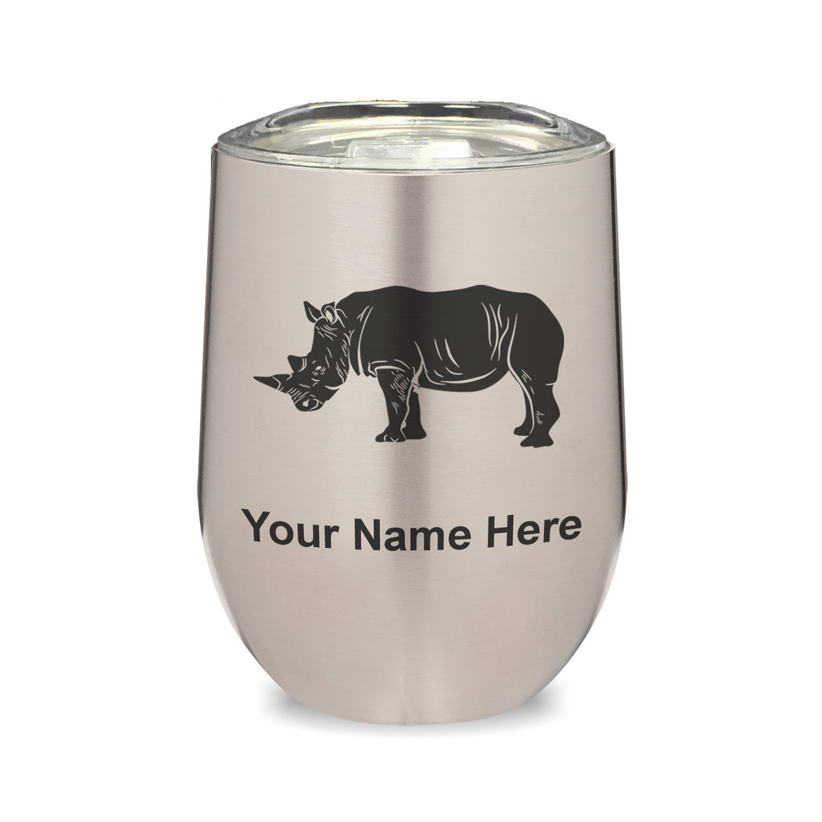 LaserGram Double Wall Stainless Steel Wine Glass, Rhinoceros, Personalized Engraving Included